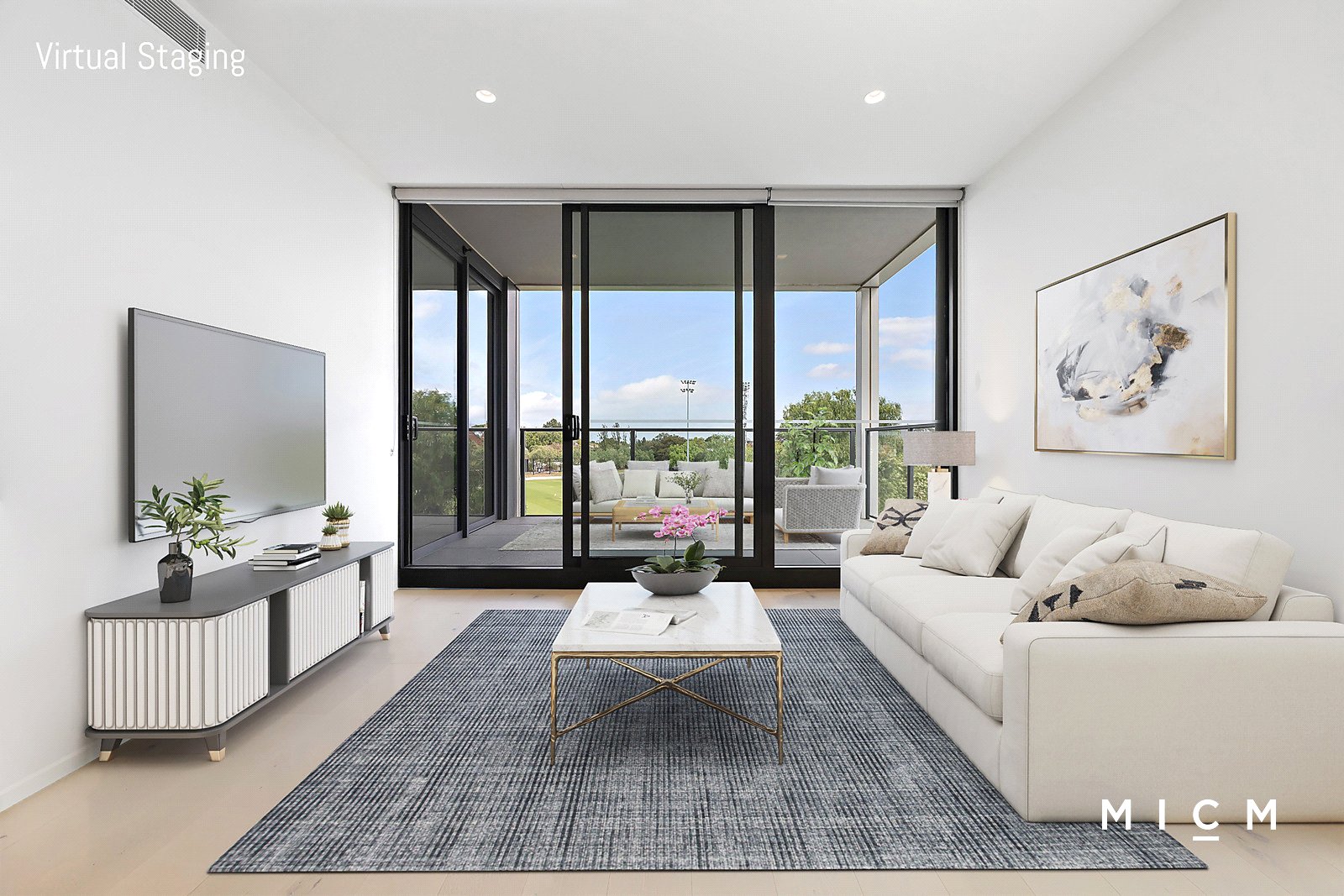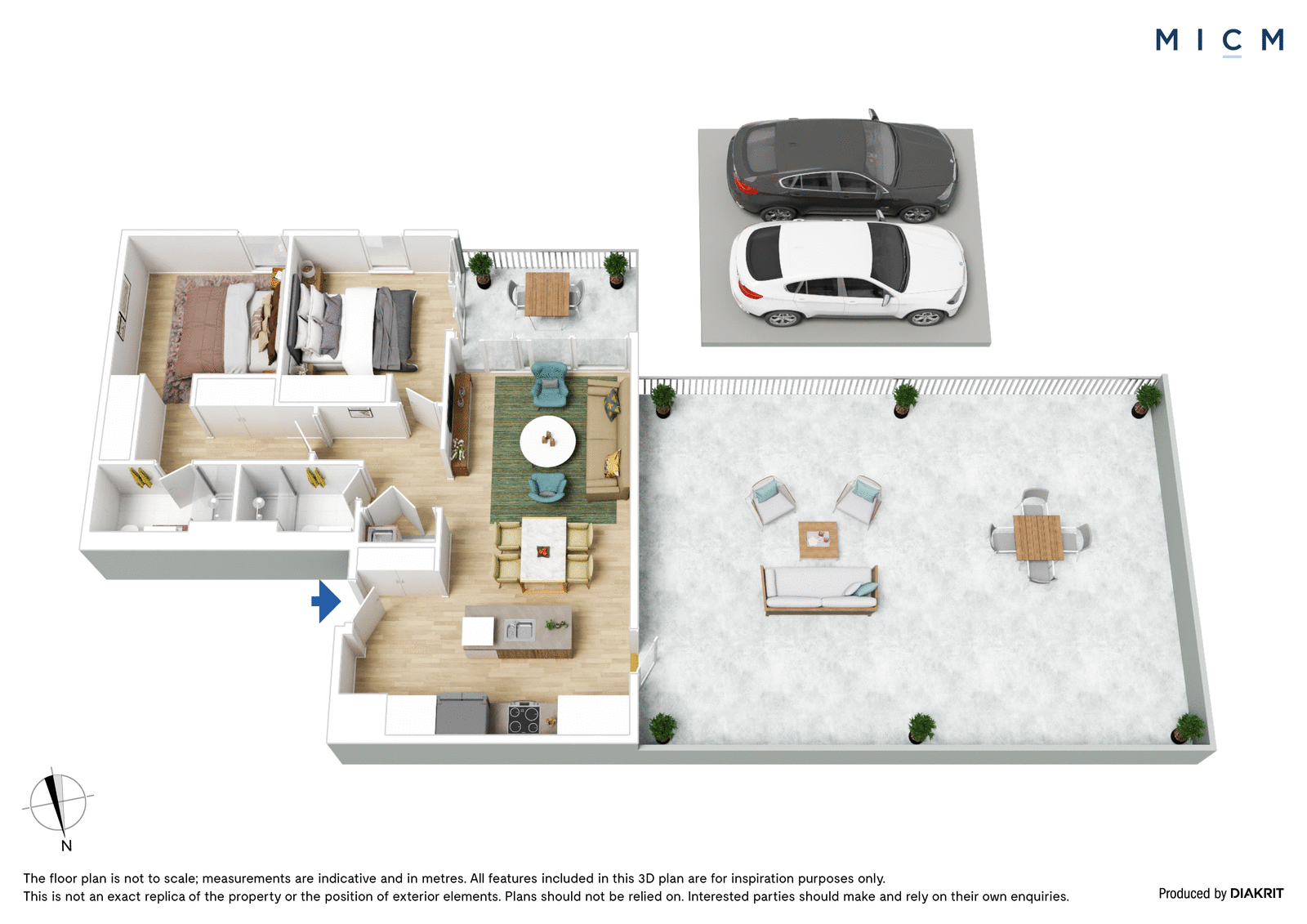 Both generously sized bedrooms are filled with light, serviced by extensive mirrored built-in robes and a pristine pair of fully tiled bathrooms graced with concealed cisterns, mirrored cabinetry, and rainfall and hand-held shower fittings. Comprehensive features include secure side-by-side parking for 2 cars, a storage cage, European laundry, ducted heating and cooling in every room, double glazing, lightly toned timber floorboards, roller blinds, additional slimline Venetian blinds in the bedrooms, and recessed down-lighting. Hit the ground running with a stylish selection of the furniture and white goods on display including a comfortable sofa, a dining suite, two queen-sized beds with storage capacity, LG smart inverter microwave, and an LG washing machine.