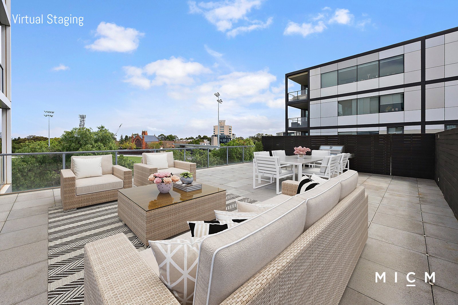 Spacious open-plan living and dining is underscored by a stone-finished kitchen with a concealed fridge space, soft-closing cabinetry, a waterfall-edged island bench, and the full suite of high-end Miele appliances including an integrated dishwasher and a 4-burner gas cooktop. Superbly set on the fourth floor of the tightly held Toorak Park complex, step outside to the star of the show! An open-air terrace stretches out in commanding style, overlooking leafy treetops and touching down on Toorak Park greenery with the neighbouring skyline providing the backdrop. This vast alfresco platform is a true game-changer with the capacity to entertain on scale, complemented by a large undercover balcony with the same spectacular aspect to enjoy in surprising serenity.