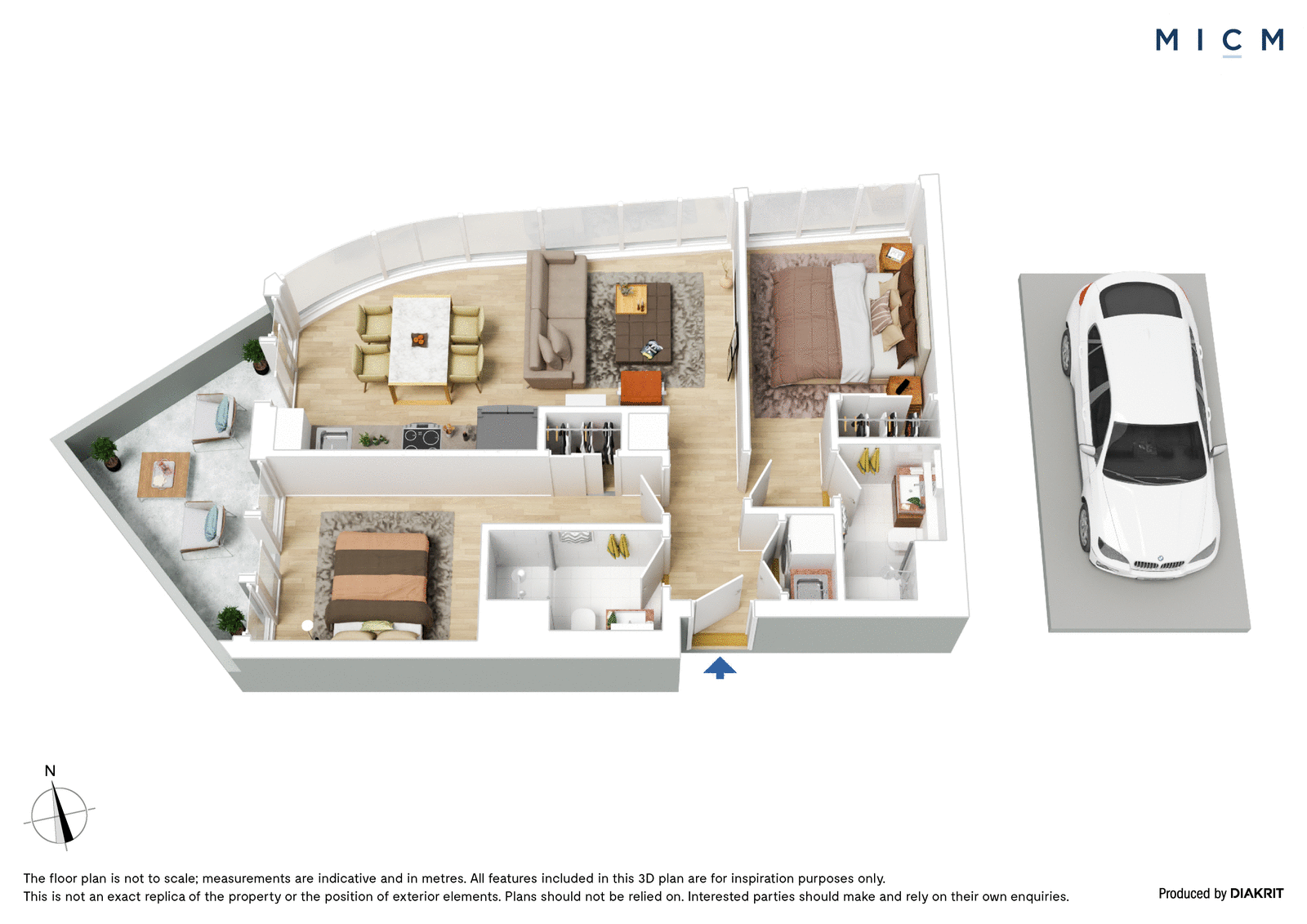 Peacefully separated by the living space, the generously sized bedrooms feature mirrored built-in robes, while the palatial master suite enjoys a private ensuite. The second bedroom boasts direct balcony access, while the primary bathroom comes complete with full-height tiles, mirrored cabinetry and a concealed cistern.