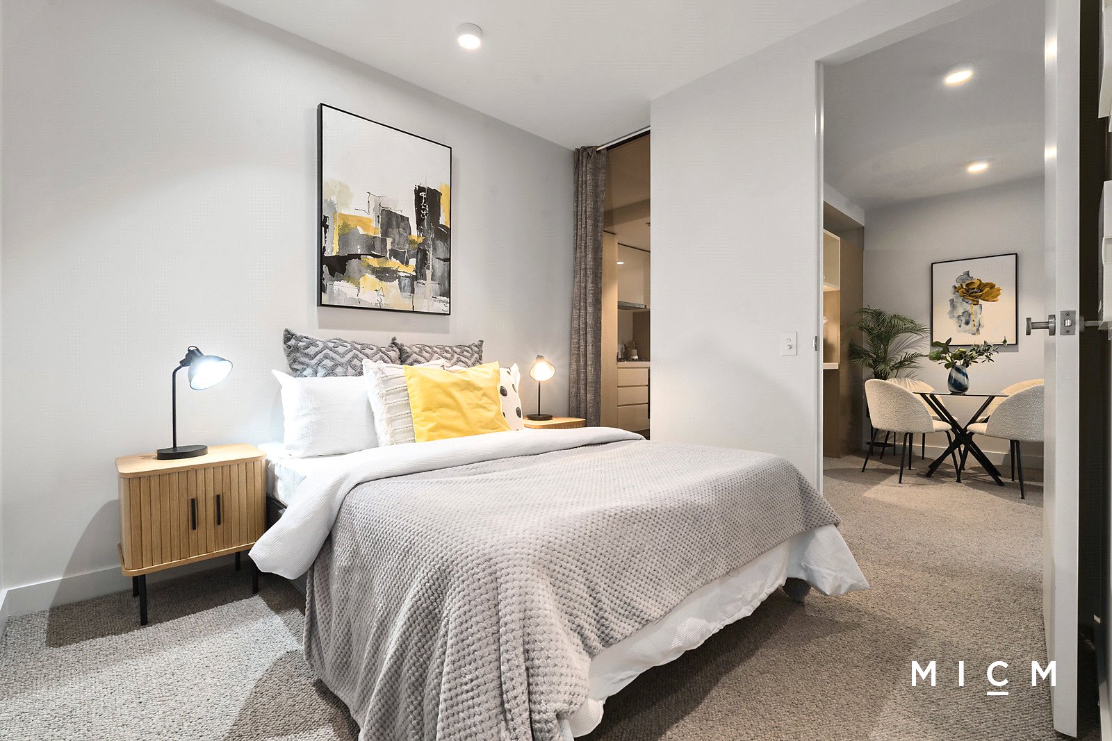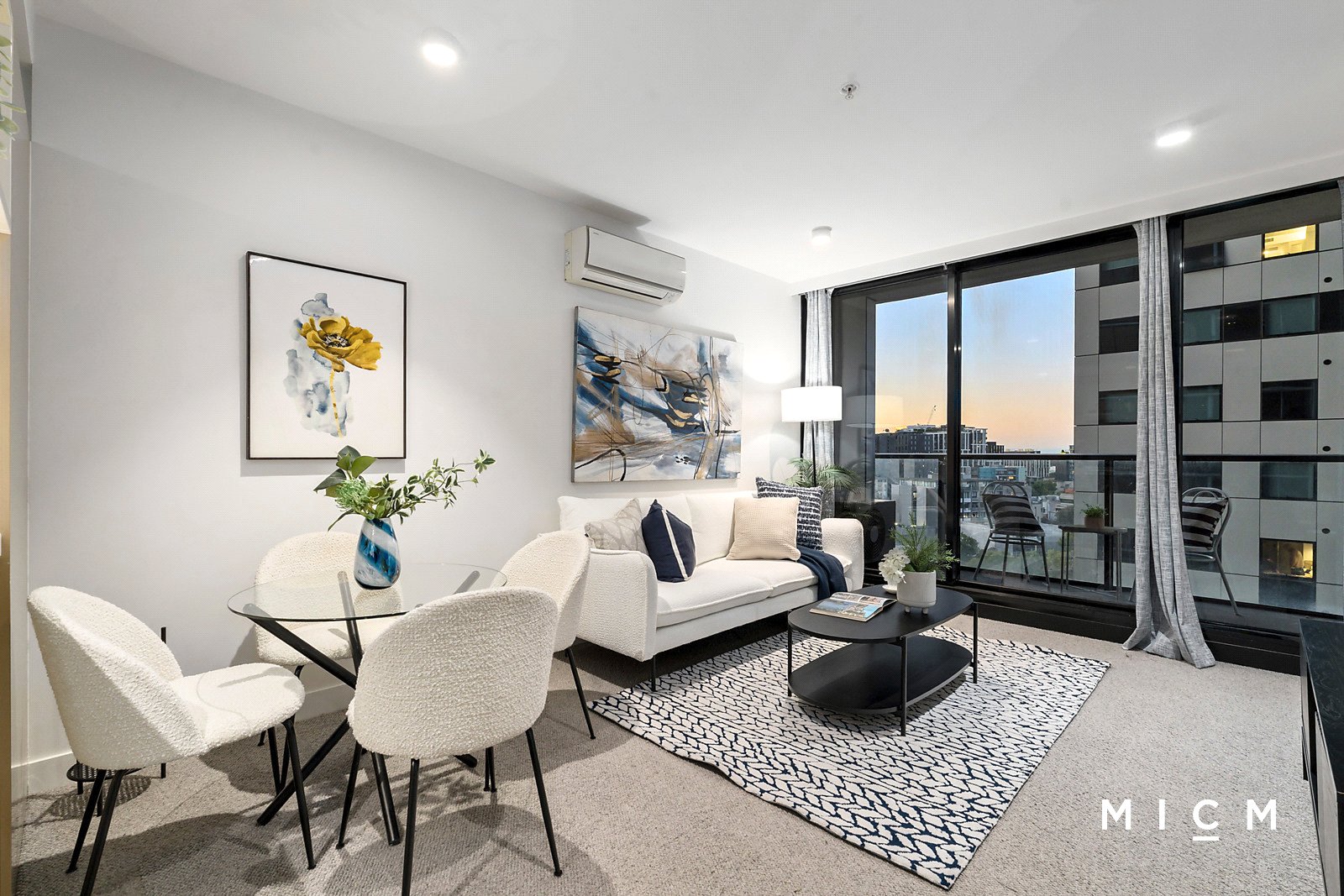 A chef-ready kitchen is graced with a breakfast bar, soft-closing cabinetry, a concealed fridge space, a Fisher and Paykel dish-drawer, and high-performing Miele appliances including a 4-burner gas cooktop. Nestled on the 10th floor of the sought-after 33M building, the air-conditioned comfort of spacious open-plan living and dining connects with a sheltered balcony revealing a sublime north-facing aspect sweeping over the city skyline, Carlton Gardens, the heritage beauty of the Royal Exhibition Building, and the mountainous horizon. Both mirror-robed bedrooms are generous in scale, serviced by a deluxe bathroom boasting mirrored cabinetry.