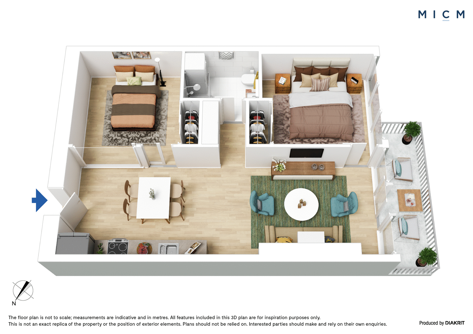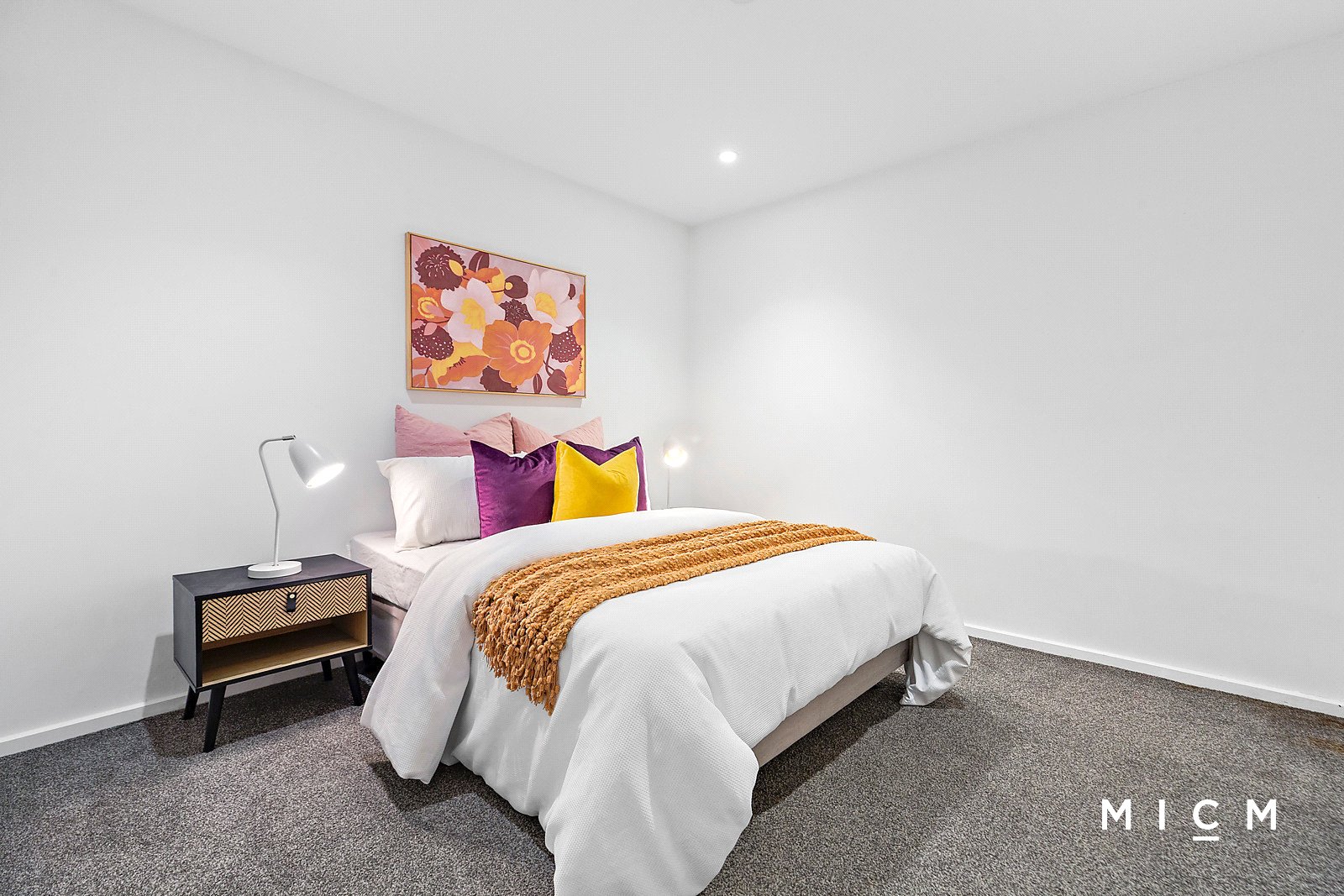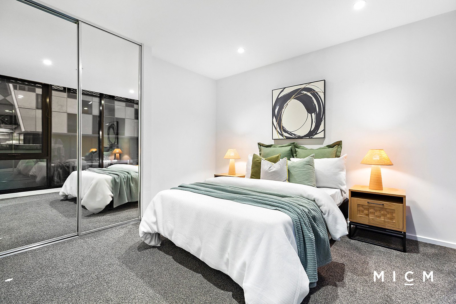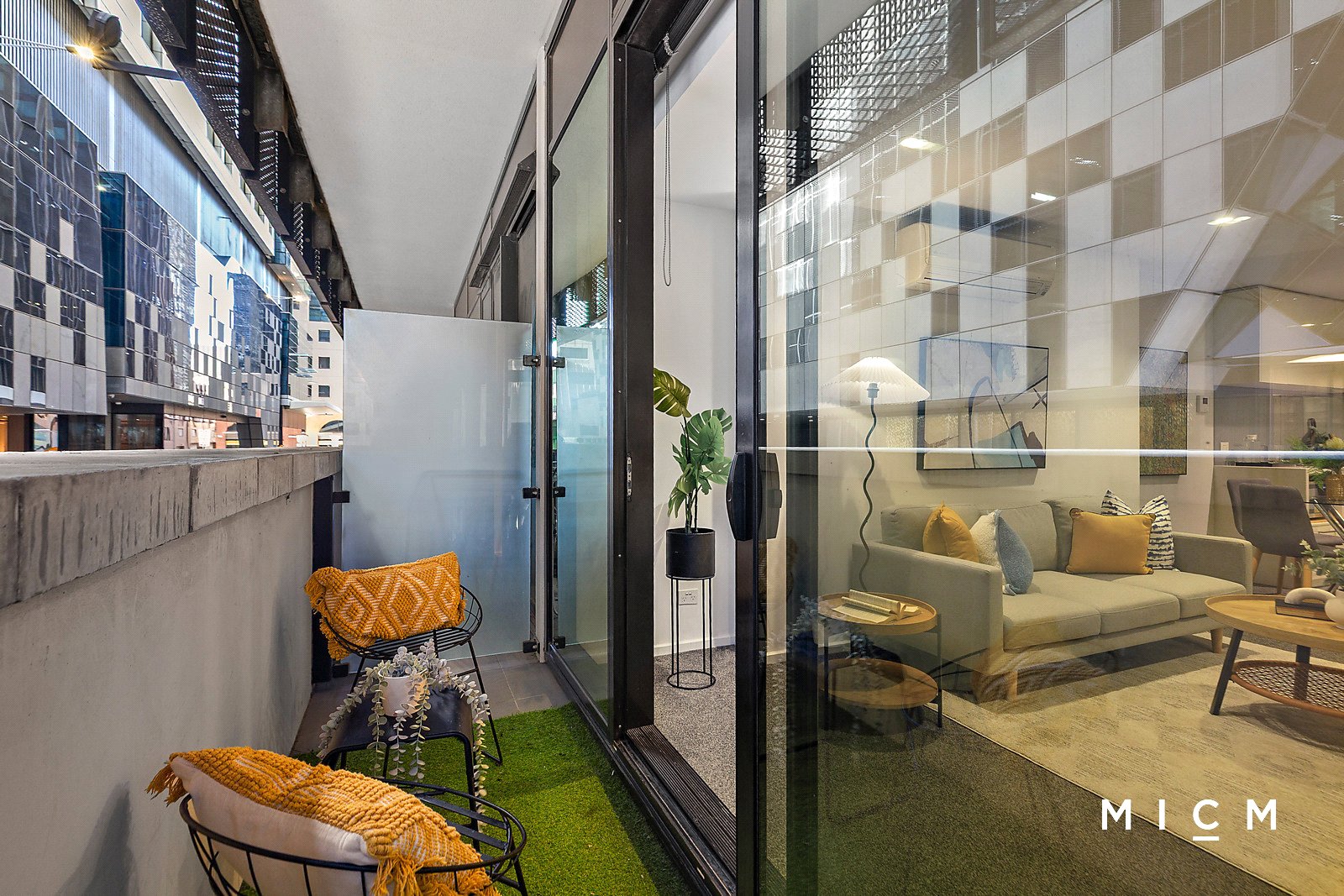 Spacious open-plan living and dining is underscored by a streamlined kitchen boasting stone surfaces and integrated appliances including an oven, 4-burner gas cooktop, and a high-performing Fisher and Paykel dish-drawer. Set on the first floor of the ultra-modern Melbourne One complex, floor-to-ceiling glass slides open to an undercover balcony, the ideal spot to unwind with an after-work drink. Both bedrooms are substantial in size, serviced by mirrored built-in robes and a fully tiled bathroom.