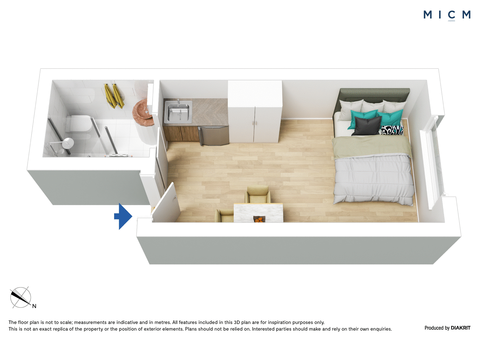 Set on the top floor of the boutique City Life complex, everything is at your fingertips with more than enough space for rest and retreat. A kitchenette boasts a fridge and a microwave, while the streamlined open layout incorporates a double bed, television, and a dining table with two chairs. An elegant Juliet balcony attracts natural light, and the bathroom is graced with a walk-in shower and mirrored cabinetry.