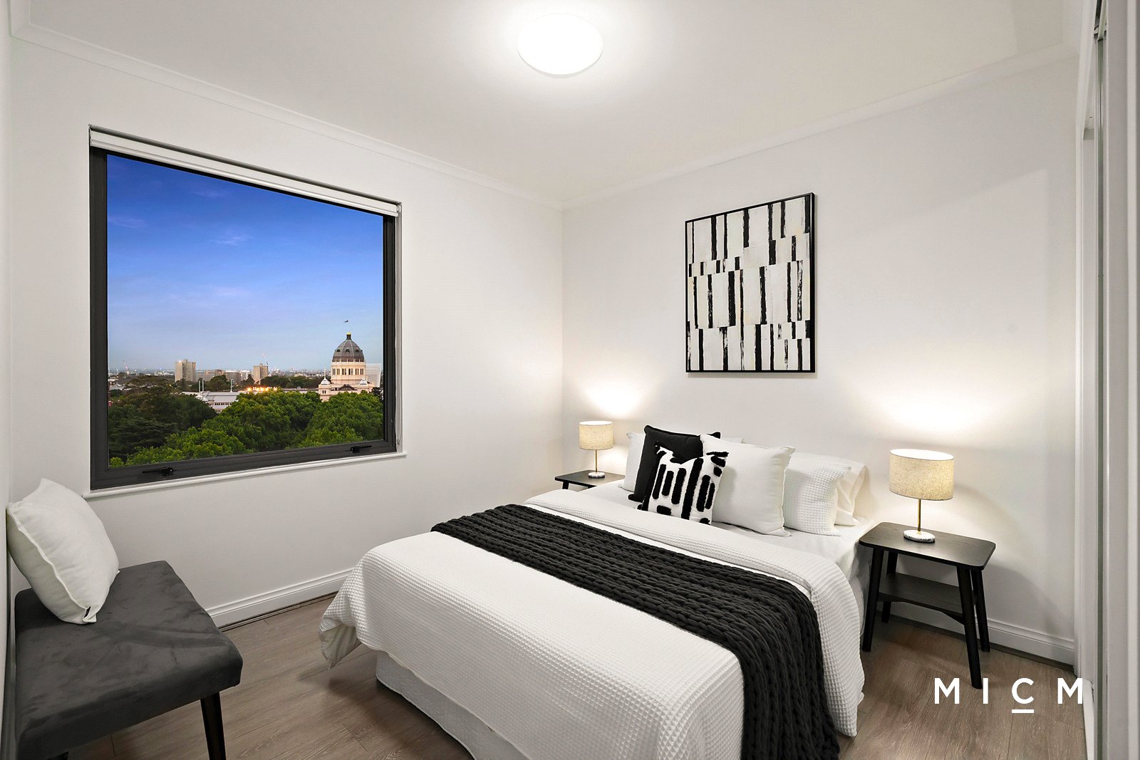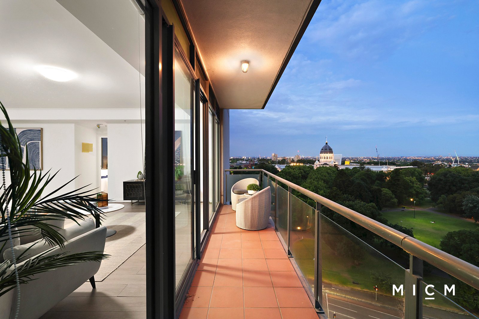 Infused with natural northeastern light, this vast 3 bedroom apartment is a special showcase of stunning parkland views in a prestigious Paris-end position. Head downstairs and take an easy walk to Carlton Gardens, the free tram zone, Parliament trains, QV shopping, top-ranking universities, the State Library, the lively theatre district, Chinatown, and the best cafes, bars and restaurants in the CBD.