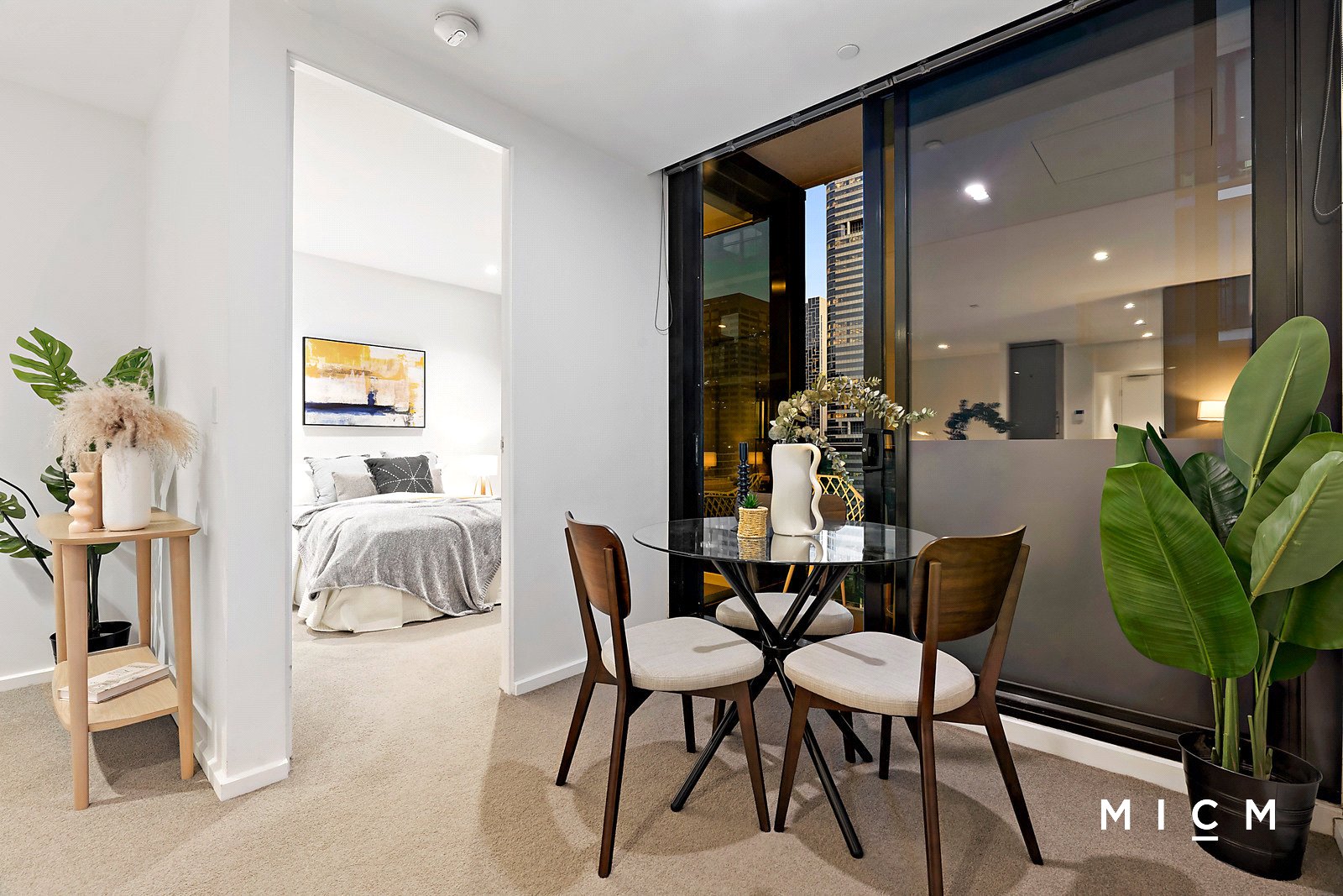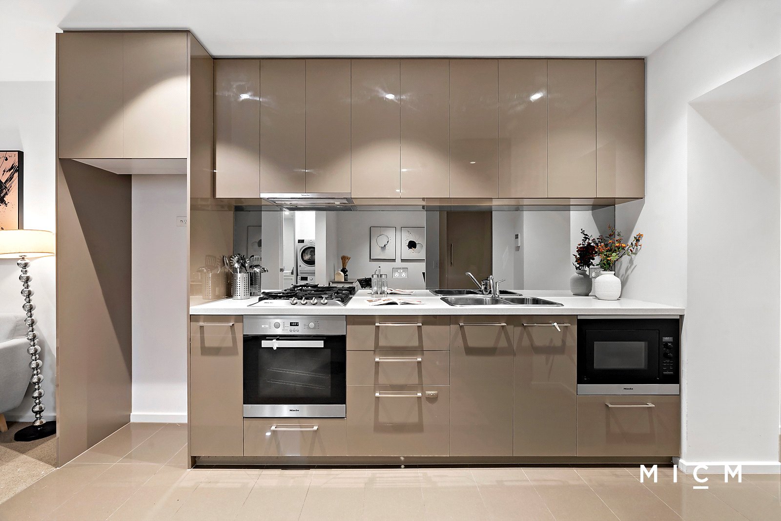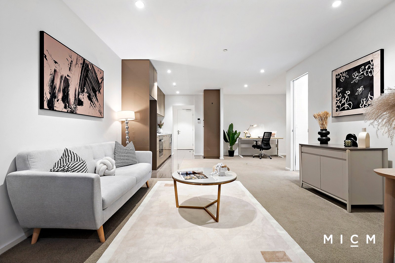 Positioned 15 floors high in the resort-inspired Australis complex, the air-conditioned comfort of roomy open-plan living and dining pivots a stone-finished kitchen boasting a mirrored splashback, soft-closing cabinetry, a Fisher and Paykel dish-drawer, and high-end Miele appliances including a microwave and 4-burner gas cooktop. A large open study will add a professional touch to working from home, or repurpose this flexible space as a nursery, if desired. Framed by floor-to-ceiling glass, a sheltered balcony showcases city skyline views, an ideal vantage point for a morning coffee or an evening drink. The generously sized bedroom shares the spectacular aspect, serviced by mirrored built-in robes and a fully tiled bathroom with a stone-topped vanity.