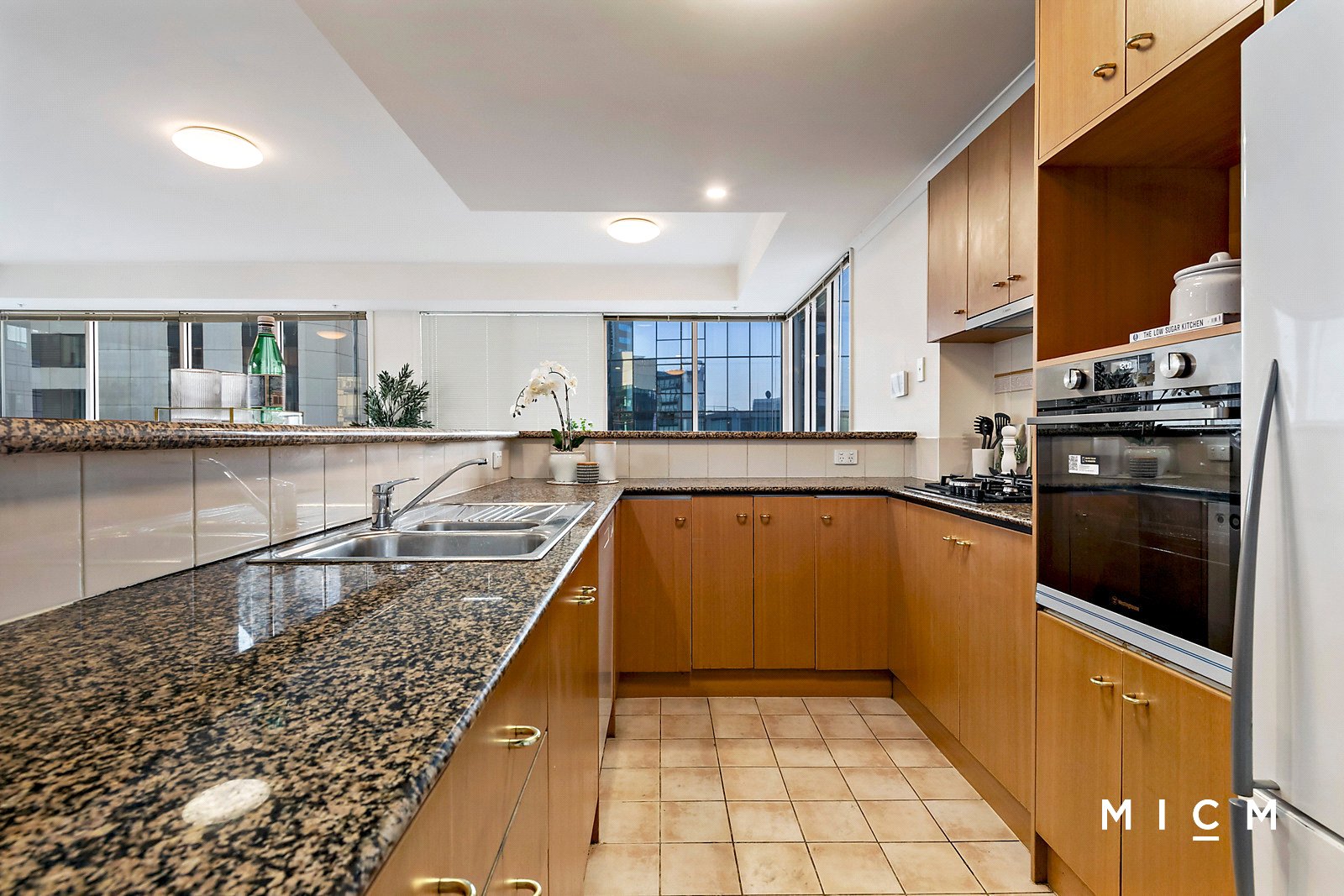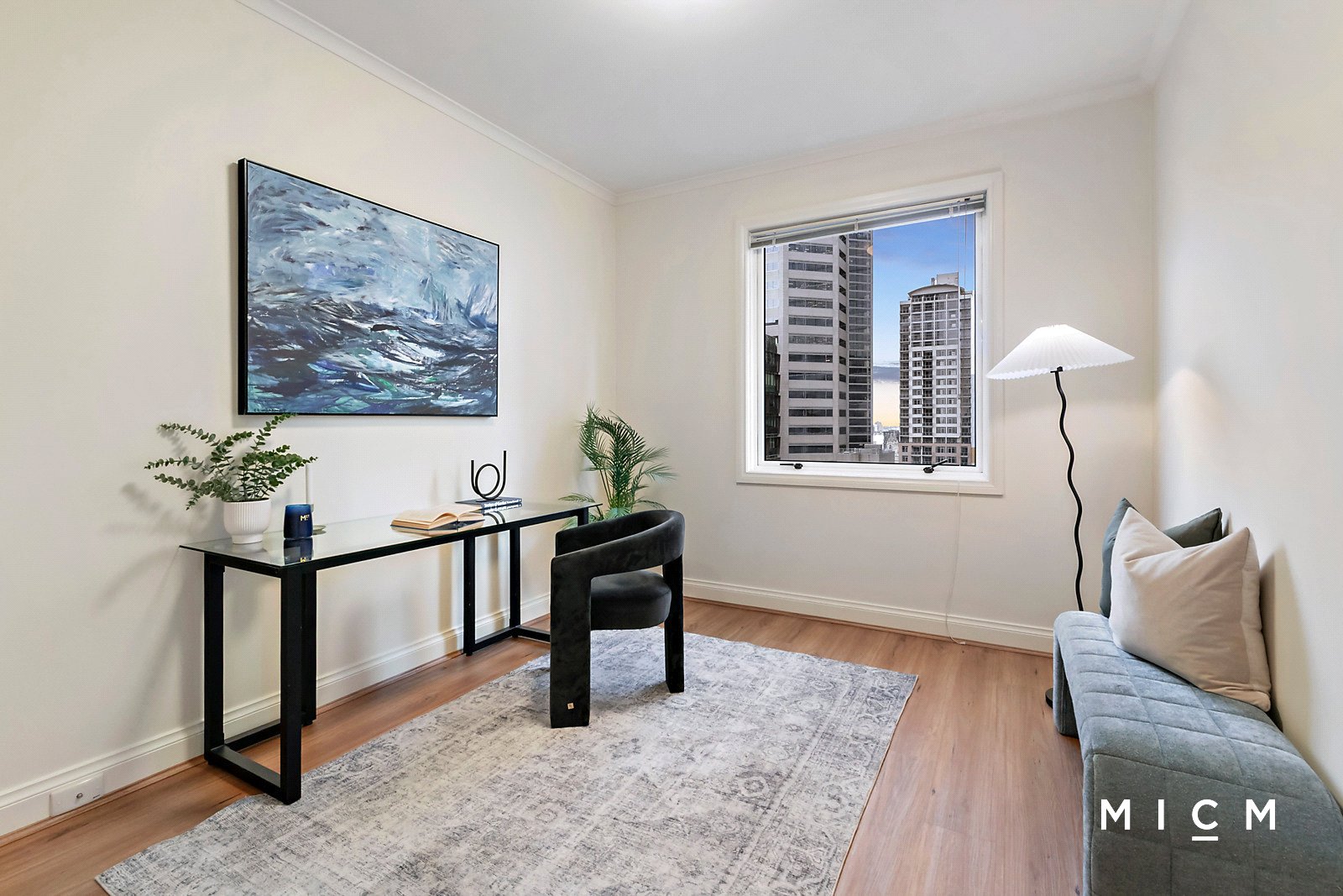 Zoned to perfection 16 levels high in the sought-after City Gate complex, the trio of palatial bedrooms are well positioned for restful repose. The oversized master suite boasts a private balcony, mirrored walk-in robes, and a fully tiled ensuite, while the remaining two mirror-robed bedrooms are serviced by a two-way bathroom graced with a dual vanity, floor-to-ceiling tiles, and a sparkling shower area over a bath. An additional living space is also staged on the ground floor, ideal for use as a home office with unmatched privacy.