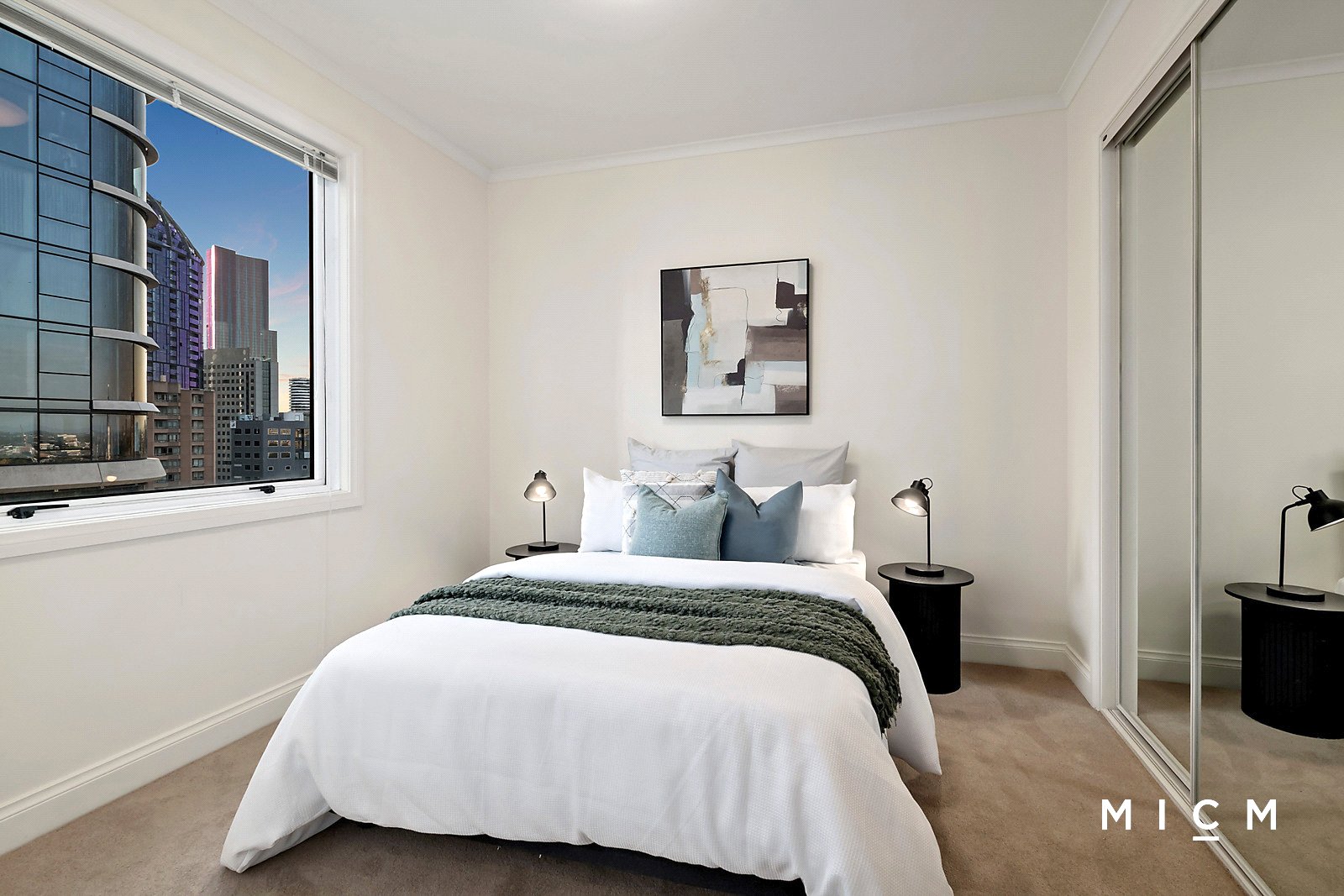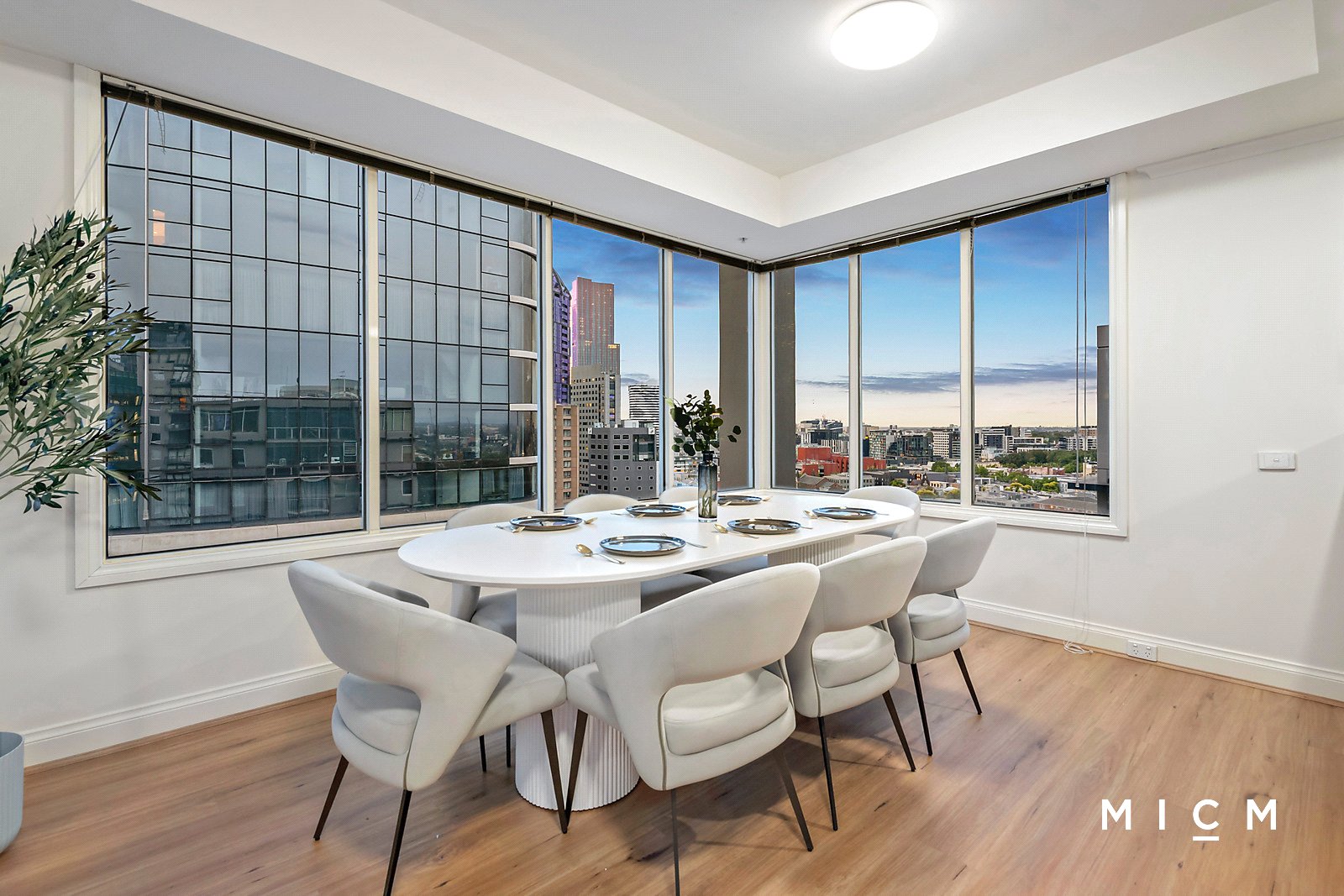 An unforgettable celebration of picturesque city views, this simply stunning 3 bedroom, 2.5 bathroom, 2 level apartment is infused with sun-drenched space in a commanding corner setting. Venture downstairs from your sub-penthouse retreat and take your first steps to a prestigious Paris-end lifestyle. Stroll to free city trams, choice of train stations, top-ranking universities, the State Library, QV and Bourke Street Mall shopping, Carlton Gardens, the theatre and sporting precincts, Queen Victoria Market, and lively laneway bars, cafes and restaurants. Live the life you love in the top end of town!