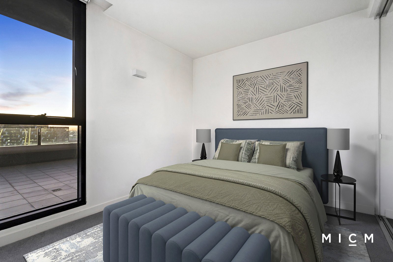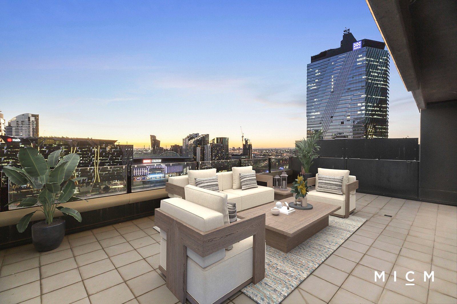 Roomy open-plan living and dining is complemented by a stone-finished kitchen showcasing quality appliances including a Smeg oven, 4-burner gas cooktop, and a Fisher and Paykel dish-drawer. Superbly set on the 18th floor of the ultra-modern Neo 200 complex, floor-to-ceiling glass slides open to a full-width terrace (approx. 39sqm) providing sensational views with colourful sunsets a regular highlight. Dine, recline or entertain with spectacular views sweeping over Marvel Stadium and the dazzling Docklands skyline. The generously sized bedroom is filled with natural light, serviced by mirrored built-in robes and a fully tiled bathroom.