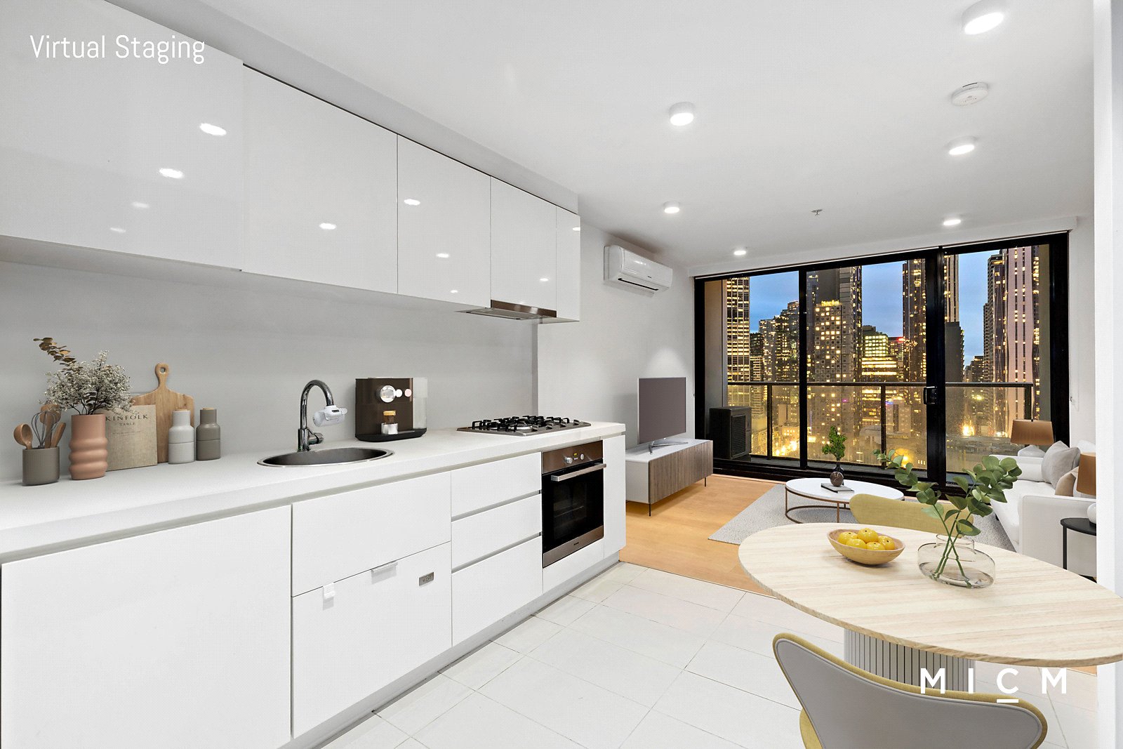 With sleek updated floorboards underfoot, the roomy comfort of open-plan living and dining is complemented by a stone-topped kitchen featuring soft-closing cabinetry, a Fisher and Paykel dish-drawer, and premium Miele appliances including a 4-burner gas cooktop. Step outside to a primary balcony and immerse yourself in open and picturesque views sweeping over the striking city skyline and touching down on the State Library dome, the Melbourne Central Shot Tower, and the Art Deco elegance of the former Russell Street Police Station. This is a panorama to treasure, just as spectacular day or night.