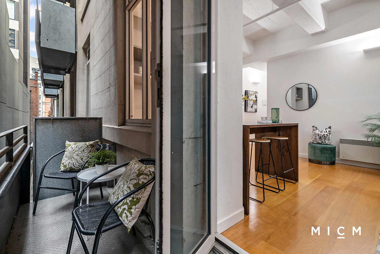 Under soaring 3.3 metre high ceilings on the second floor, wide-reaching open-plan living and dining is complemented by a streamlined kitchen boasting stainless-steel appliances including a gas cooktop. Swing open French doors to a sheltered balcony overlooking a tranquil Melbourne laneway. The newly carpeted bedroom is generously sized with wall-to-wall mirrored built-in robes, superbly serviced by a heated bathroom with a gleaming shower over a bathtub.