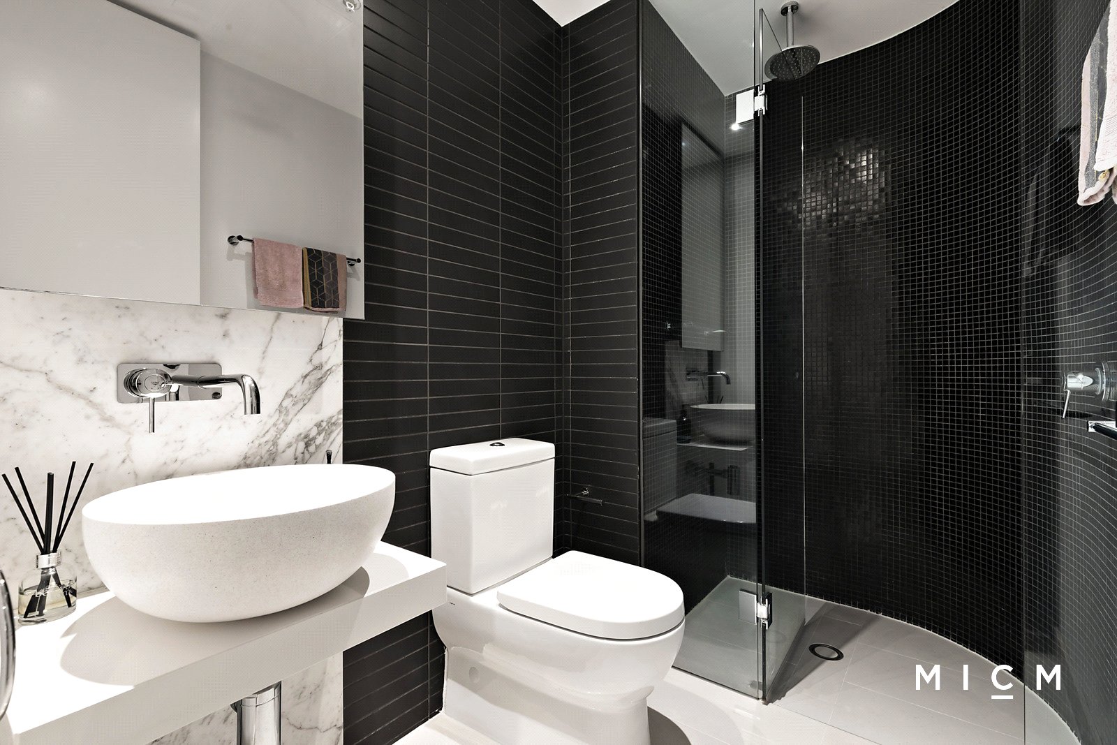The generously sized bedrooms are mirror-robed, superbly serviced by a sleek bathroom flaunting floor-to-ceiling tiles, mirrored cabinetry, and a rainfall shower. The front bedroom is individually air conditioned and shares the same spectacular outlook as the balcony, while the second bedroom is warmed by panel heating.