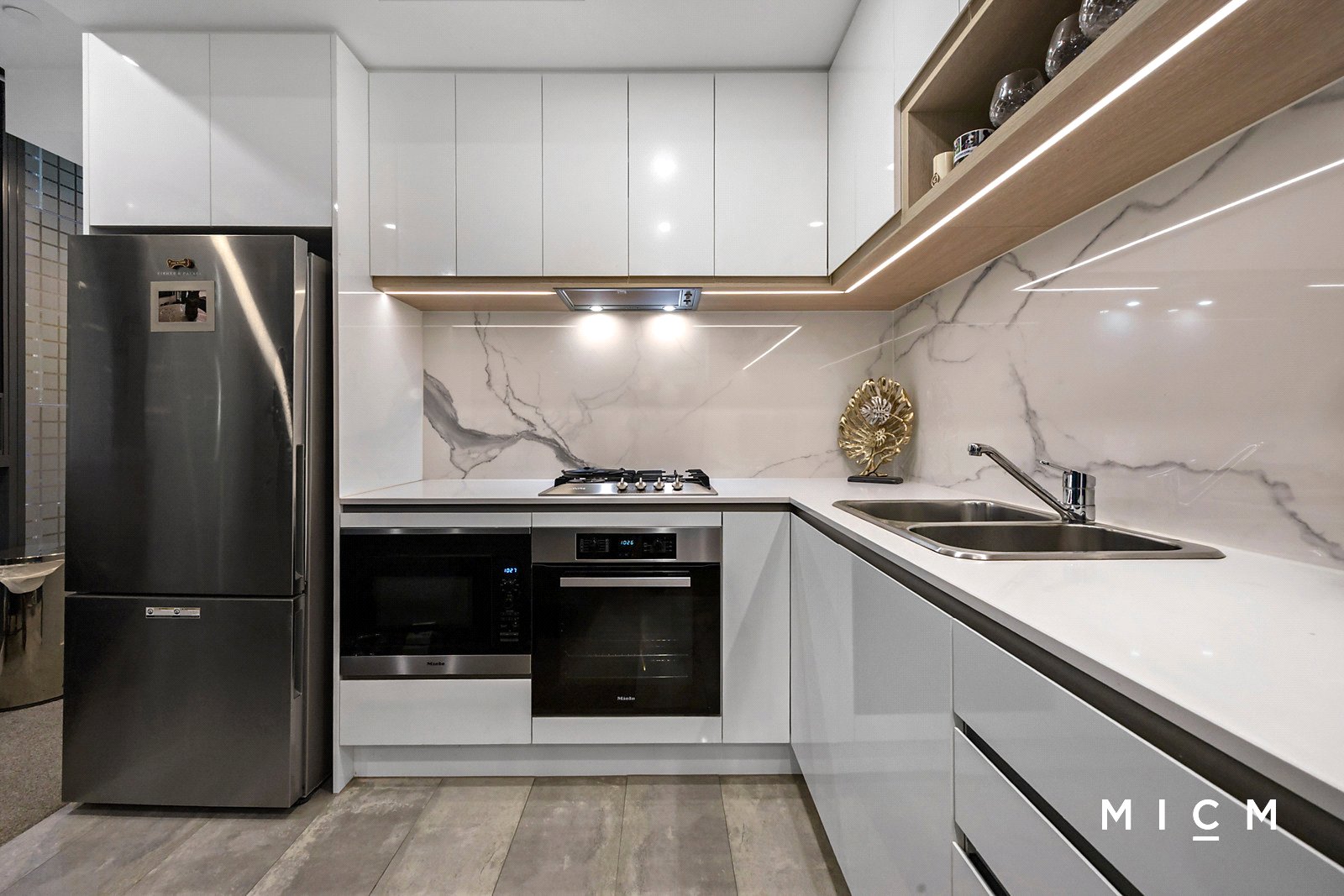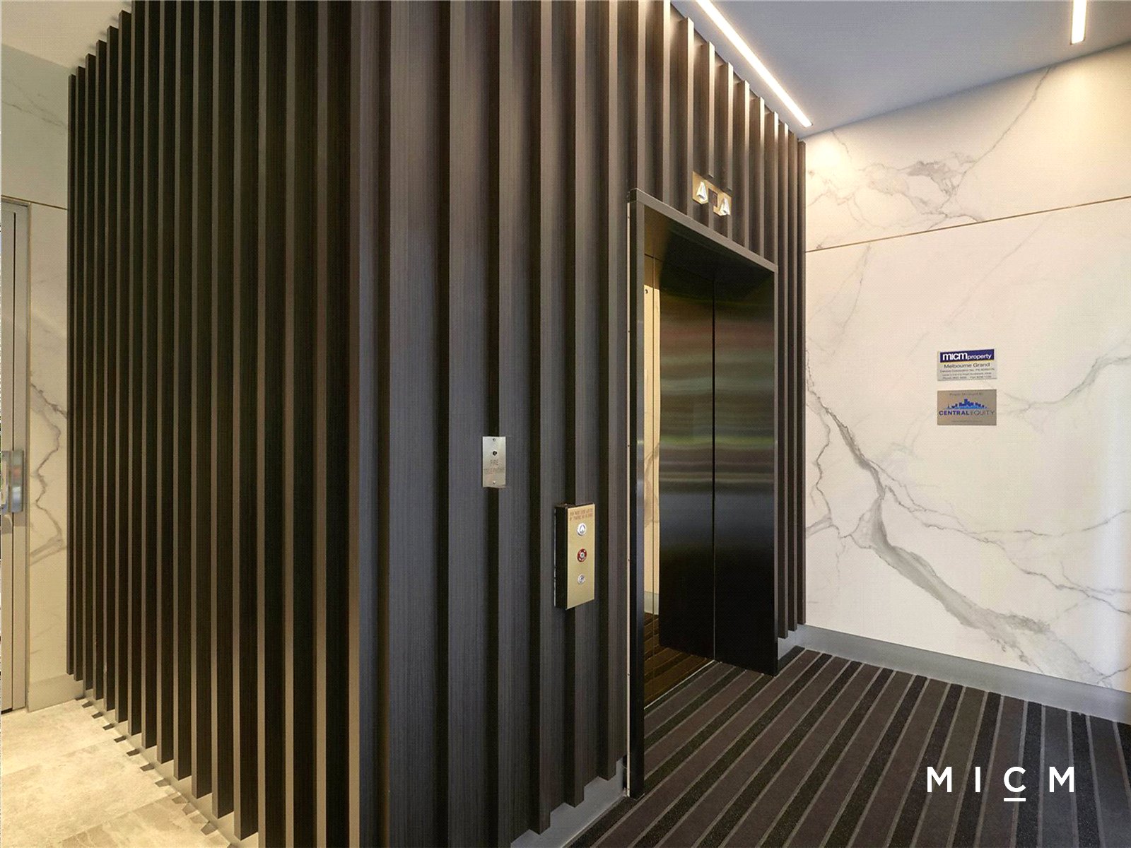 Set on the tranquil eastern wing of Melbourne Grand as one of just two luxury residences on the third floor, discover an L-shaped kitchen showcasing smooth stone surfaces, soft-closing cabinetry, a Fisher and Paykel dish-drawer, and high-performing Miele appliances including a microwave and 4-burner gas cooktop. Roomy open-plan living and dining is framed by privately screened floor-to-ceiling glass and a Juliet balcony overlooking the vibrant laneway below. The generously sized bedrooms are filled with light, serviced by mirrored built-in robes and a fully tiled bathroom with ample storage and a concealed cistern.