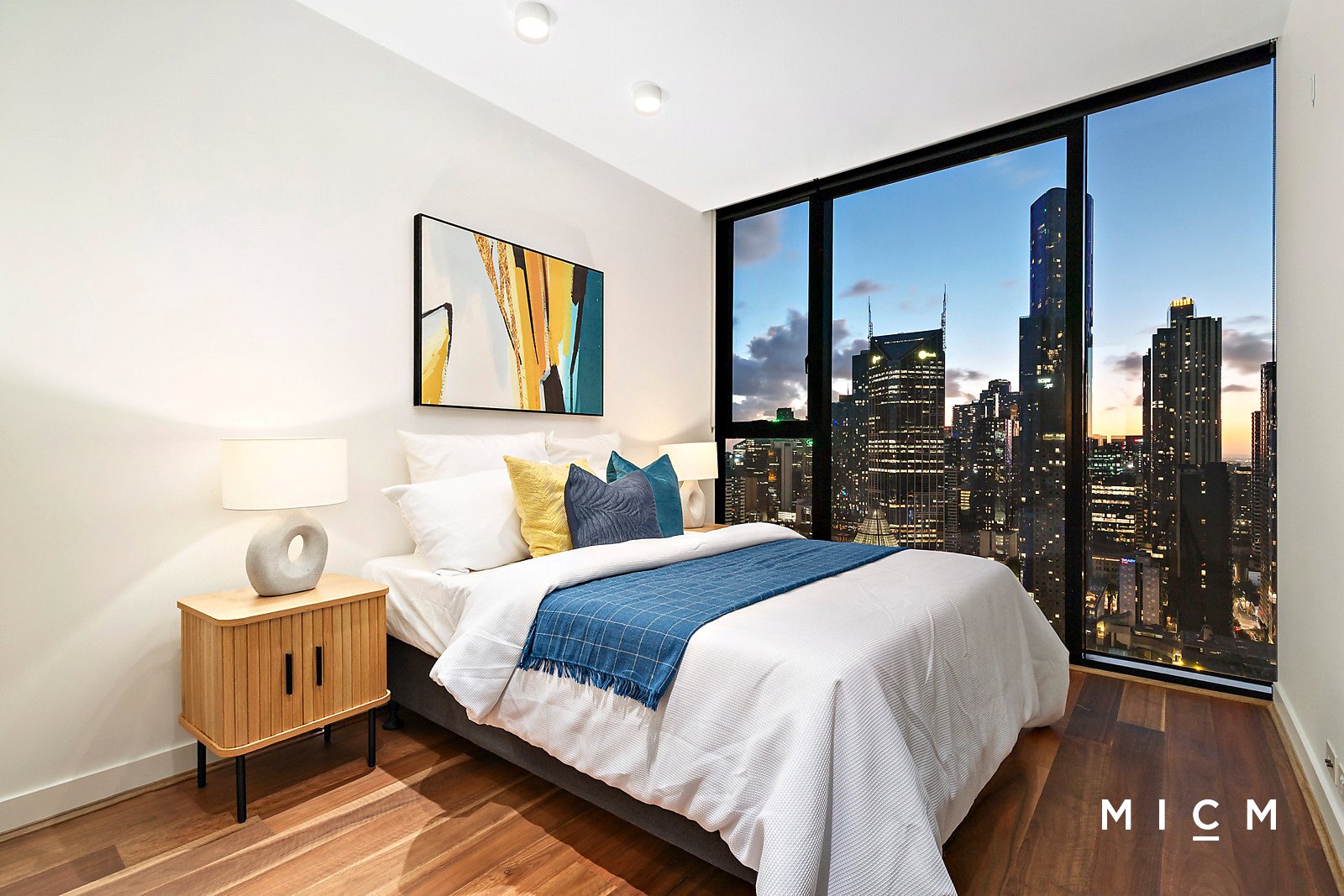 A stunning showcase of Paris-end elegance, this stylish 2 bedroom penthouse apartment is set to impress in a commanding corner position 31 floors high in the luxurious 33M complex. Head downstairs and take an easy walk to top-ranking universities, lush Carlton Gardens, free city trams, Chinatown, QV shopping, the State Library, an Asian supermarket on your doorstep, and all the convenience of Melbourne Central rail, retail and restaurants.