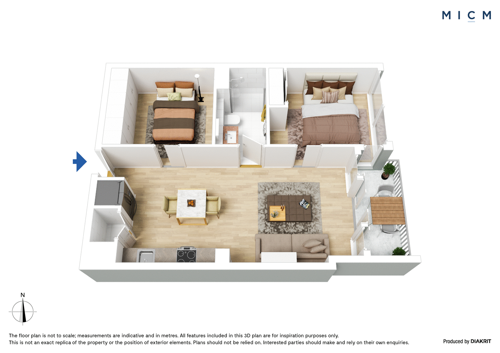 Spacious open-plan living and dining pivots a stone-topped kitchen with a mirrored splashback, mobile island bench, and stainless-steel appliances including a dishwasher and an easy-clean electric cooktop. Enjoy seamless flow to a sheltered east-facing balcony capturing morning sun and highlighting sweeping views over the soaring skyline. The generously sized and robed bedrooms are serviced by a deluxe bathroom with a fully tiled shower area and mirrored cabinetry.