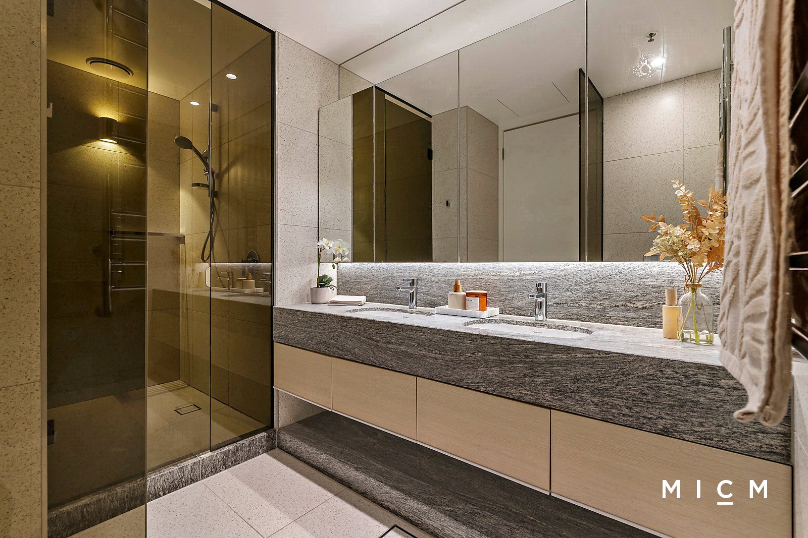 Substantial in size and extensively robed, the bedrooms are serviced by a pristine pair of luxe bathrooms with floor-to-ceiling tiles, stone detailing and concealed cisterns. Add a professional touch to your working day with a well-placed study nook, while the master suite is also enriched by roomy walk-in robes.