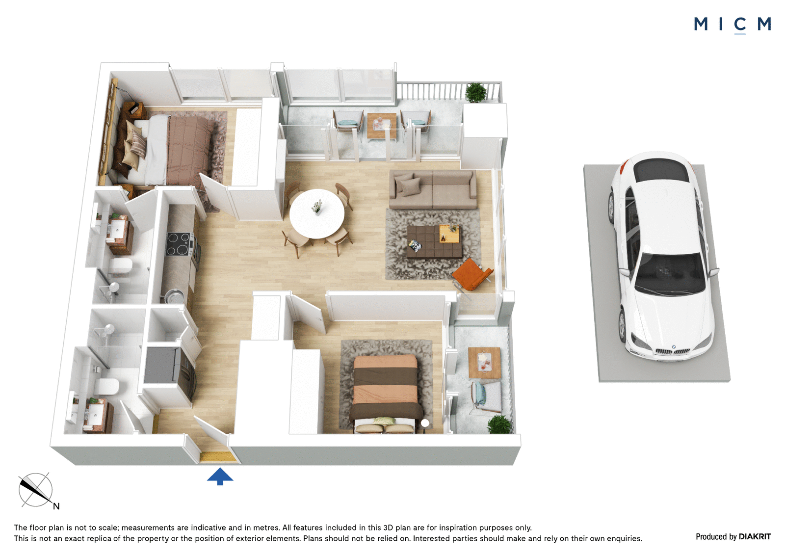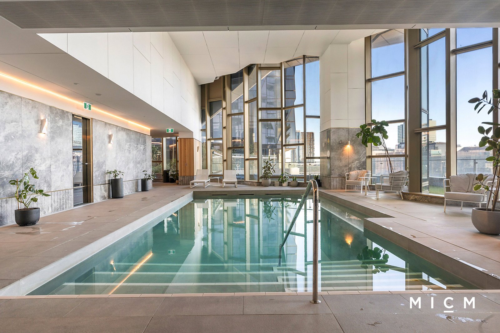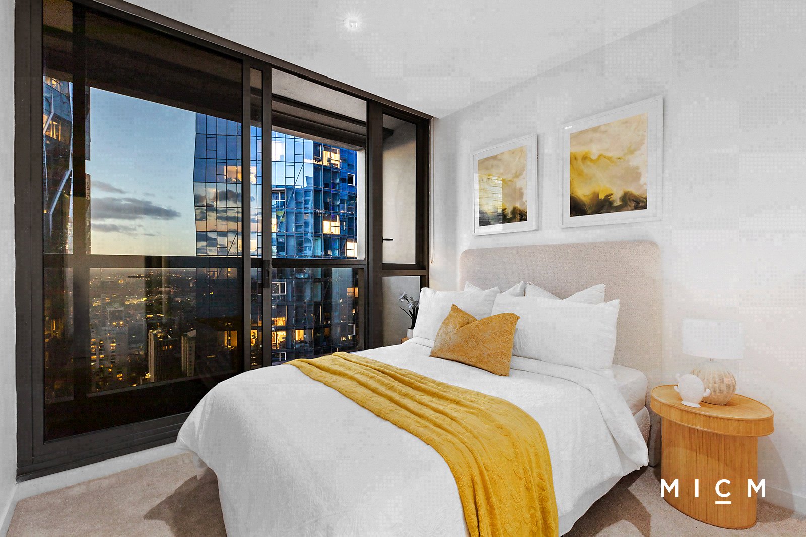 The spectacular use of floor-to-ceiling glass is an overriding feature of this radiant retreat. Spacious open-plan living and dining is underpinned by a stone-topped kitchen boasting soft-closing cabinetry, a mirrored splashback and stainless-steel appliances including an electric cooktop and a dishwasher. Set high on the 34th floor, step outside to a sheltered primary balcony graced with breathtaking views sweeping over the bay, the harbour, Marvel Stadium, and the dazzling Docklands skyline. This private perch is best enjoyed with an after-work drink framed by a colourful sunset. The generously scaled and robed bedrooms are filled with light, serviced by a perfect pair of deluxe bathrooms boasting full-height tiles and mirrored cabinetry. The second bedroom boasts its own north-facing balcony, ideal for watching the city come to life over a morning coffee.