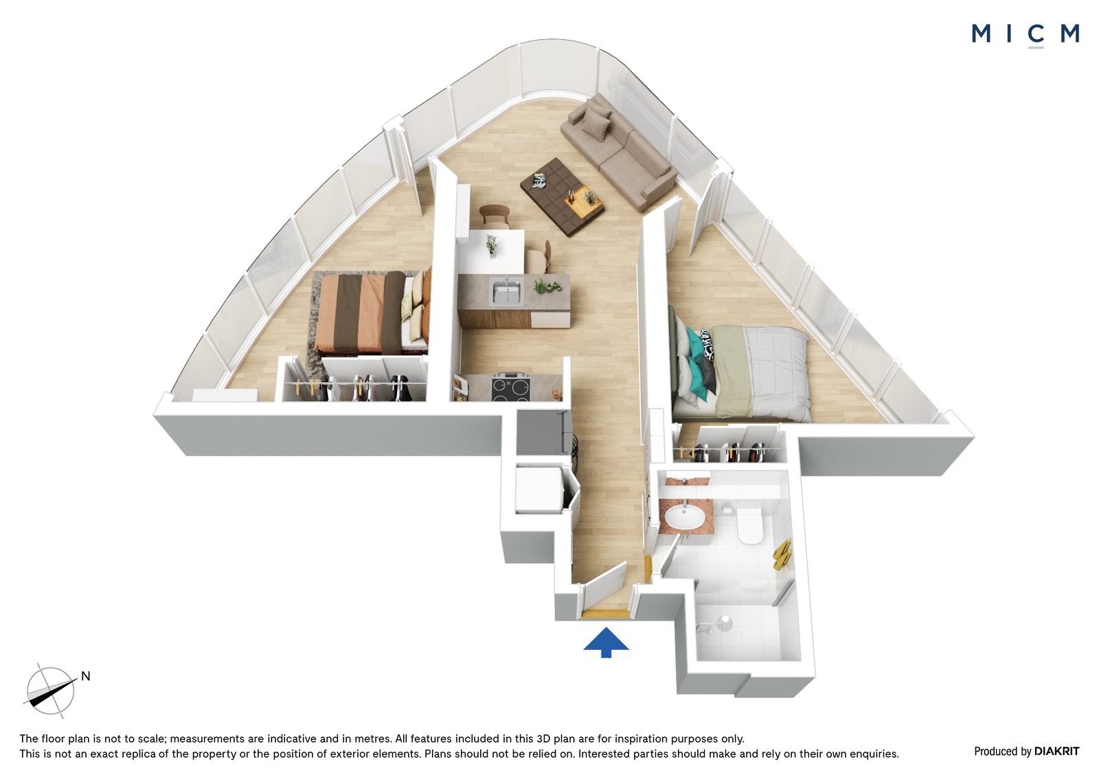 Superbly set in a commanding corner position, the spacious comfort of open-plan living and dining pivots a stone-topped kitchen showcasing a breakfast bar, soft-closing cabinetry, and high-quality Miele appliances including a full-sized dishwasher and a 4-burner gas cooktop. Curved floor-to-ceiling glass attracts northern light with ease and captures the soaring city skyline and the mountainous horizon as far as the eye can see. Serenely separated by the living space, the generously sized and mirror-robed bedrooms are filled with natural light, serviced by a luxe bathroom boasting full-height tiles, mirrored cabinetry and a hand/held shower fitting.