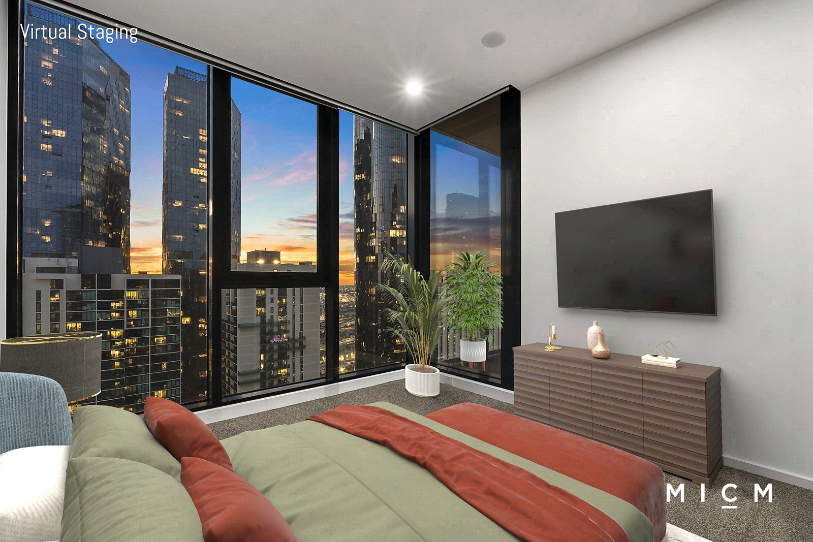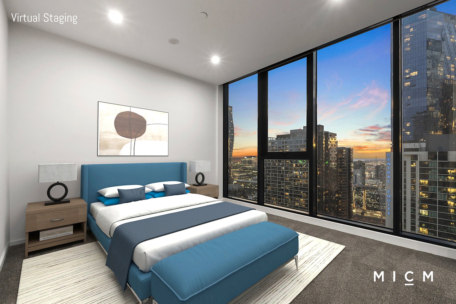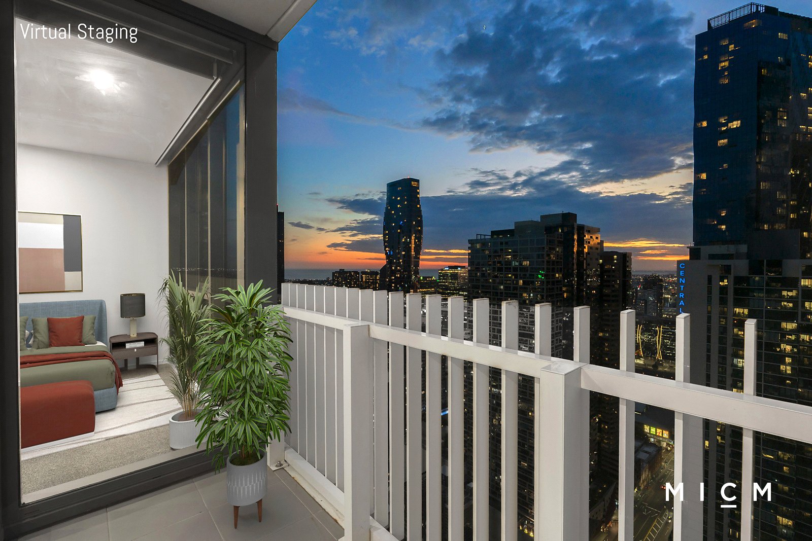 Enjoy a stone-topped kitchen showcasing a breakfast bar, soft-closing cabinetry, a Fisher and Paykel dish-drawer, and the high performance of Miele appliances including a microwave and a 4-burner gas cooktop. Spacious open-plan living and dining makes a seamless connection with a sheltered balcony boasting spectacular views sweeping over the soaring city skyline, the beautiful blue waters of Port Phillip Bay, and the mountainous majesty of the Great Dividing Range. Taking a share of the striking 40th floor aspect, generously sized bedrooms are superbly serviced by mirrored built-in robes and a perfect pair of fully tiled bathrooms. Nearby, a sizeable study with a built-in workstation is ideal for students and those working from home.