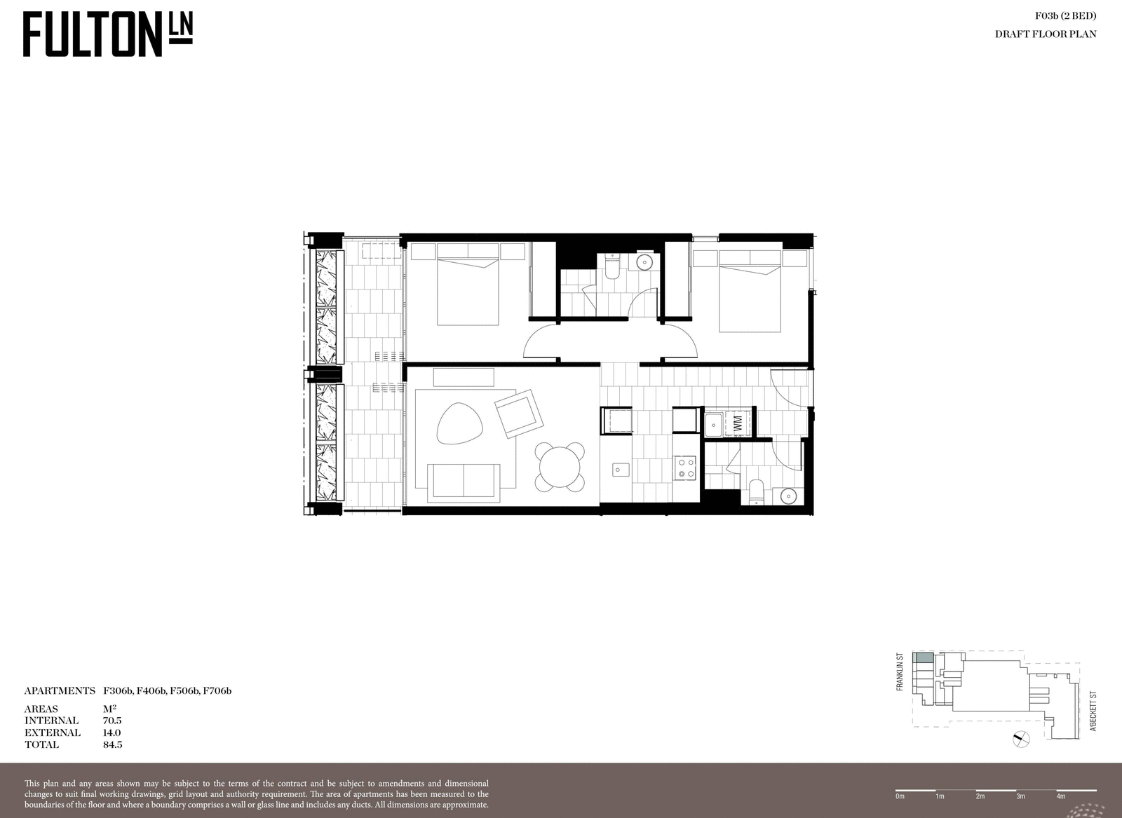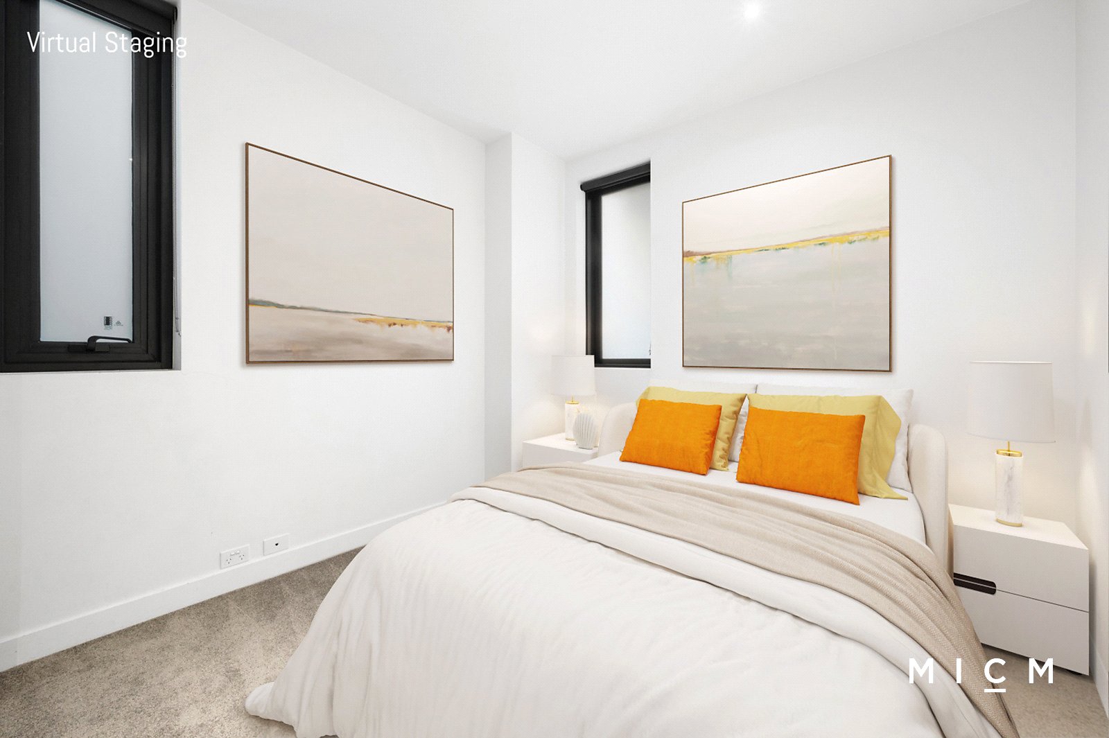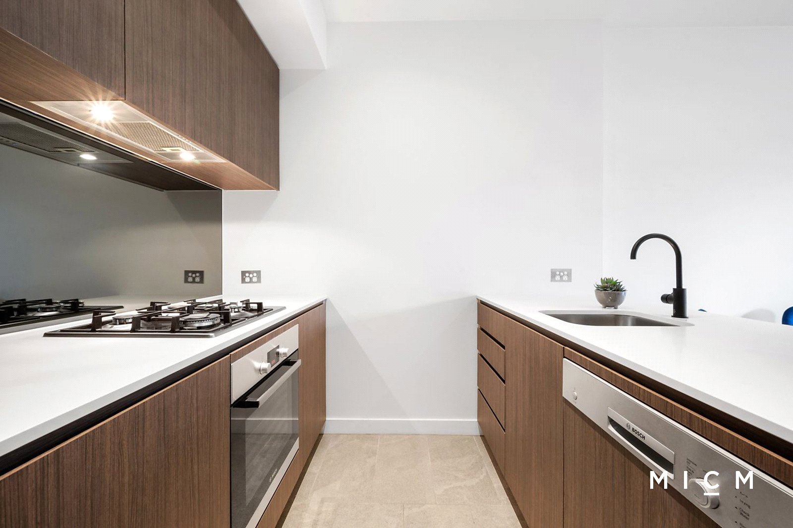 Beyond a welcoming hallway entrance, the light-filled layout will inspire throughout spacious open-plan living/dining and a stone-topped kitchen showcasing a mirrored splashback, a fully integrated Fisher and Paykel fridge/freezer and the full complement of high-end Bosch appliances including a full-sized dishwasher. As part of the Fulton Lane complex, enjoy an undercover balcony purpose-built for entertaining with a spectacular city skyline and Flagstaff Gardens backdrop. Generously sized and mirror-robed bedrooms attract the warmth of natural light, serviced by a luxe bathroom graced with a fully tiled rainfall shower area and mirrored cabinetry.