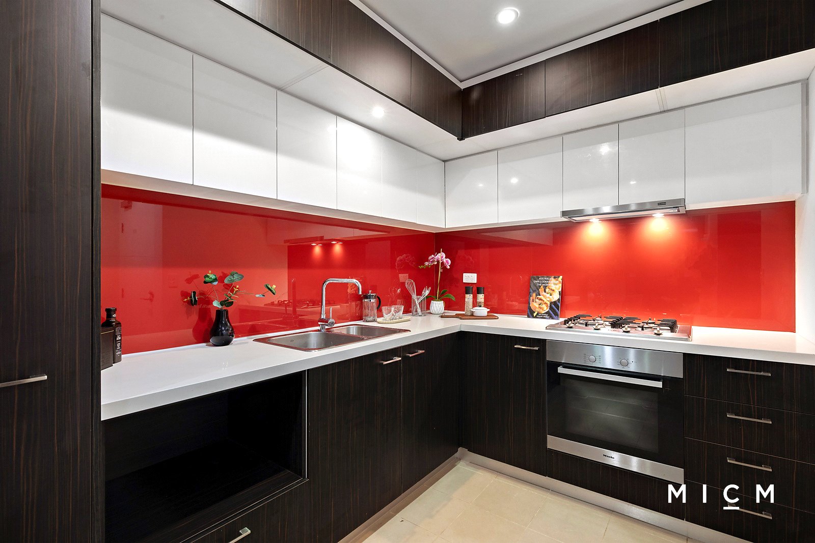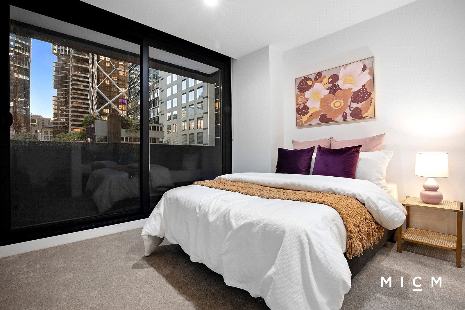 Roomy open-plan living and dining is underpinned by an L-shaped kitchen showcasing sleek stone surfaces, a pull-out pantry, a new rangehood, and high-quality Miele appliances including a 4-burner gas cooktop. Feel the heartbeat of the city on a full-width balcony overlooking the lush greenery of Guildford Lane from the fourth floor of the stylish Melbourne Star complex. Generously sized and newly carpeted, the mirror-robed bedrooms are serviced by a pair of refreshed bathrooms with fully tiled shower areas, storage capacity and stone-topped vanities. Additionally, two of the bedrooms enjoy direct access to the balcony.