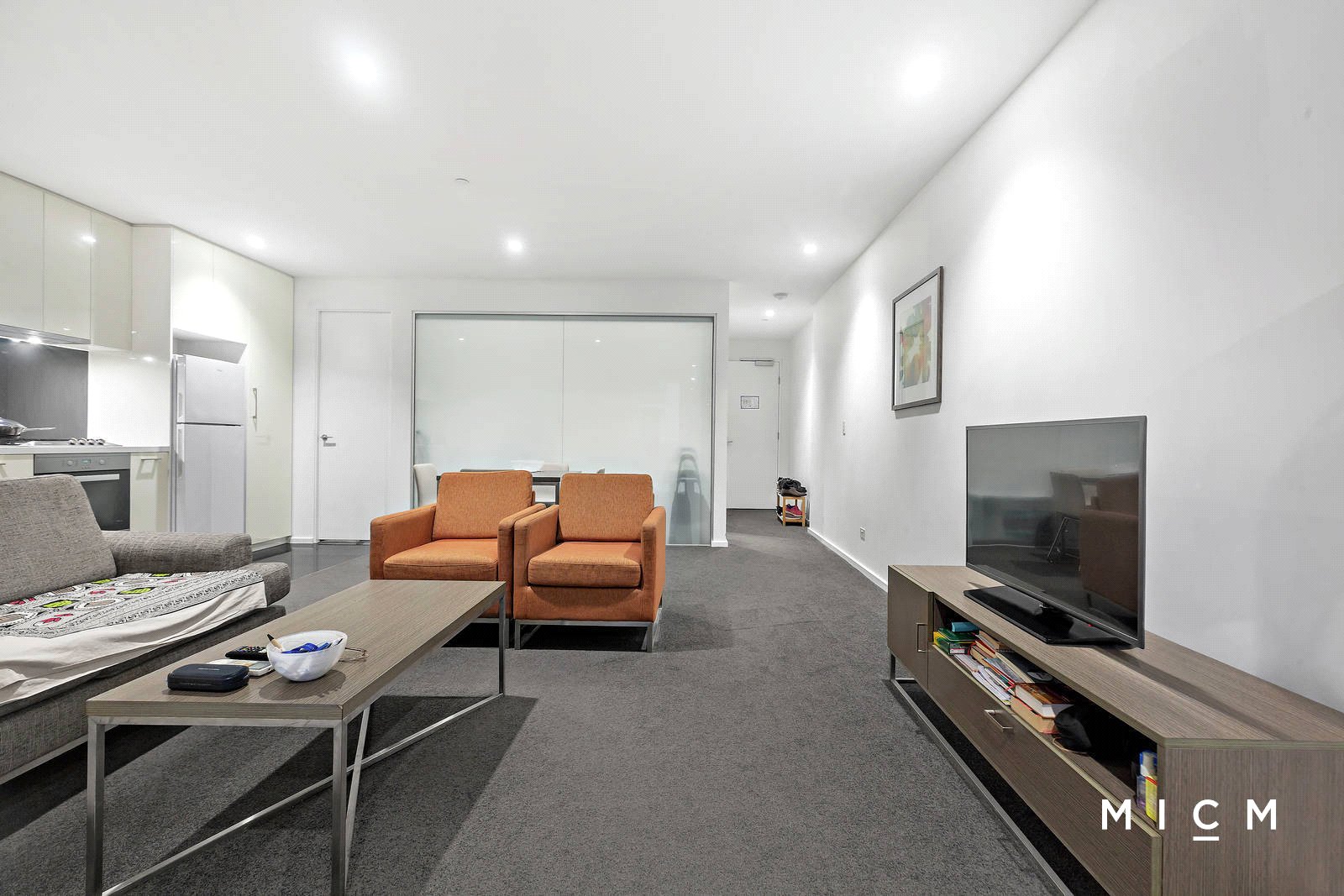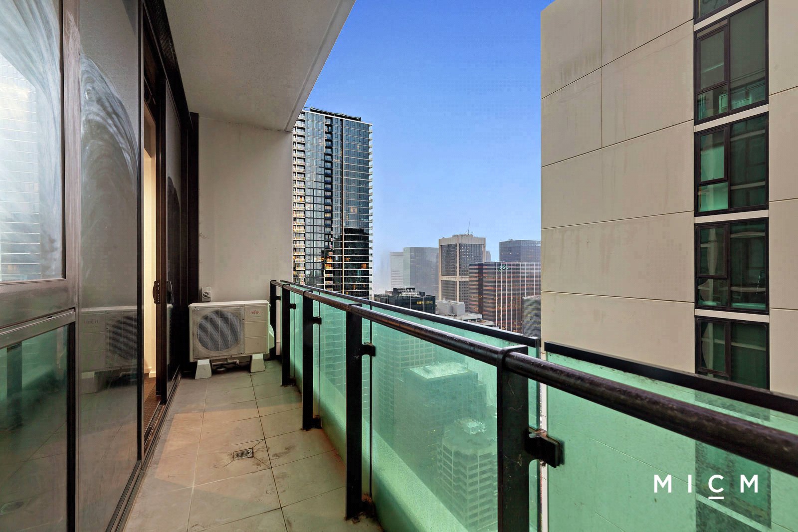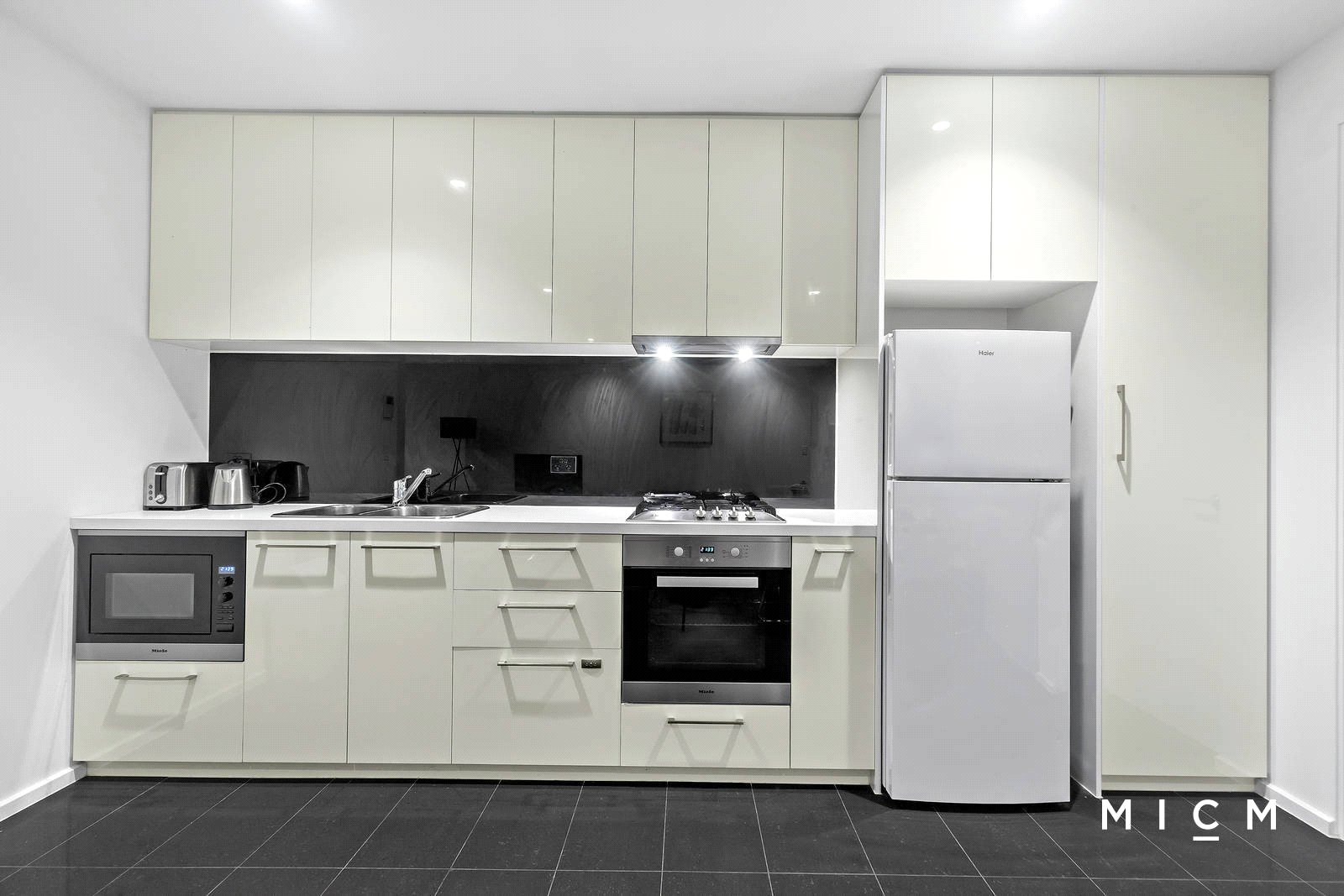 Roomy open-plan living and dining pivots a stone-finished kitchen featuring soft-closing cabinetry, a Fisher and Paykel dish-drawer and high-quality Miele appliances including an integrated microwave. Be instantly drawn to a full-width balcony with sweeping skyline views, the perfect backdrop for a relaxing after-work drink. Privately separated by the living space, both bedrooms are substantially robed and more than generously sized, serviced by a luxe two-way bathroom with floor-to-ceiling tiles and a stone-finished vanity.