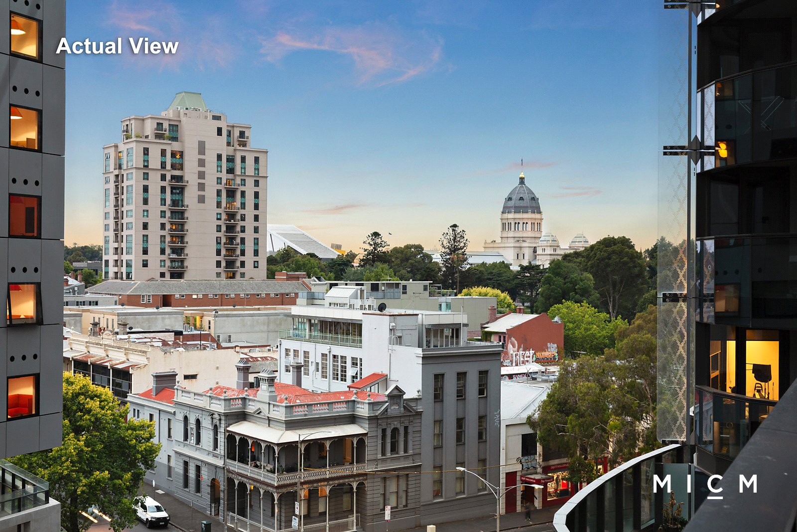 Spacious and sunlit open-plan living and dining is underscored by a stone-finished kitchen boasting soft-closing cabinetry, a high-end Fisher and Paykel dish-drawer, and premium Miele appliances including a 4-burner gas cooktop. Perched on the sixth floor of the designer 33M complex, connect with a sheltered balcony drenched in northern sunlight with sweeping views of the city skyline, the Royal Exhibition Building dome, and Carlton Gardens treetops. Dine, recline or entertain day or night in this private position. Both sizeable bedrooms are superbly serviced by mirrored built-in robes and a pristine pair of sleek bathrooms.