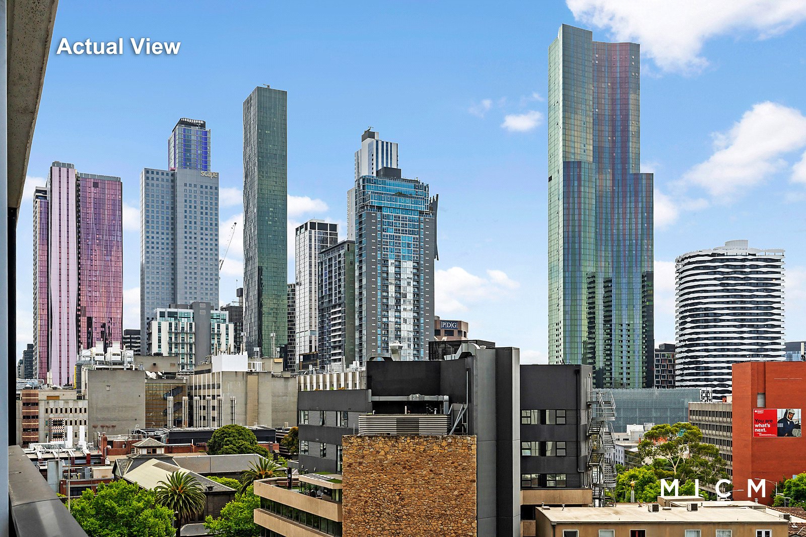 Discover roomy open-plan living and dining in tandem with a stone-finished kitchen boasting a Fisher and Paykel dish-drawer and high-end Miele appliances including a 4-burner gas cooktop. Set on the 7th floor of the highly prized 33M complex, step out to a sheltered balcony with a commanding outlook over the neighbourhood. Immerse yourself in this northerly aspect sweeping across the iconic Royal Exhibition Building dome and the Carlton Gardens treetop canopy before touching down on the soaring city skyline. This breathtaking backdrop will be a sensation when entertaining! Both mirror-robed bedrooms are generously sized and supremely sunlit, serviced by a perfect pair of luxe bathrooms with mirrored cabinetry.