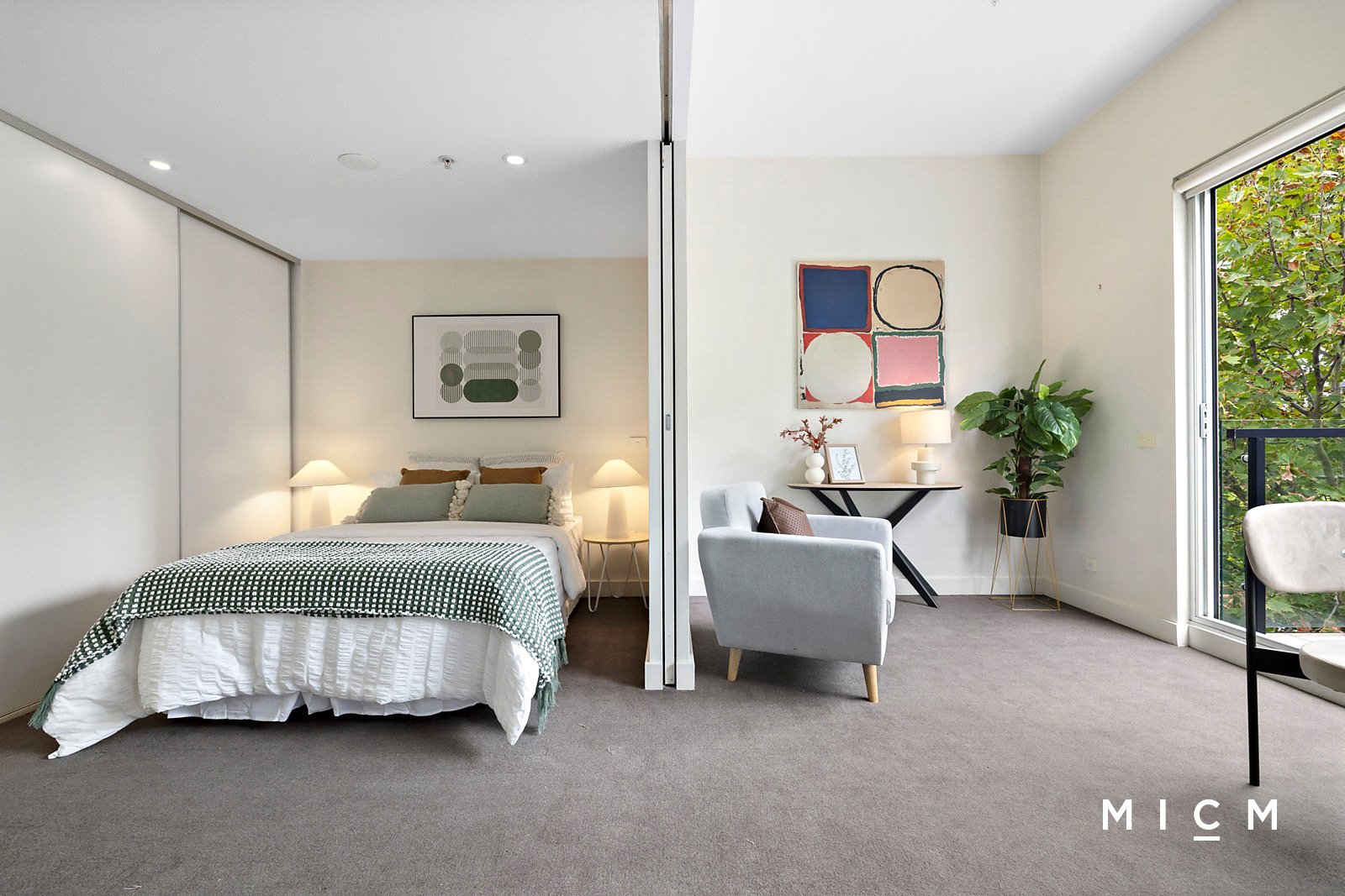 Under towering 3m ceilings, spacious open-plan living and dining is underpinned by a stone-topped kitchen showcasing a pull-out pantry and the full complement of high-end Blanco appliances including a dishwasher and an easy-clean electric cooktop. Step outside to a private balcony among the treetops, ideal for relaxing with a morning coffee as the city comes to life. Enjoy a large bedroom, serviced by wall-to-wall built-in robes and a sparkling bathroom with a rainfall shower and mirrored cabinetry.