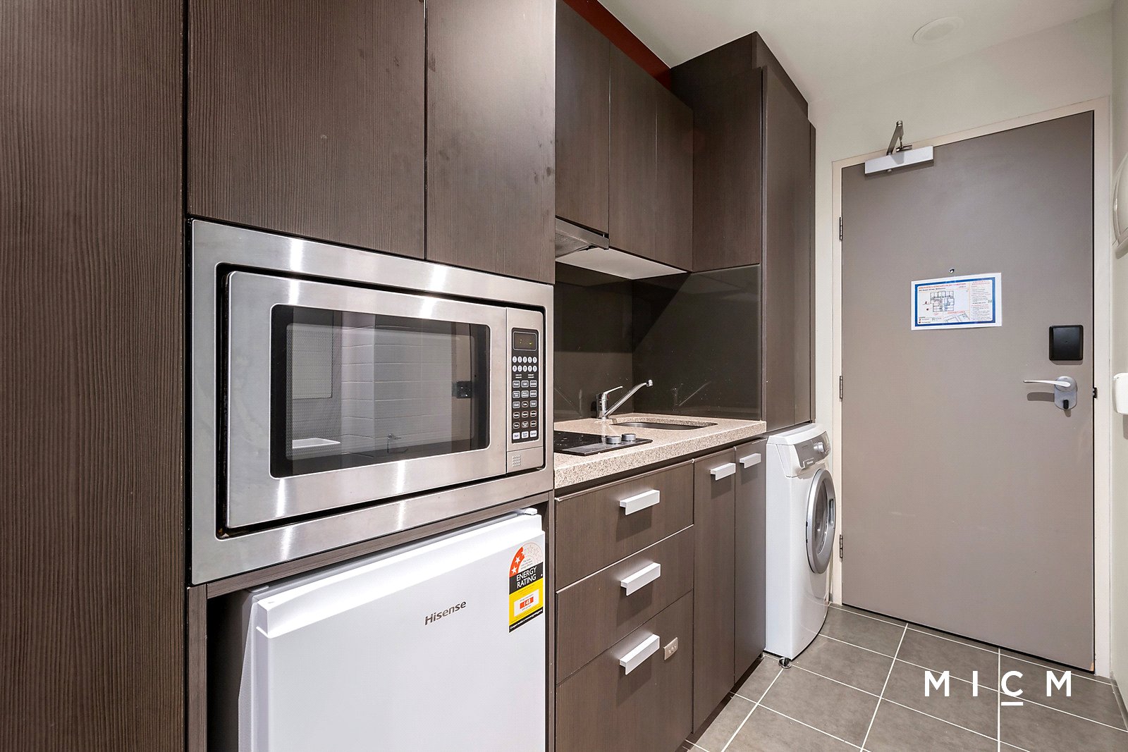 Discover low-maintenance rest and retreat with a streamlined kitchen featuring stone surfaces, an electric cooktop, combination microwave/oven, Fisher and Paykel dish-drawer, and a fridge/freezer. Enjoy a light-filled domain with plenty of space for living and dining, underpinned by a queen-sized bed and a study zone with a desk. Connect with a sheltered balcony, the perfect perch for a morning coffee or evening drink.