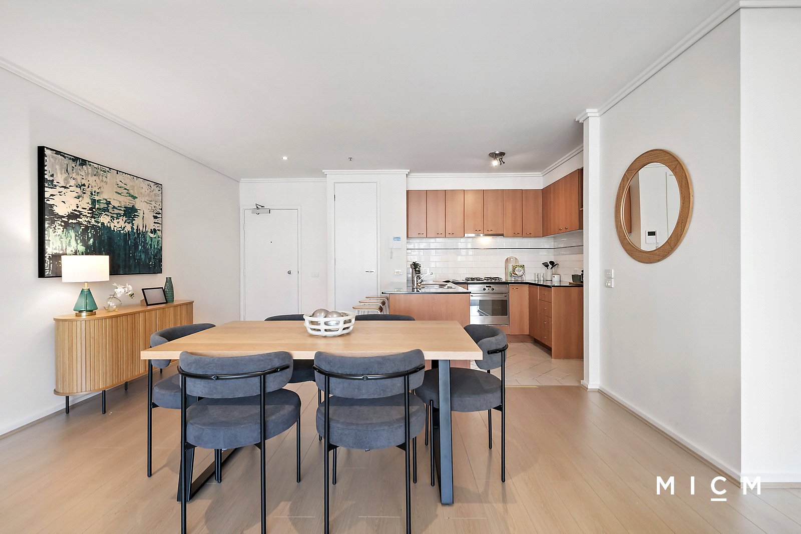 Set on the third floor of the coveted Capri building, discover roomy and air-conditioned open-plan living and dining underscored by a granite-finished kitchen with stainless-steel appliances. Floor-to-ceiling glass slides open to a sheltered primary balcony boasting a treetop aspect sweeping over the neighbourhood towards the majestic Shrine of Remembrance in the distance.