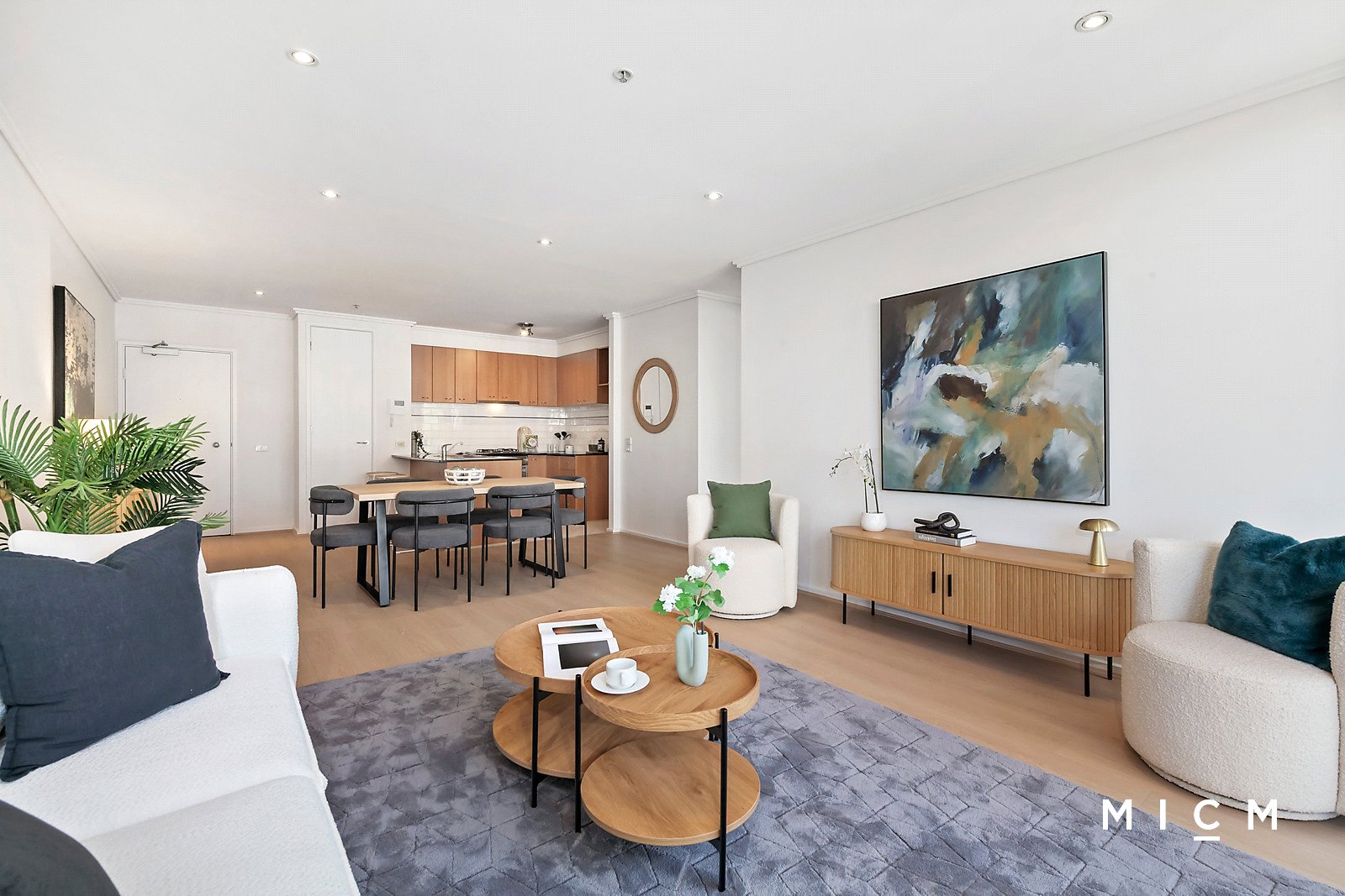 A stunning combination of natural light, a free-flowing layout and a peaceful corner position, this spacious 3 bedroom, 2 bathroom, 2 car-park apartment is enriched by a world of convenience on your doorstep. Head downstairs and stroll to the Royal Botanic Gardens, Anzac trains, choice of tram routes, Woolworths, the arts precinct, South Melbourne Market, and a sought-after selection of neighbouring cafes and restaurants.