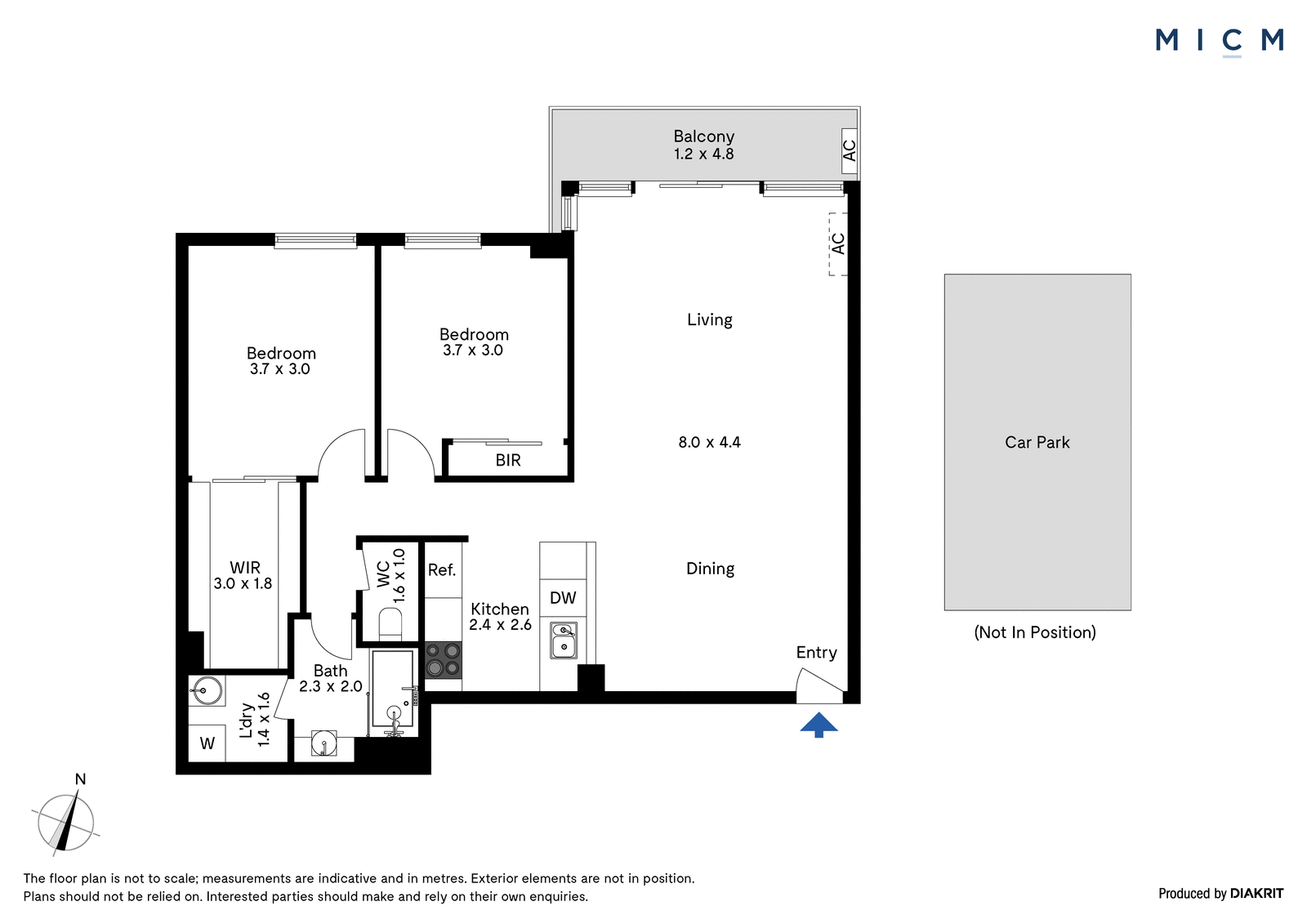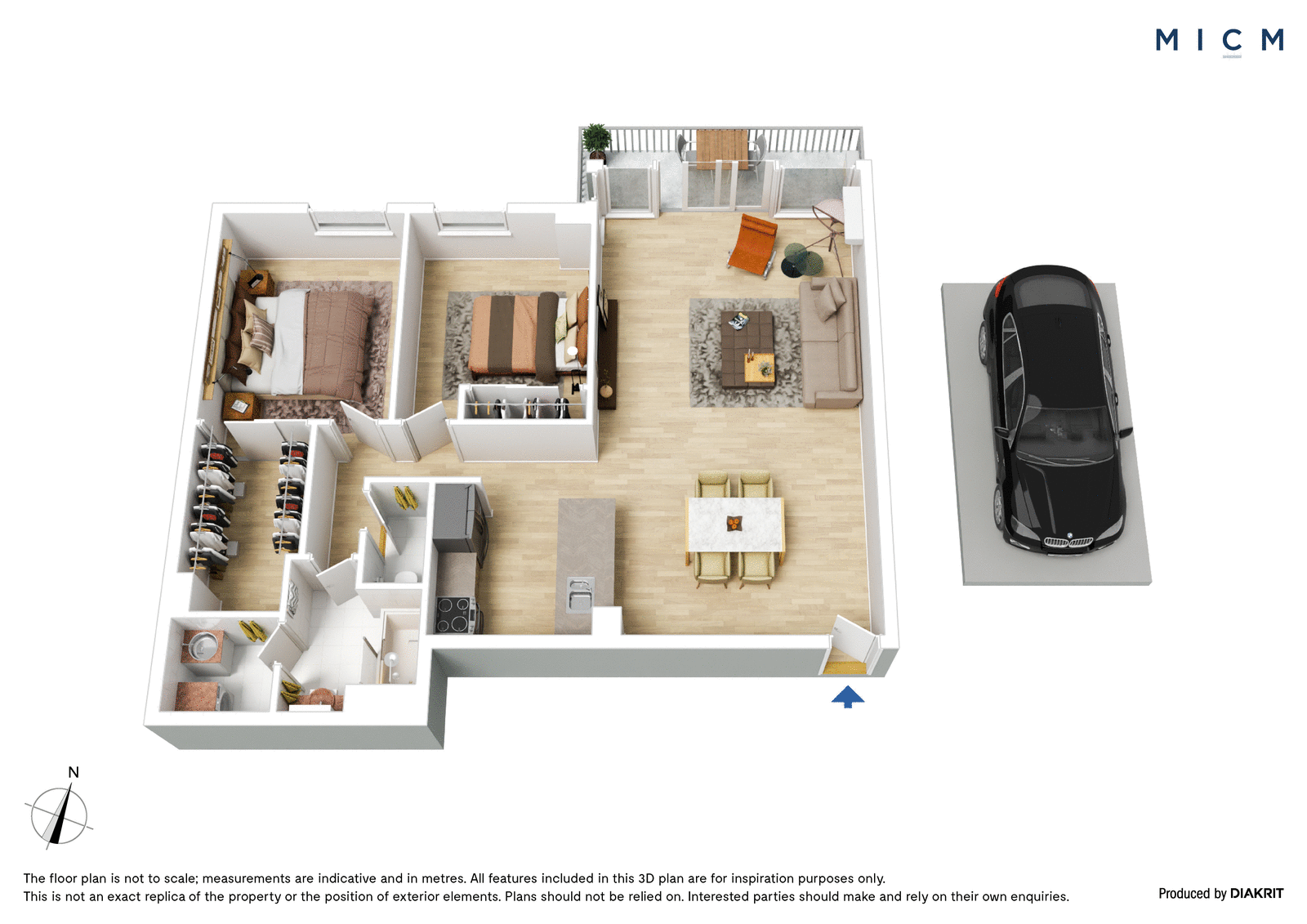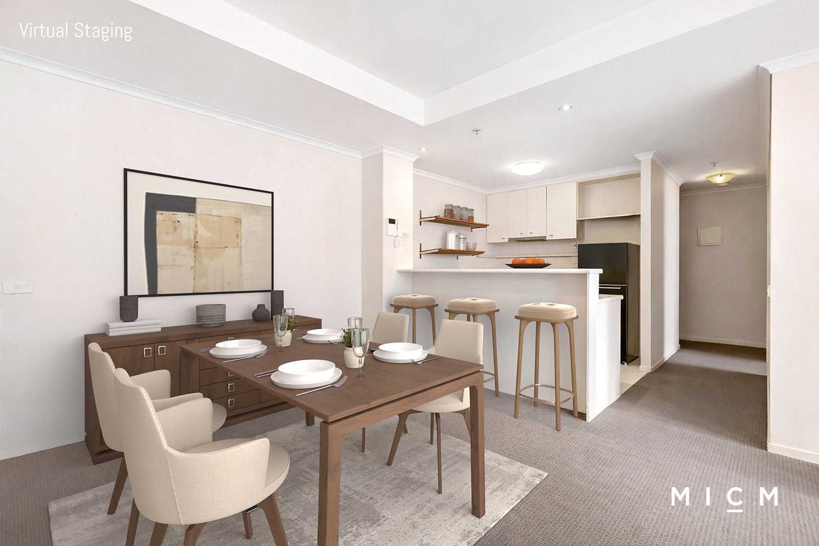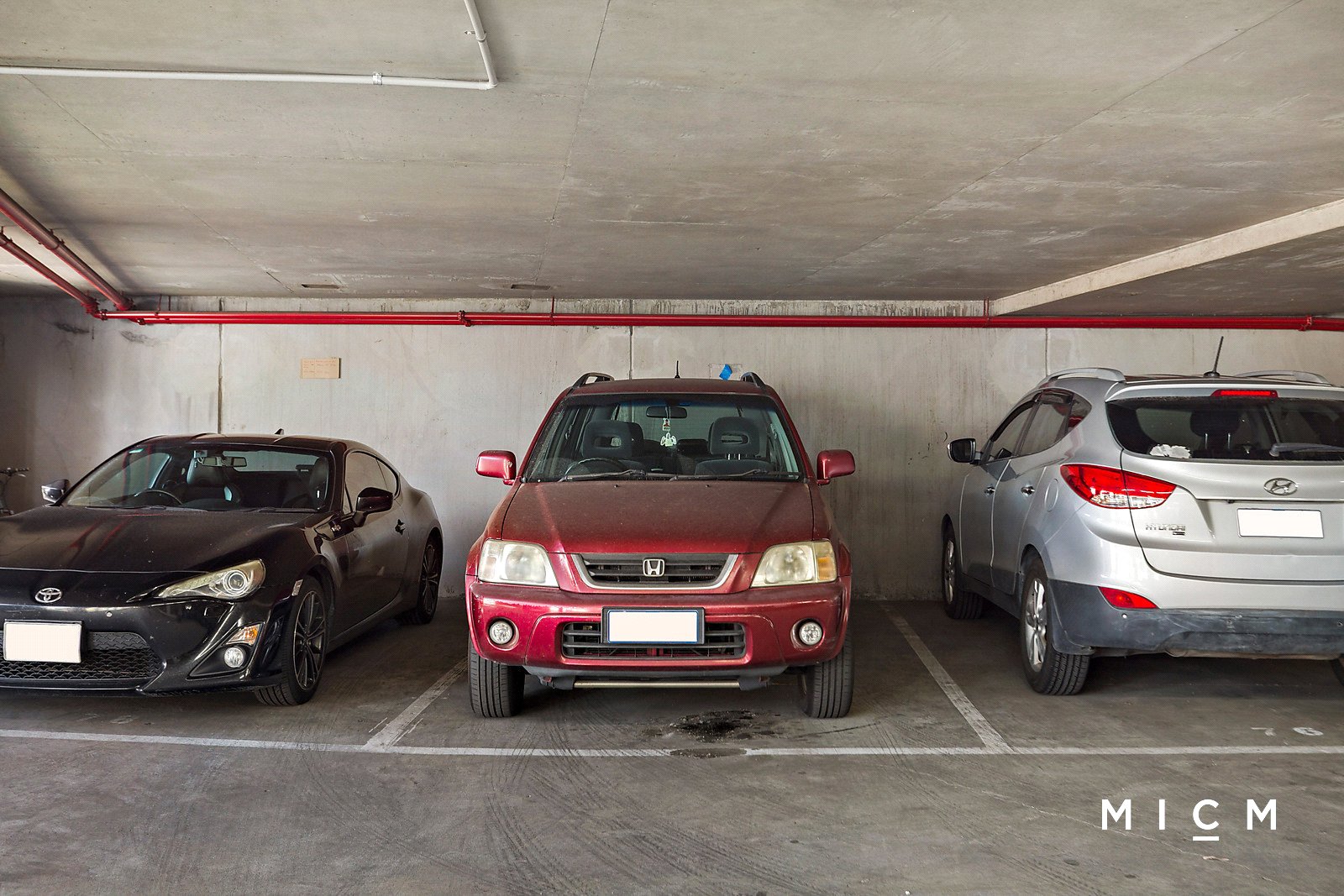 Enjoy the air-conditioned comfort of spacious open-plan living and dining, complemented by a sparkling kitchen boasting a breakfast bar and stainless-steel appliances including a 4-burner gas cooktop and an upgraded Bosch dishwasher. Capturing the warmth of northern sun through floor-to-ceiling glass, connect with an undercover balcony showcasing striking views over the neighbourhood towards the city skyline. Both mirror-robed, north-facing bedrooms are generous in size, serviced by a marble-finished bathroom graced with a shower over a bathtub and a separate WC. Further, the main bedroom comes complete with walk-in robes, while a large laundry room is a welcome addition.