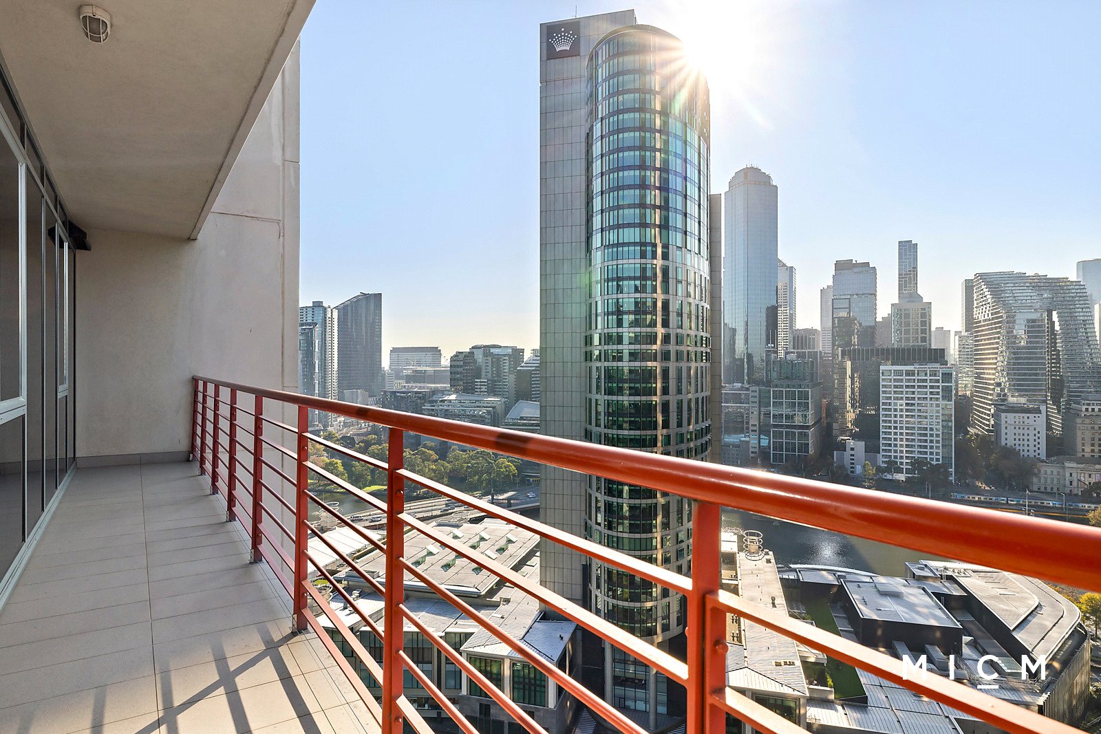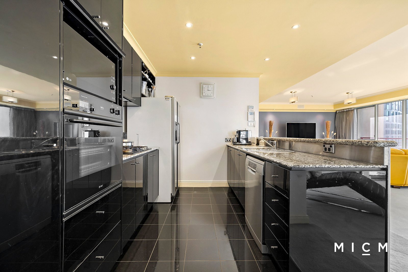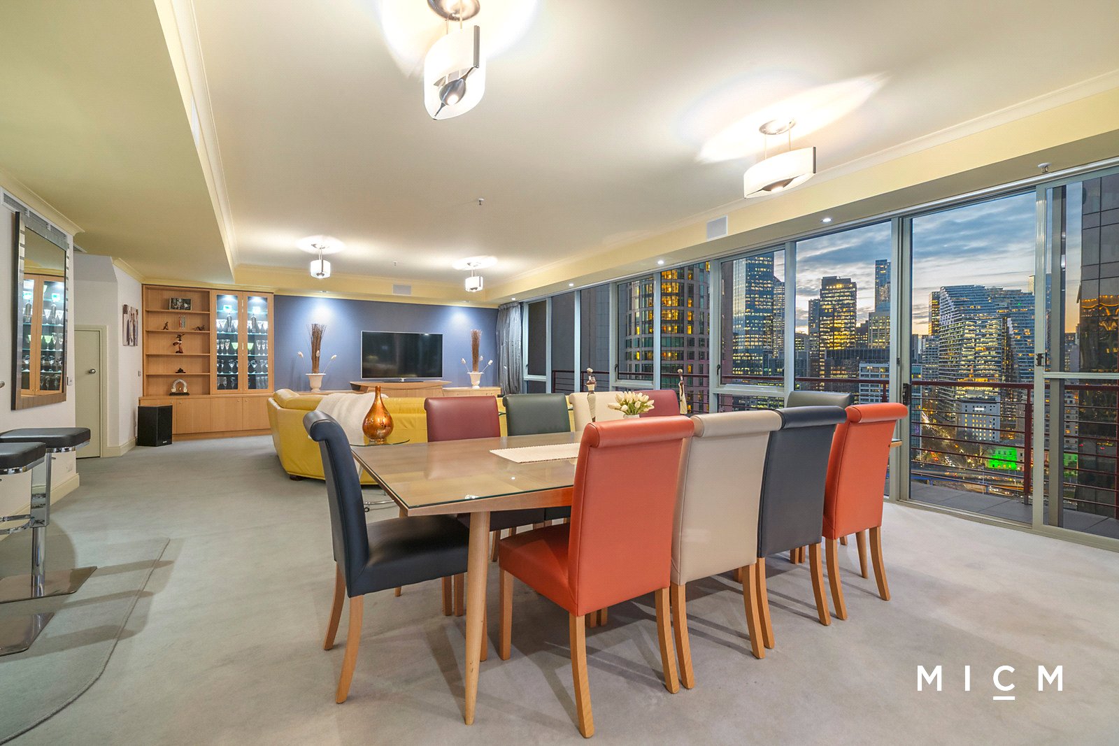 Crowning the top two floors of the tightly held Southbank Towers complex, discover a chef-friendly kitchen graced with glistening granite finishes, an imposing breakfast bar, and stainless-steel appliances including a wall oven, 4-burner gas cooktop, and an upgraded Bosch dishwasher. Enjoy open and designated zones for living and dining, framed by panels of floor-to-ceiling glass, before stepping outside to a primary balcony running the full length of the apartment. This game-changing platform for entertaining captures the all-day warmth of northern sun, while highlighting the towering neighbourhood skyline extending over the Yarra River and touching down on the city. Imagine the New Years Eve fireworks from this prestigious perch. A second balcony faces east and takes in soaring Southbank skyscrapers and the blue-water beauty of Port Phillip Bay. Melbourne never looked so good!