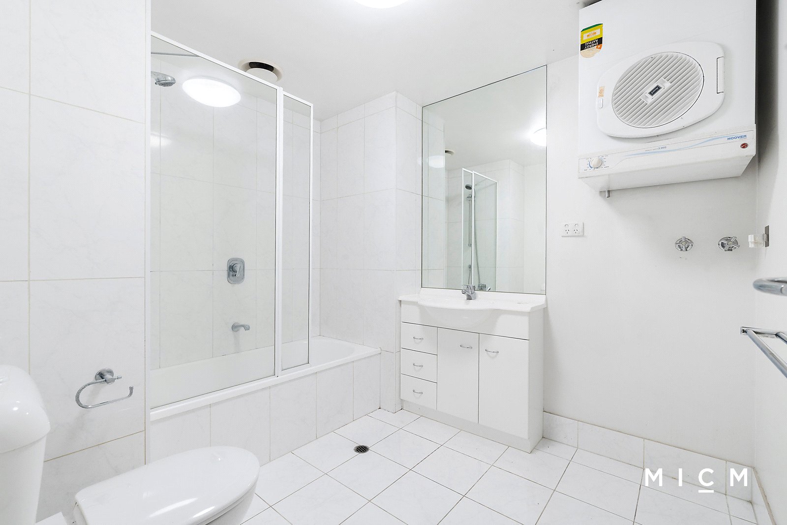 The large bedrooms are serenely separated by the living space, serviced by mirrored robes and a sparkling bathroom boasting a fully tiled shower area over a bathtub. A master suite is graced with roomy walk-robes and a private study, ideal for students or working from home.