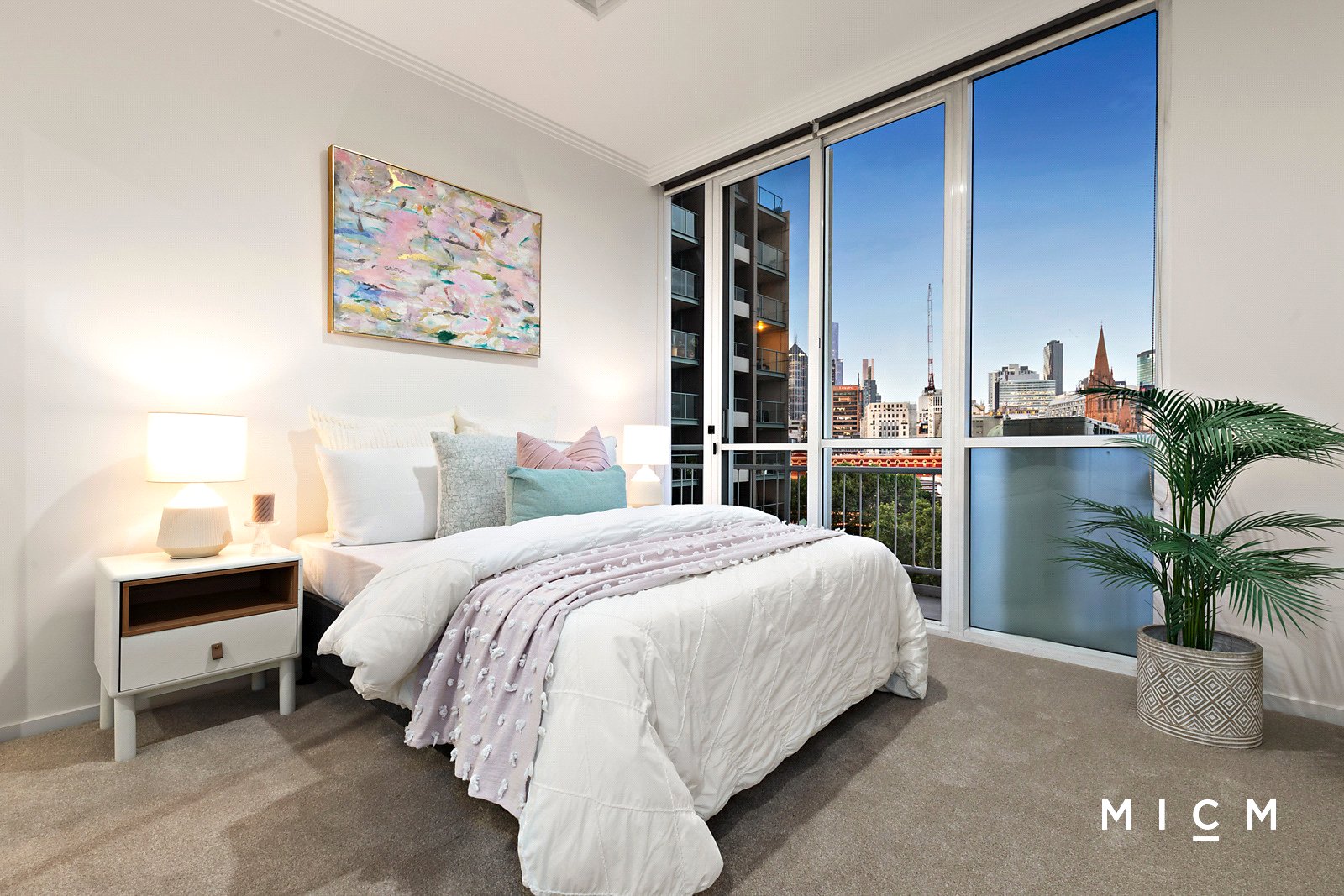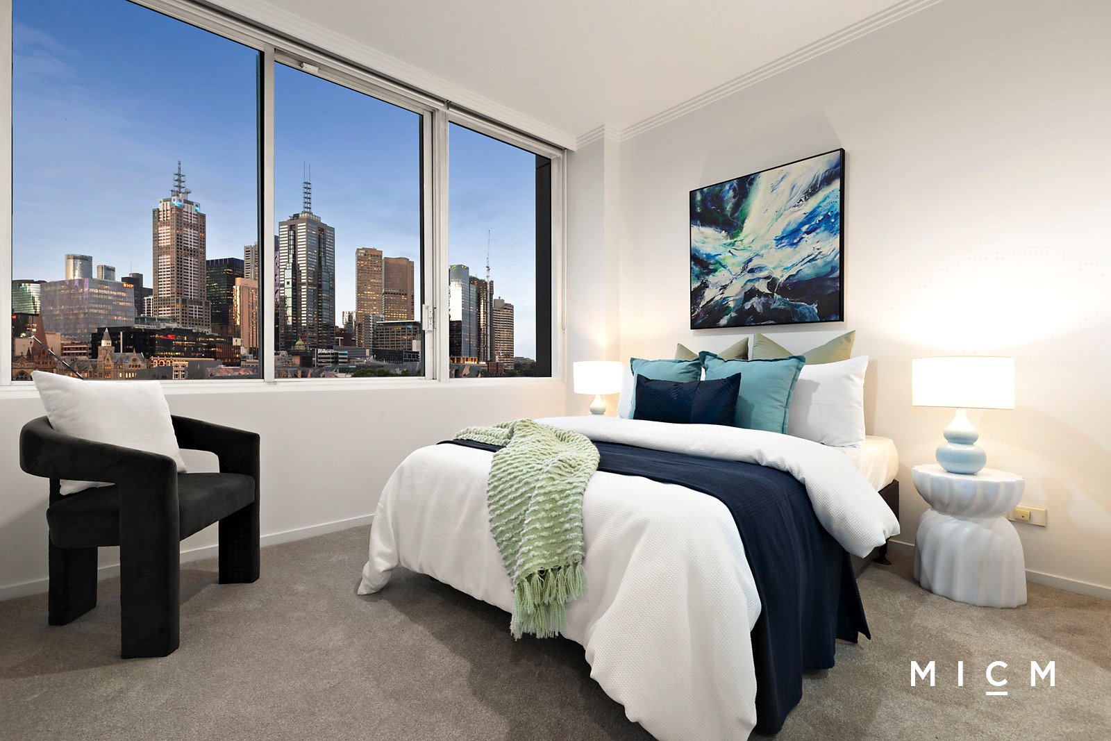 Discover a gleaming kitchen graced with a breakfast bar and stainless-steel appliances including a wall oven and a 4-burner gas cooktop. Far-reaching open-plan living and dining flows to a sheltered balcony basking in northern sun with stunning views sweeping over the MCG, Federation Square, Flinders Street dome, the Yarra River, and settling on the soaring city skyline. This private perch will energise you every day! Sharing the same spectacular outlook, the generously sized and robed pair of bedrooms are serviced by a central bathroom with a shower over a bathtub. Additionally, the master suite is graced with roomy walk-in robes and a private ensuite.