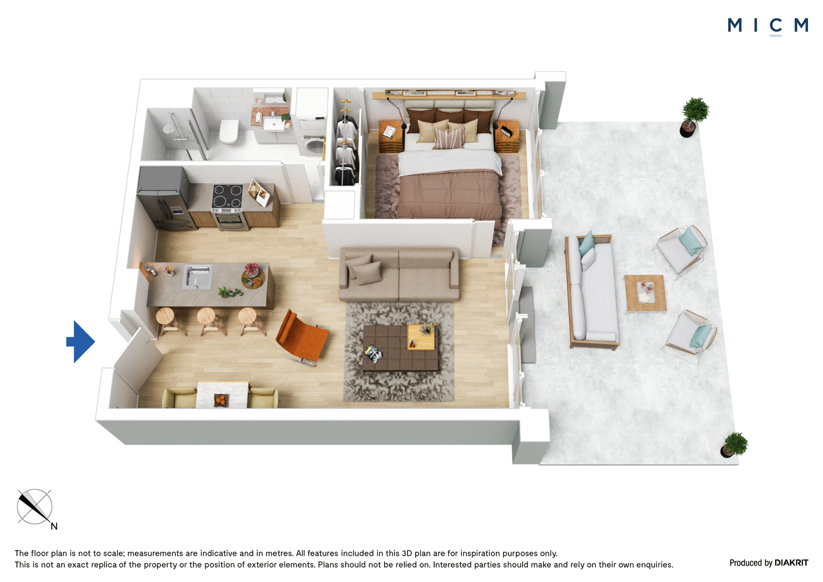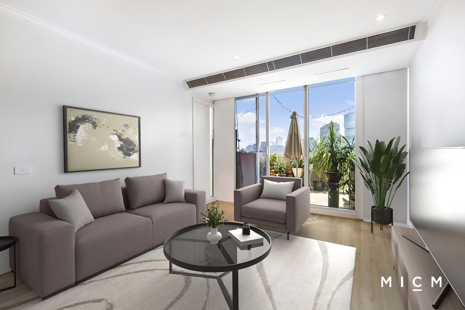 Spacious open-plan living and dining is underscored by a stone-topped kitchen showcasing a waterfall-edged breakfast bar and the full suite of high-quality Miele appliances including a dishwasher and a 4-burner gas cooktop. Step outside to the star attraction! A vast terrace (approx. 34sqm) is purpose-built for entertaining in northern light with a spectacular city panorama to enjoy day and night. The generously sized, mirror-robed and naturally lit bedroom shares the breathtaking aspect, serviced by a fully tiled bathroom.