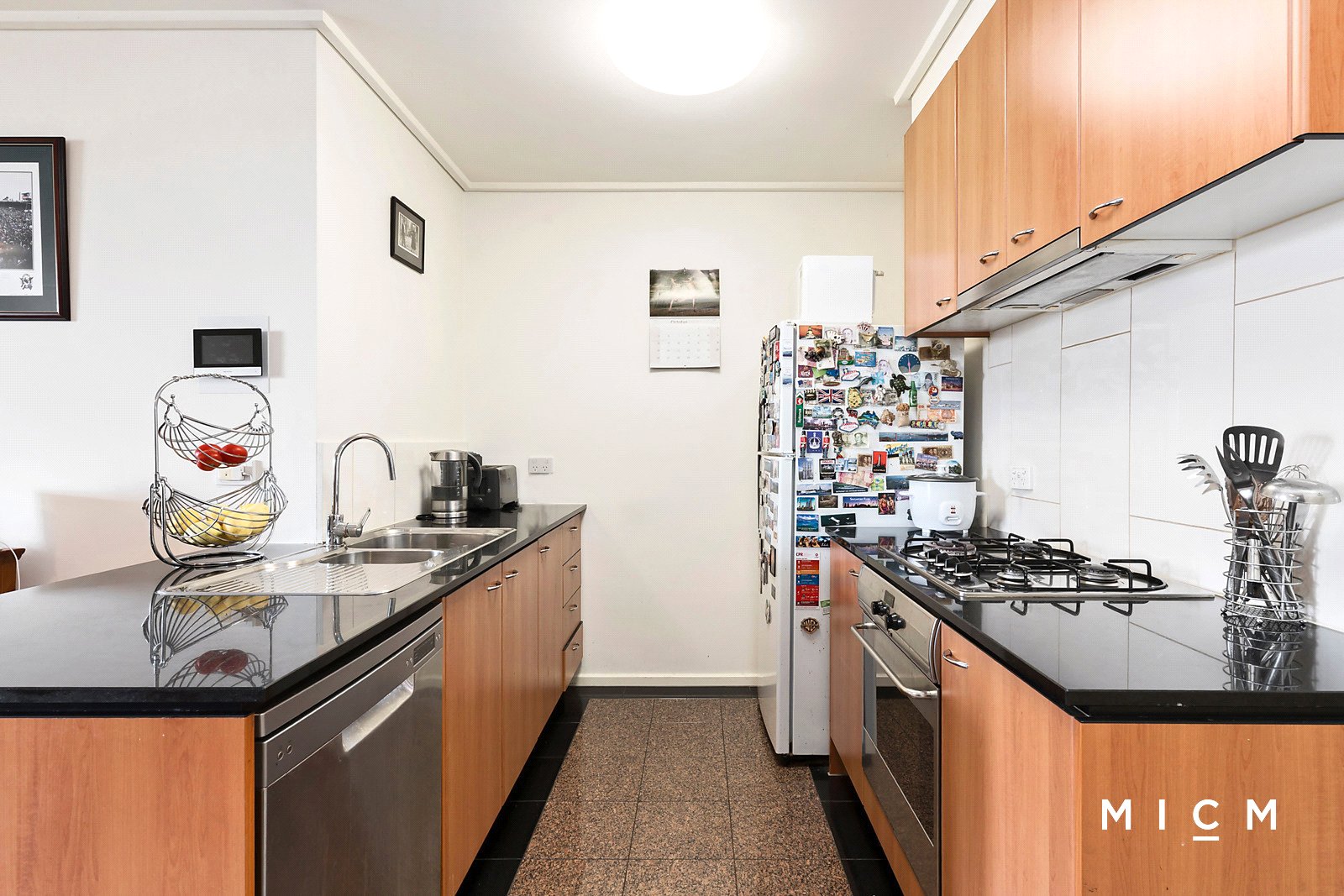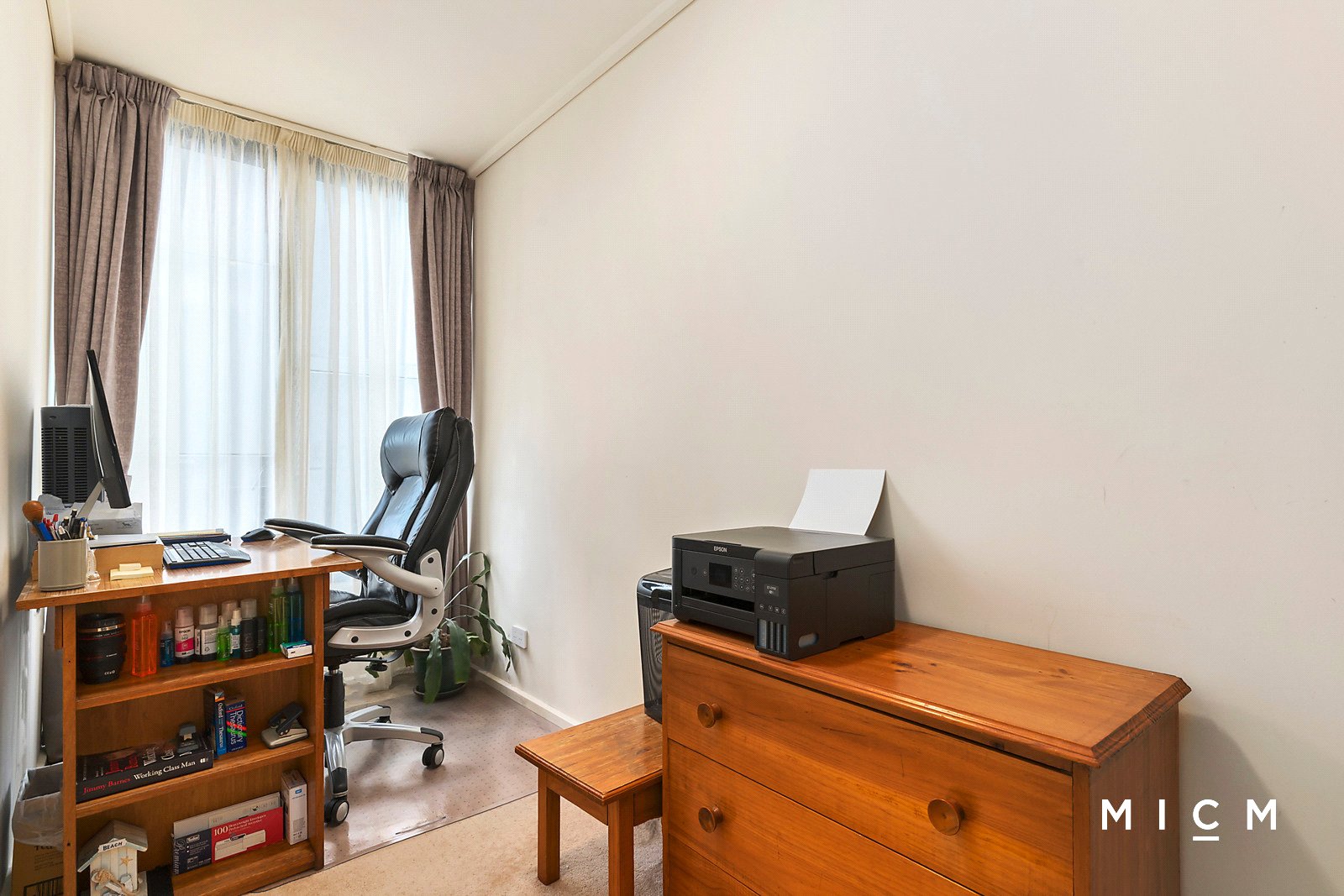 Wide-reaching open-plan living and dining is underpinned by a chef-ready kitchen graced with black granite surfaces, a breakfast bar, and stainless-steel appliances including a 4-burner gas cooktop and an updated Fisher and Paykel dishwasher. Elevated to impress 8 floors high in the sought-after Summit complex, make a seamless transition to a sheltered balcony capturing the warmth of morning light and neighbourhood skyline views. Naturally lit and generous in size, the mirror-robed bedrooms are serviced by a fully tiled bathroom with a walk-in shower. The master suite is enhanced by walk-in robes, the work-from-home addition of a study nook, and a cleverly concealed storeroom.