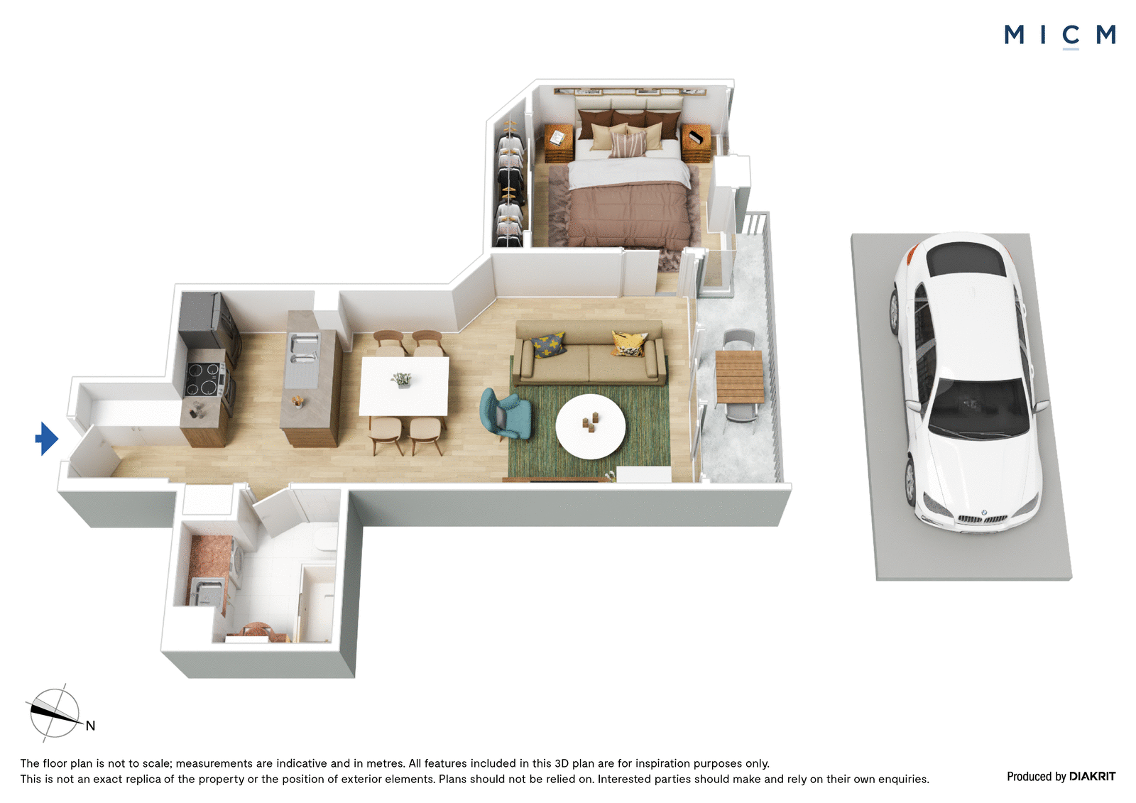 Floor-to-ceiling glass frames spacious open-plan living and dining, underpinned by a huge granite-topped kitchen with a breakfast bar and stainless-steel appliances including a dishwasher and a 4-burner gas cooktop. Set to impress in the luxury-led Victoria Tower complex, a sheltered balcony spreads out in the all-day warmth of northern light. Alfresco entertaining will become second nature on this perfectly private perch. The sizeable bedroom is graced with mirrored built-in robes, while a fully tiled bathroom boasts marble detailing and a shower area over a bathtub.
