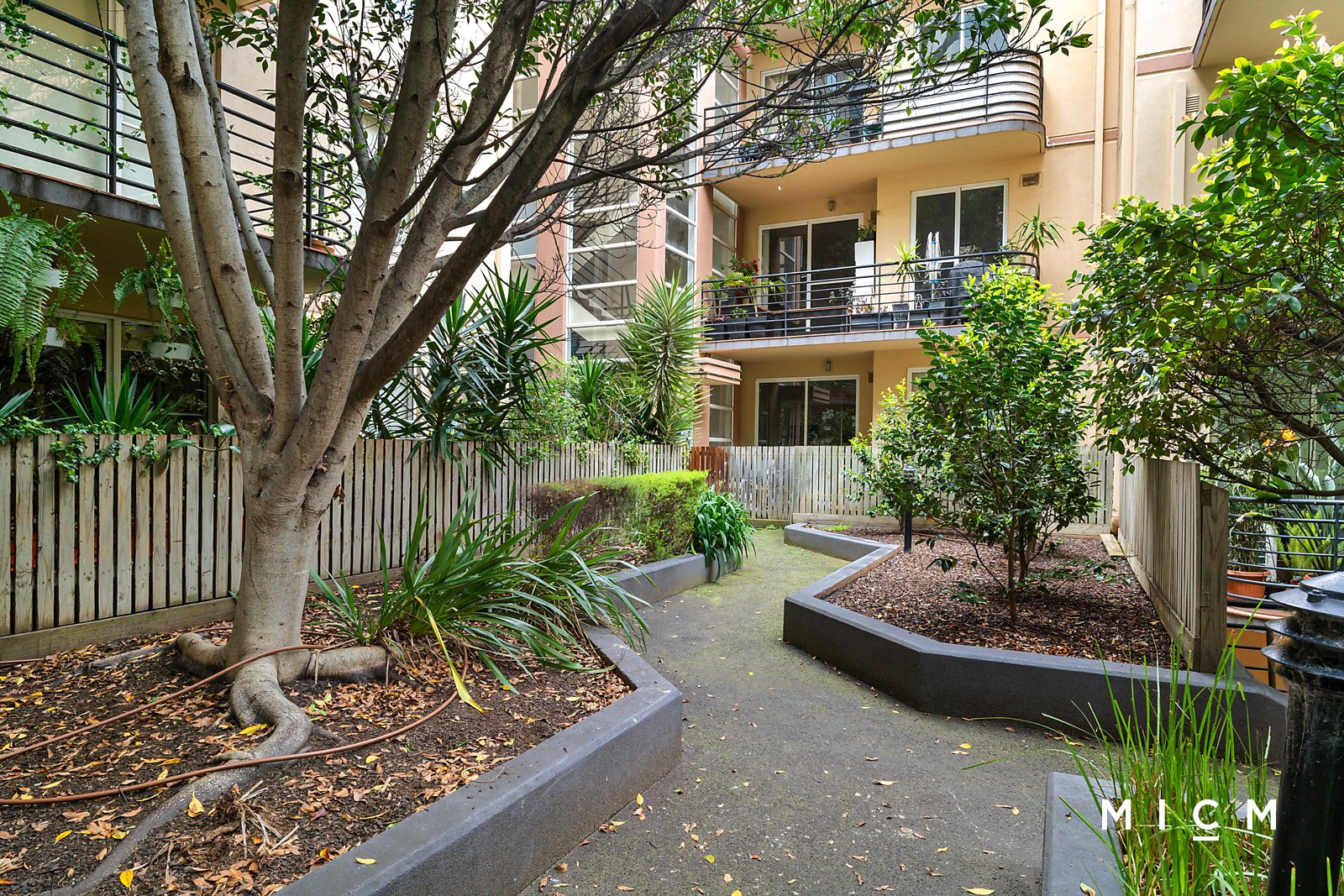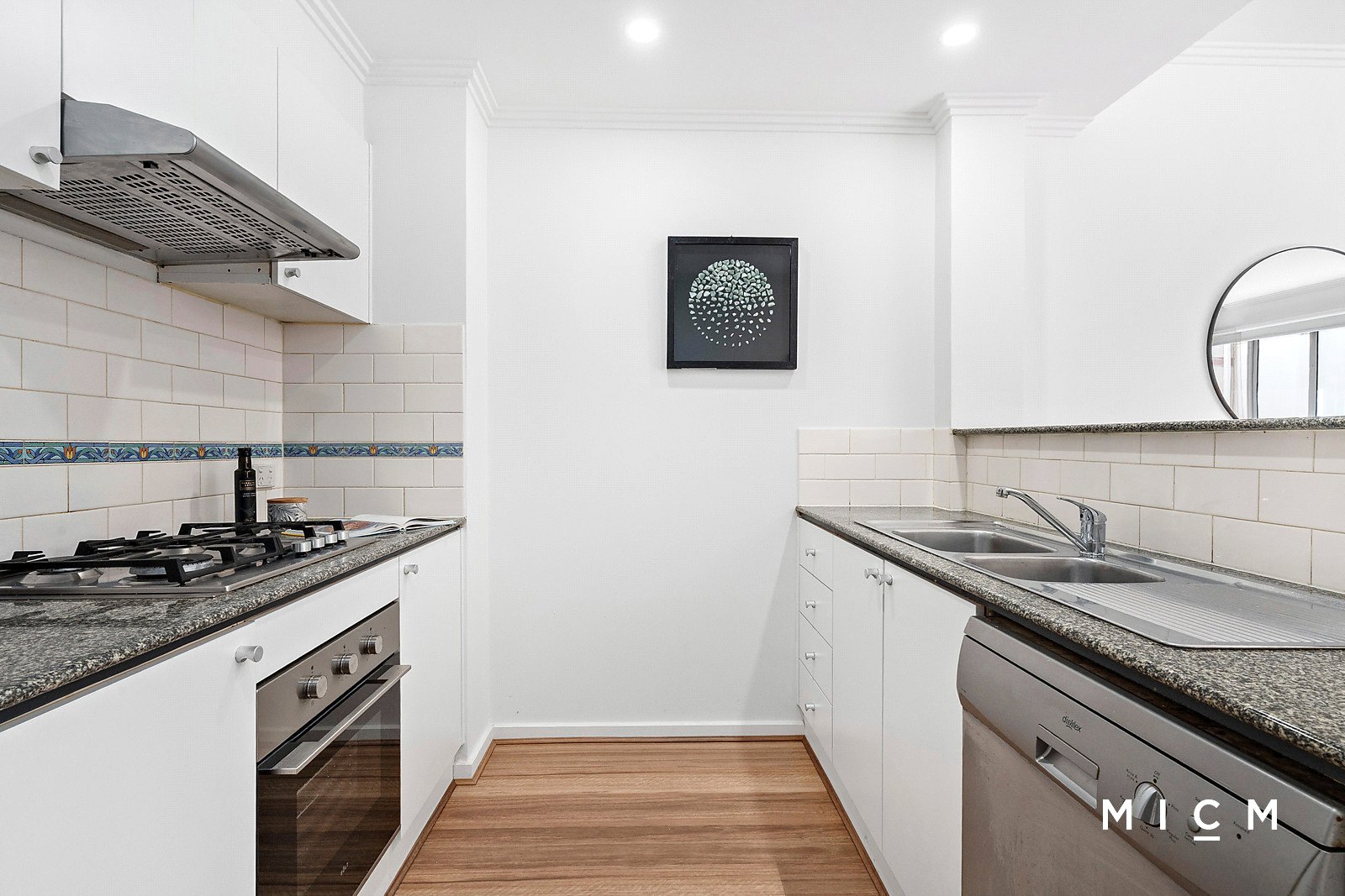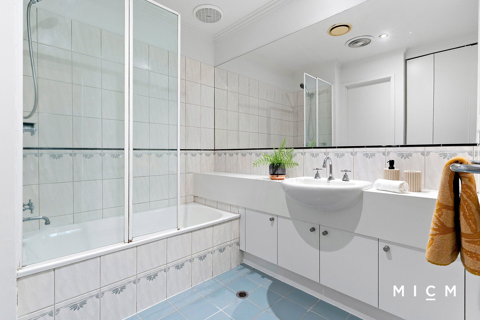 Drenched in natural light across a top-floor corner position inside prized Flagstaff Square, enjoy wide-reaching open-plan living and dining on sleek new floorboards, underpinned by a granite-finished kitchen graced with a breakfast bar and stainless-steel appliances including a dishwasher and a 4-burner gas cooktop. Spill outside to a sheltered northeast-facing balcony overlooking a leafy internal garden, a tranquil world away from the hustle and bustle of city living.