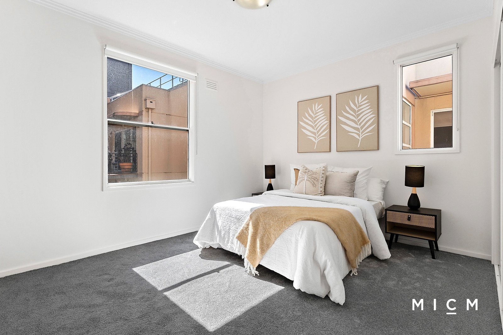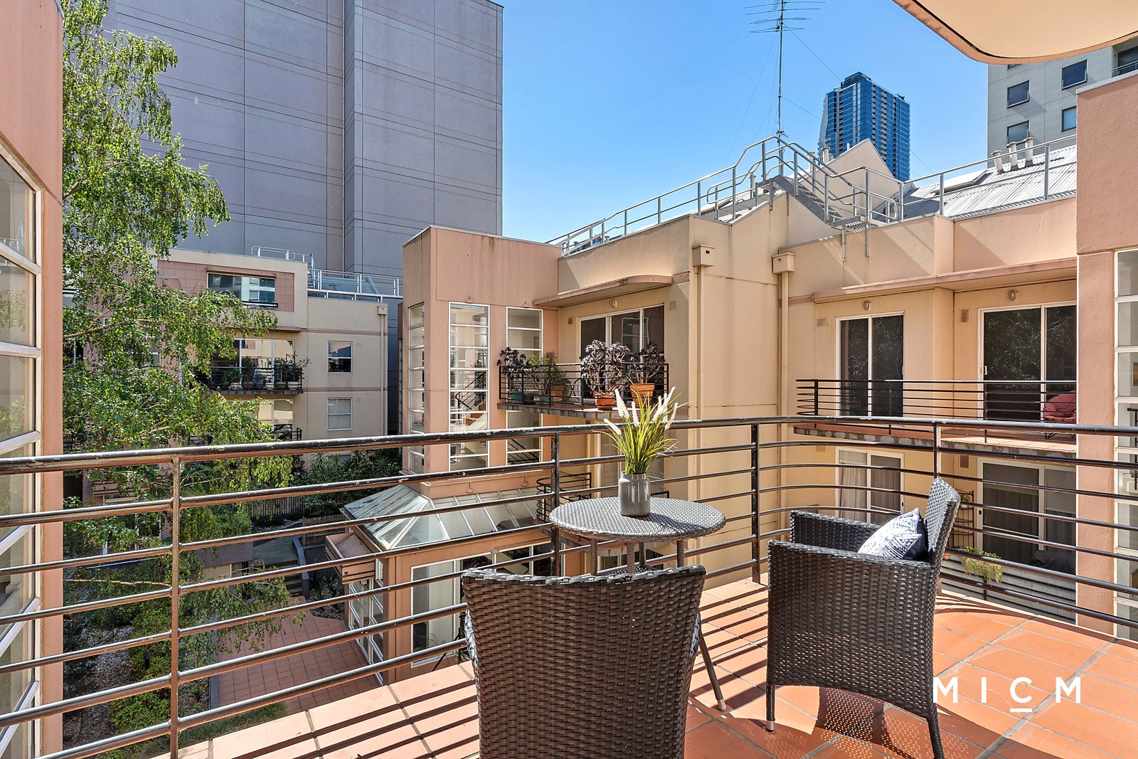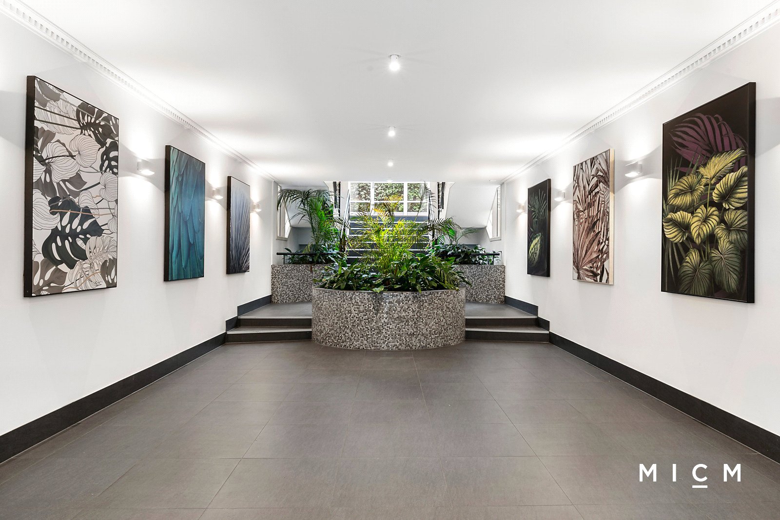 Drenched in natural light across a top-floor corner position inside prized Flagstaff Square, enjoy wide-reaching open-plan living and dining on sleek new floorboards, underpinned by a granite-finished kitchen graced with a breakfast bar and stainless-steel appliances including a dishwasher and a 4-burner gas cooktop. Spill outside to a sheltered northeast-facing balcony overlooking a leafy internal garden, a tranquil world away from the hustle and bustle of city living.