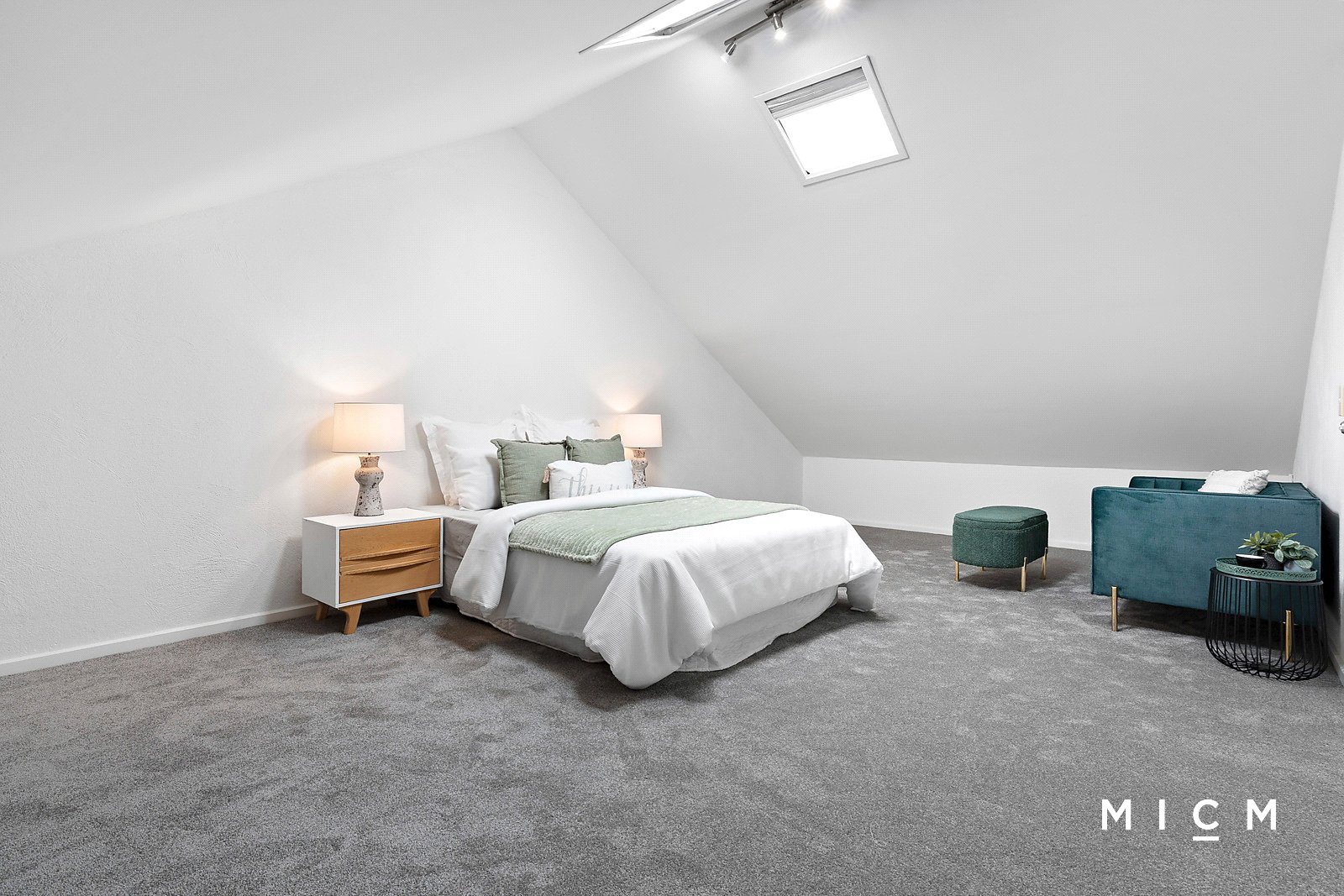 Freshly painted from top to bottom, the light-filled and newly carpeted bedrooms are staged upstairs and down. Both mirror-robed bedrooms on the ground floor are sizeable, while a principal bathroom showcases a separate WC and a shower over a bathtub. The air-conditioned master suite is housed on the first floor, standing out with walk-in robes and a skylit ensuite. Under towering vaulted ceilings and two skylights, a versatile fourth bedroom is serviced by nearby mirrored built-in robes.