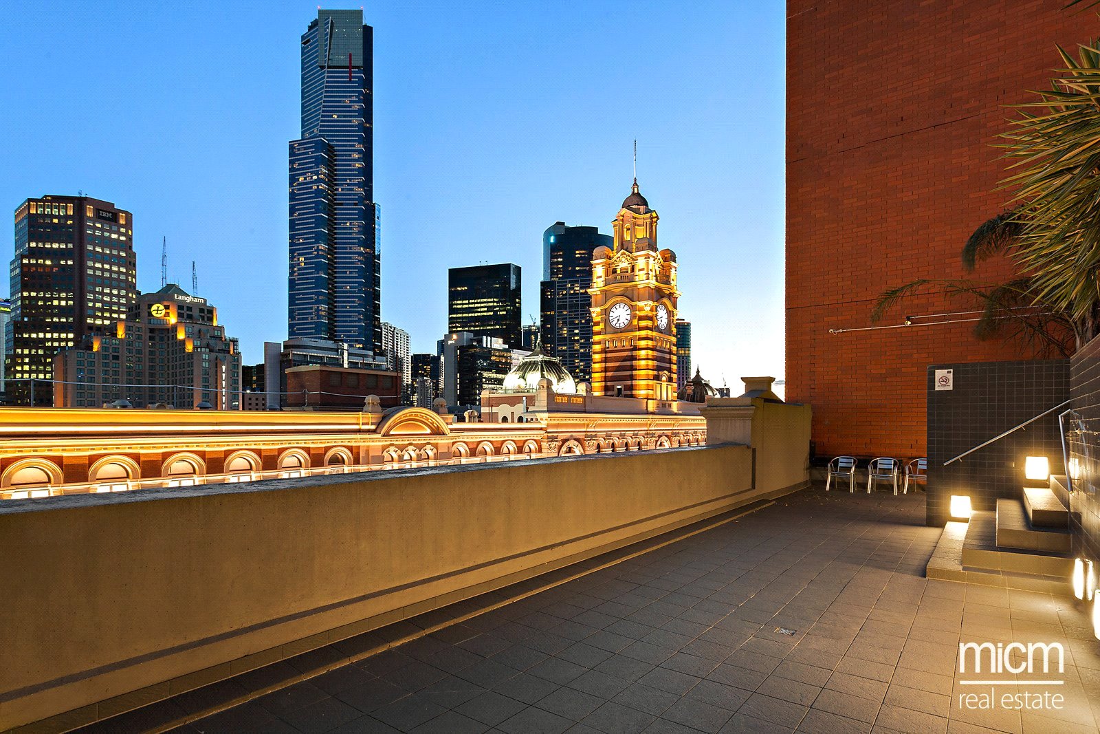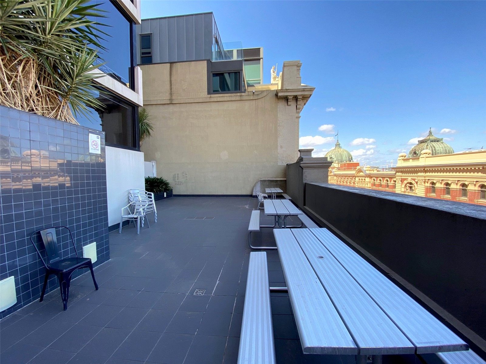 Facing east, enjoy the warmth of the morning sun and panoramic views of St Pauls Cathedral spire, the Flinders Street Station dome and the stadiums of the sporting precinct.