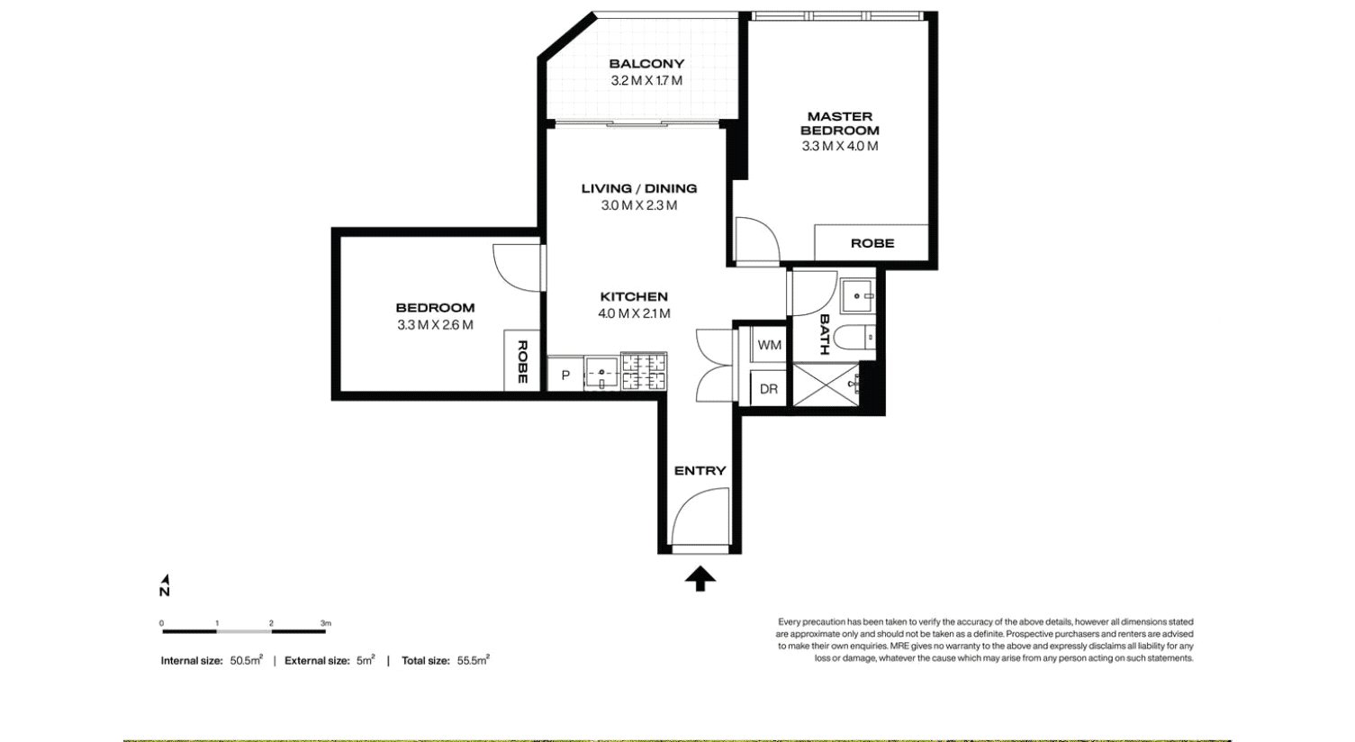 Approx. 55sqm total area including private balcony Light-filled open-plan living and dining Modern kitchen with quality appliances Two bedrooms with built-in robes Contemporary bathroom with premium fittings