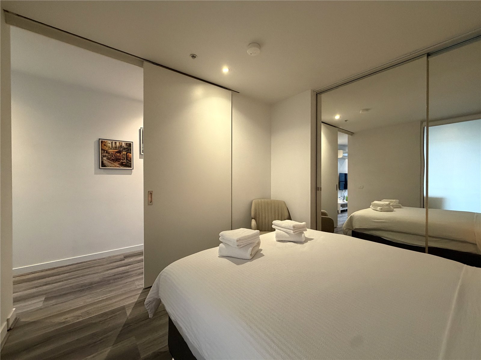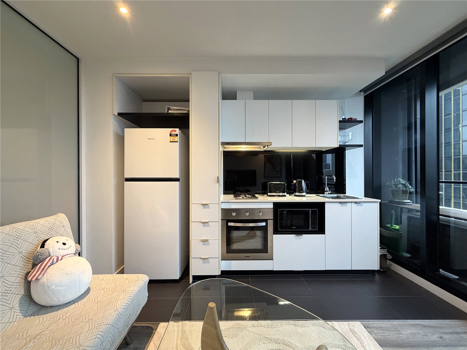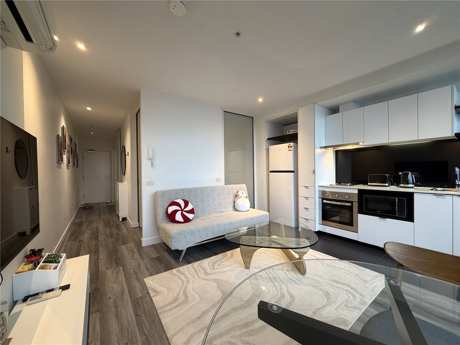 Accommodation includes: Spacious bedroom with mirror built in robes and a sparkling modern bathroom. Open plan living / meals area with split system heating / cooling and balcony access. The galley kitchen includes gas cooktop, oven and dishwasher.