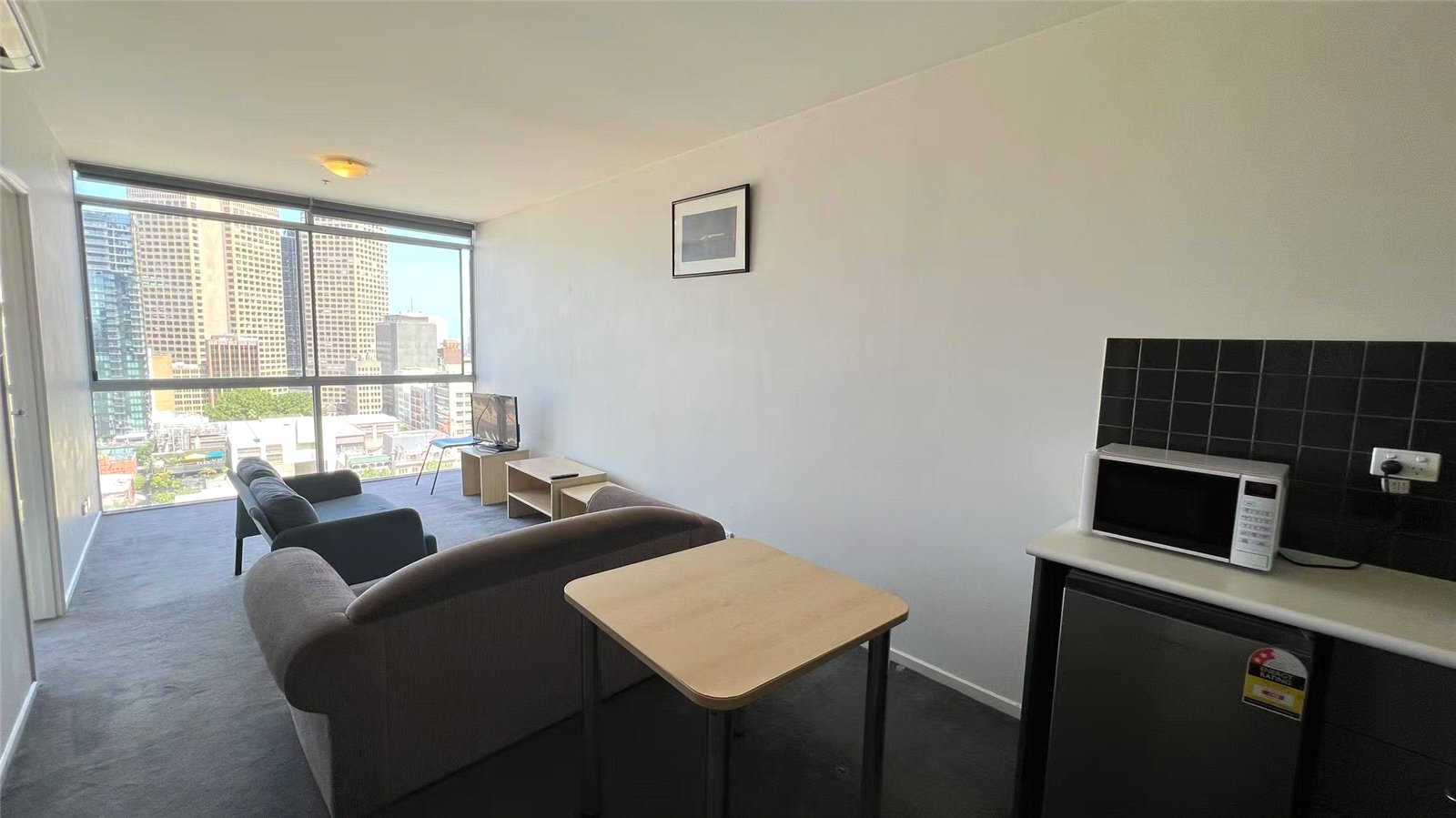 This unique and spacious apartment features 2 large bedrooms, built-in wardrobes, mattress and base ensemble in each room and a private bathroom. The kitchen is equipped with a microwave, bar fridge and an electric cooktop. The apartment also features sofa with spectacular views, dining area and a good view of the CBD. Ideally located, this modern apartment is situated close to public transport (trams, trains and buses), Chinatown, shopping precincts and various universities and institutions located in the heart of Melbourne!