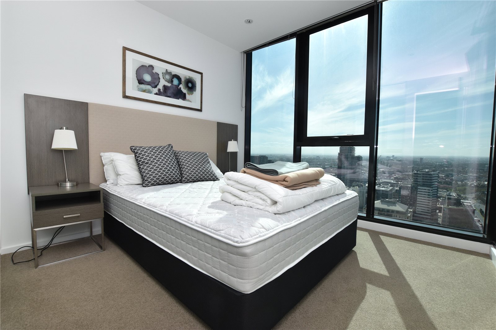 This apartment offers of a vast and spacious light filled living area on entry flowing onto a north facing balcony with views north of Melbourne, good size bedroom complete with built in robes and floor to ceiling windows providing light and space. Fully appointed kitchen complete with stainless steel appliances and dishwasher. In trend bathroom complete with shower and European laundry provision