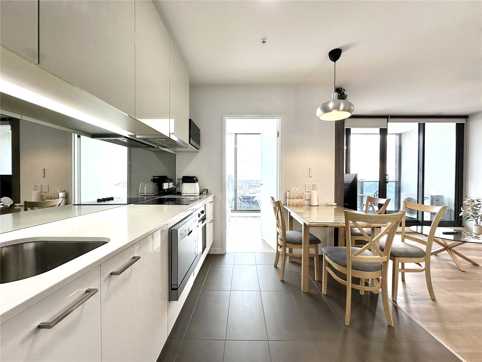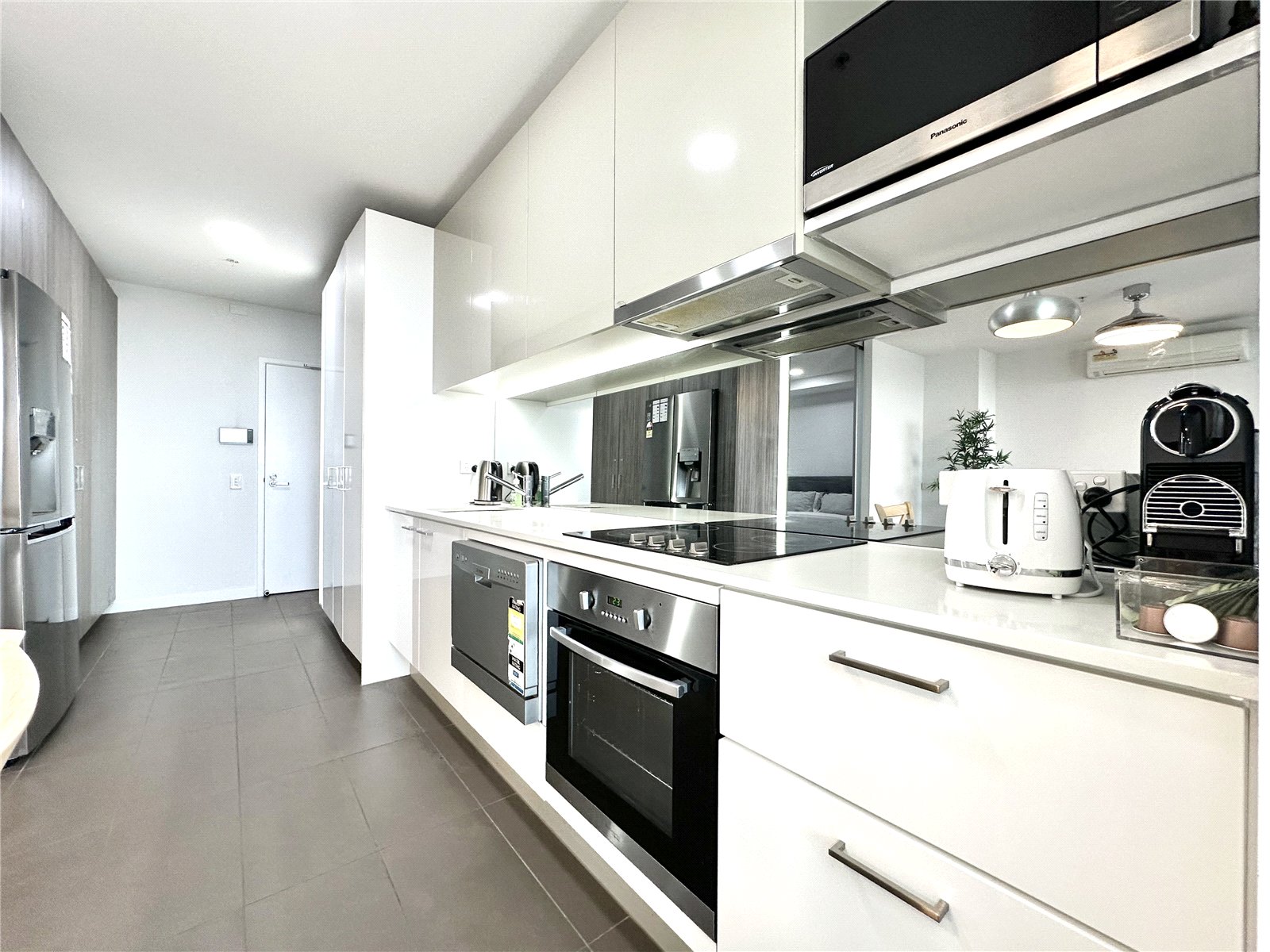 The spacious and air-conditioned comfort of open-plan living and dining is enhanced by a stone-topped kitchen graced with ample pantry space, a mirrored splashback and stainless-steel appliances including a dishwasher. Attracting natural light, make a seamless transition to a vast principal balcony boasting sublime views of the city skyline and a tantalising glimpse of the mountainous horizon. Melbourne never looked so good! The robed bedrooms are generous in size and serenely separated by the living space, superbly serviced by a perfect pair of deluxe bathrooms featuring mirrored cabinetry. Sharing the same spectacular aspect as the primary balcony, the main bedroom comes complete with a study nook, while the second bedroom enjoys a private balcony, also with sensational city views.