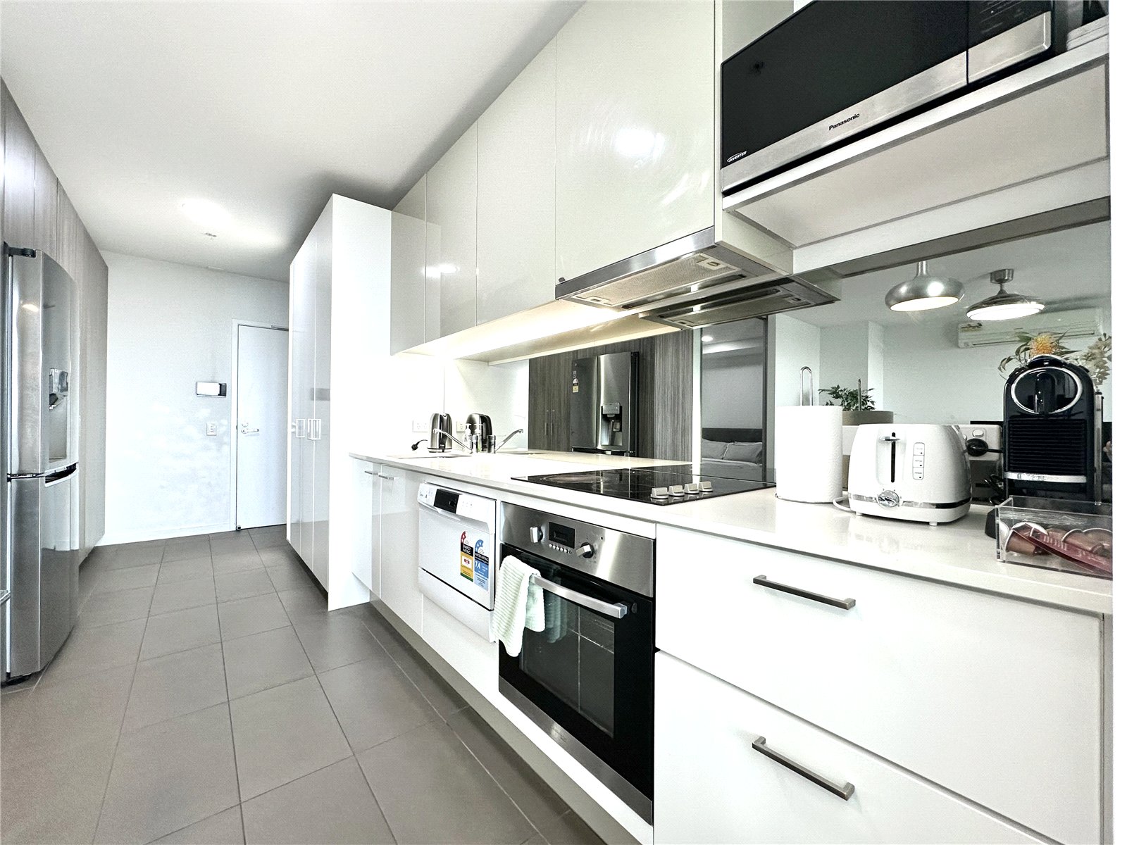 The spacious and air-conditioned comfort of open-plan living and dining is enhanced by a stone-topped kitchen graced with ample pantry space, a mirrored splashback and stainless-steel appliances including a dishwasher. Attracting natural light, make a seamless transition to a vast principal balcony boasting sublime views of the city skyline and a tantalising glimpse of the mountainous horizon. Melbourne never looked so good! The robed bedrooms are generous in size and serenely separated by the living space, superbly serviced by a perfect pair of deluxe bathrooms featuring mirrored cabinetry. Sharing the same spectacular aspect as the primary balcony, the main bedroom comes complete with a study nook, while the second bedroom enjoys a private balcony, also with sensational city views.