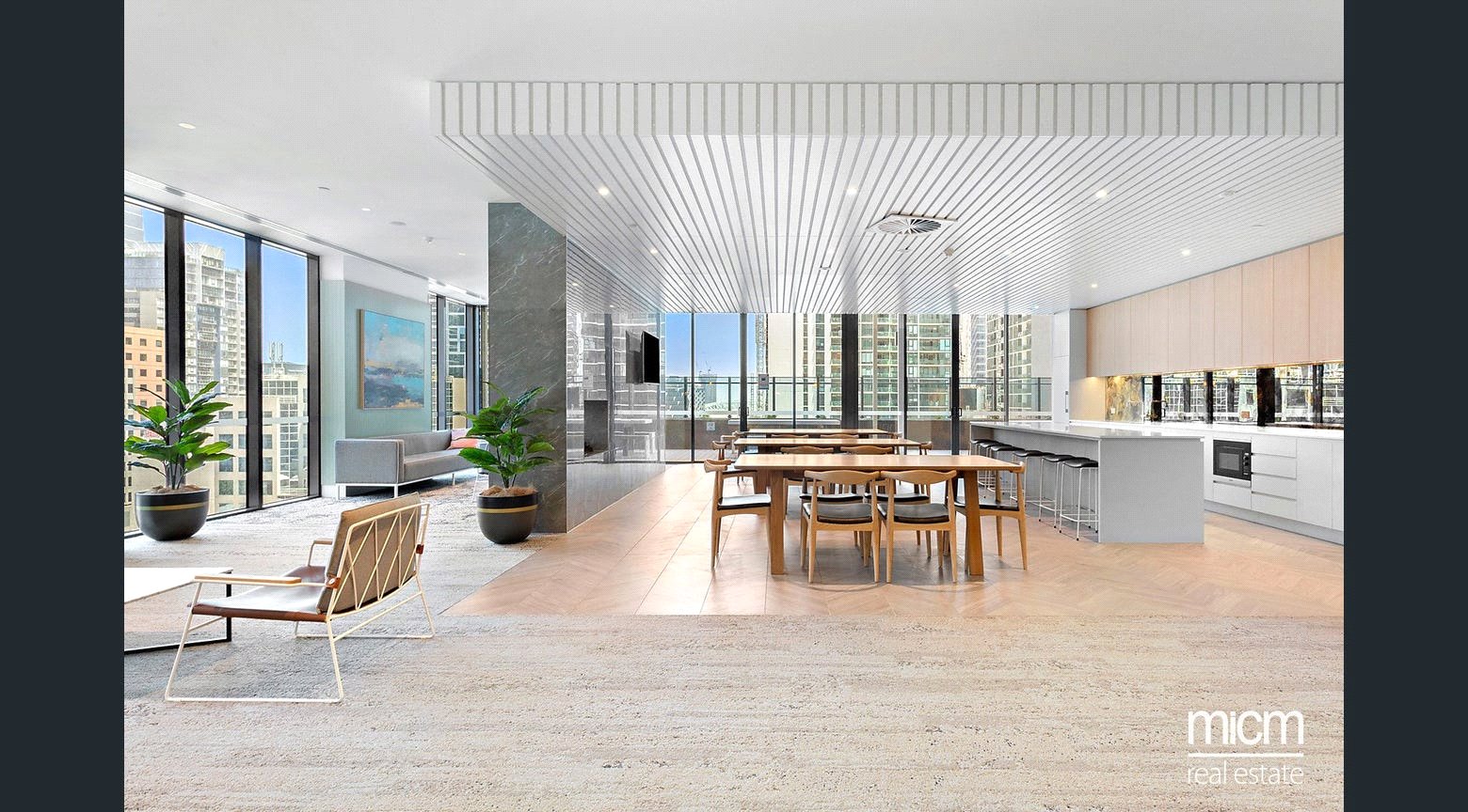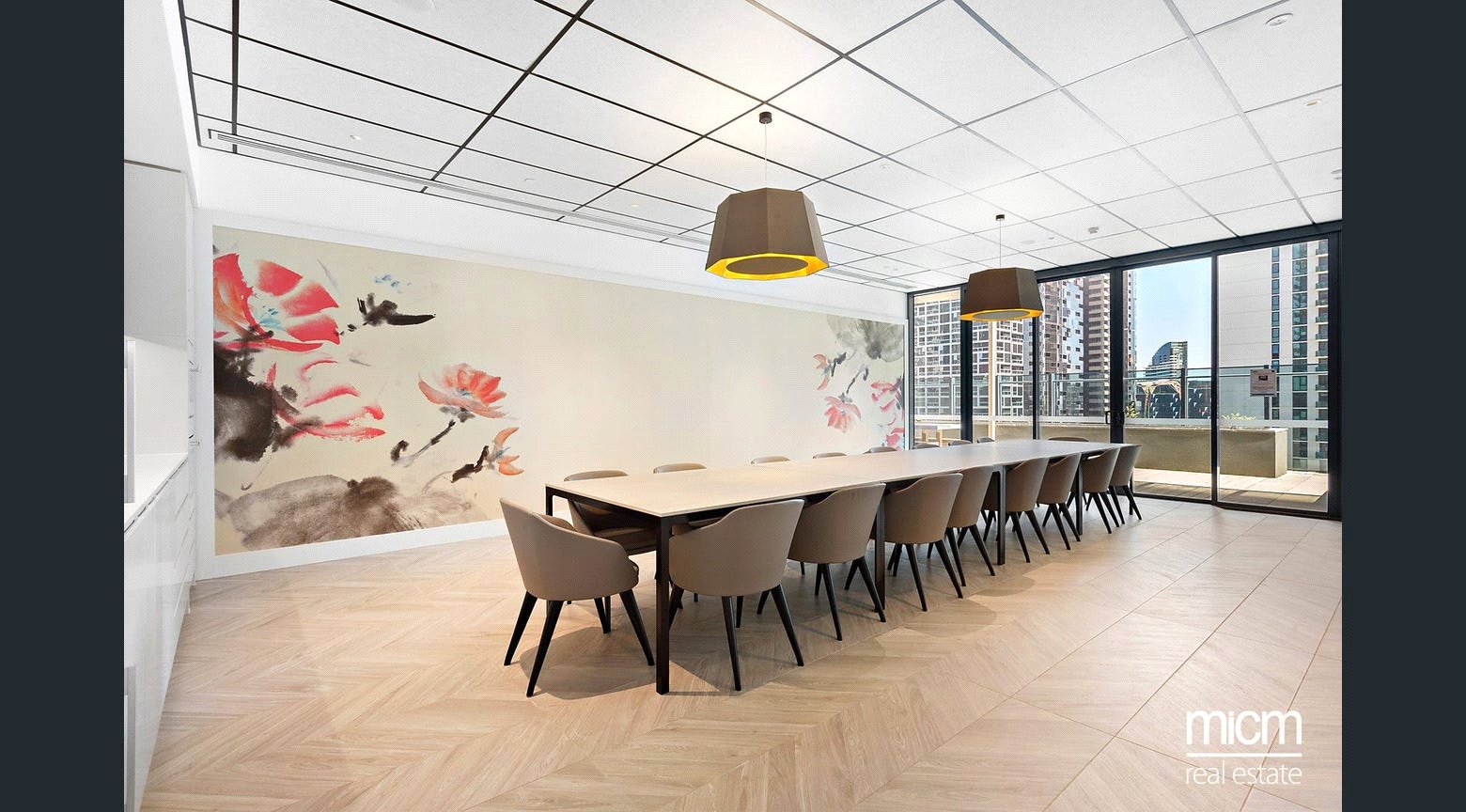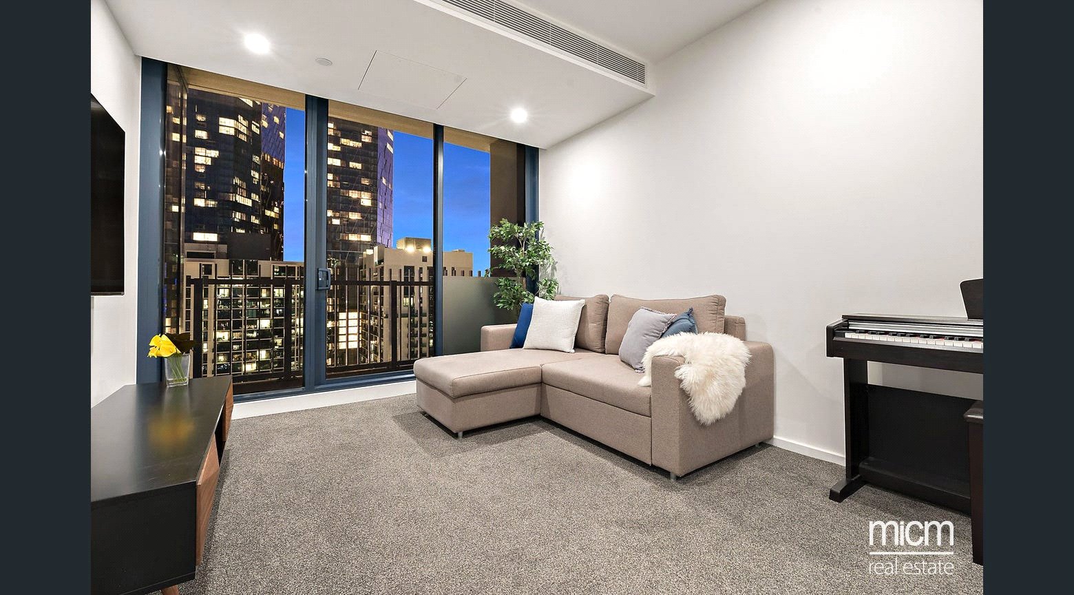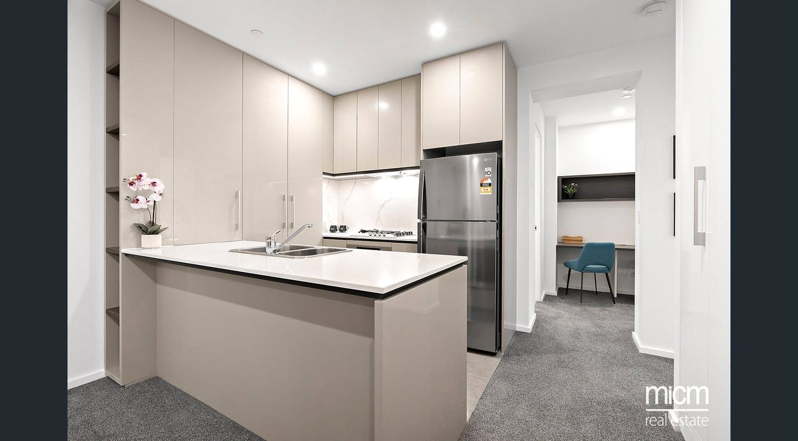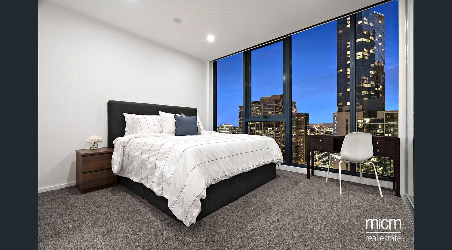 Privately set 38 floors high in the luxury-led Melbourne Grand complex, discover spacious open-plan living and dining, underpinned by a stone-topped kitchen showcasing a breakfast bar, plenty of pantry space, a Fisher and Paykel dish-drawer and high-end Miele appliances including an integrated microwave. Seamless flow is enriched by floor-to-ceiling glass with the internal and external combining to create a real sense of occasion on a sheltered balcony, perfectly placed to immerse yourself in memorable sunsets while entertaining. This prestigious position is graced with sweeping neighbourhood views touching on the blue waters of Port Phillip Bay and the dramatic majesty of the Macedon Ranges. The apartment is further enhanced by a work-ready study zone graced with a built-in desk and storage capability. Also enjoying picturesque views, the light-filled and generously sized bedrooms are serviced by mirrored built-in robes and a pristine pair of fully tiled bathrooms.