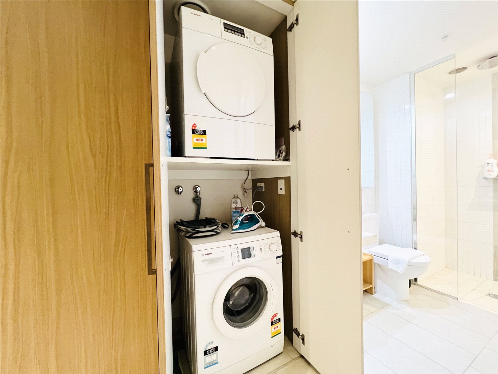 Apartment Includes: - Roller blinds throughout - Spacious entry corridor into living and dining area - Concealed storage cupboard at entry - Modern kitchen with plenty of storage space, stainless steel appliances, dishwasher drawer and integrated fridge and freezer - Lounge area comes with a comfortable sofa and a TV-set - Dining area is equipped with a two seater dining table and chairs - Very spacious bedroom with mirrored built-in robes, bed & mattress - Modern bathroom with shower - Separate euro laundry with washing machine and dryer