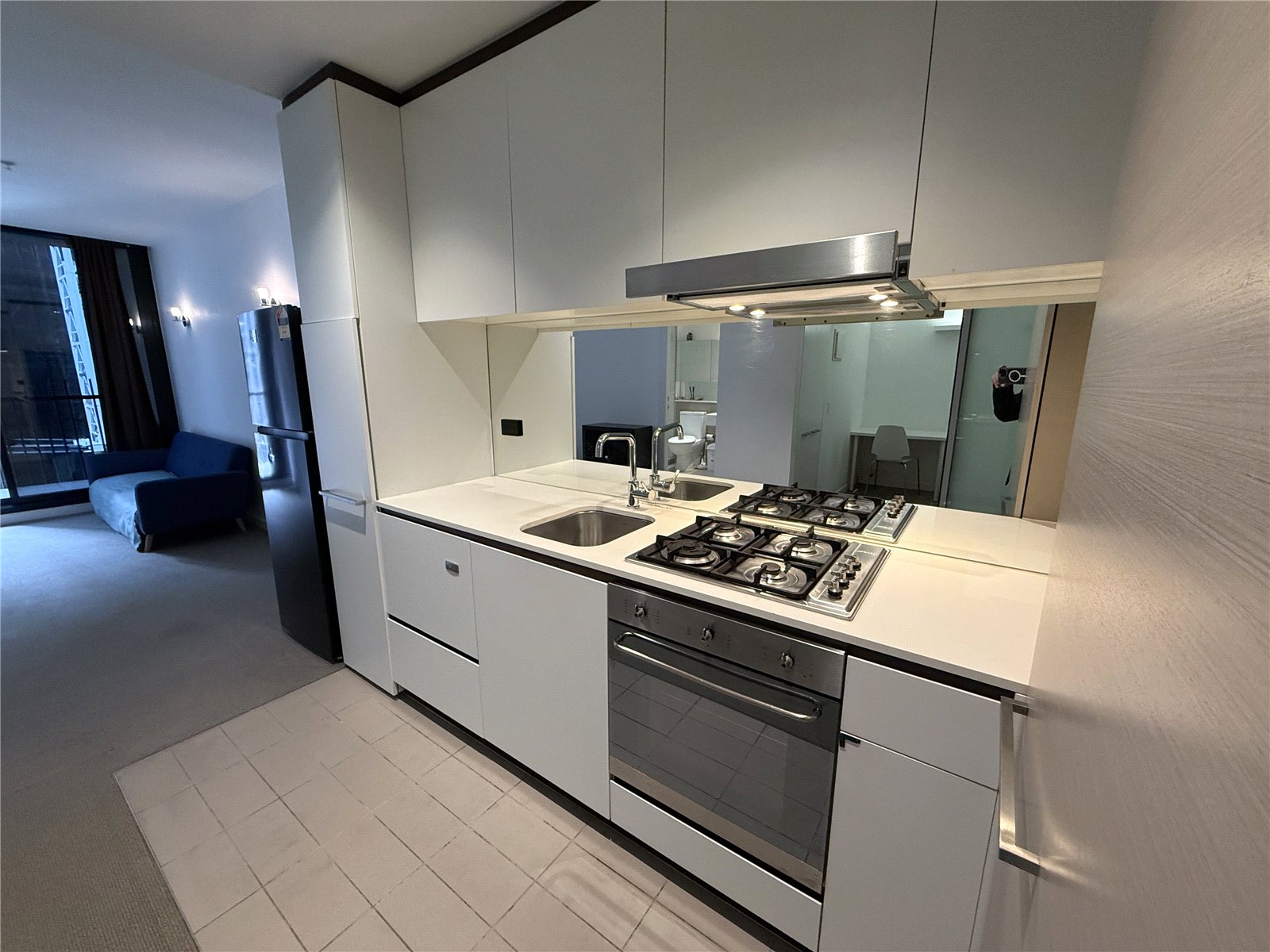 Featuring a chic, open-plan kitchen with mirrored splash back, top-class SMEG' stainless steel European appliances including dishwasher, gas cooking, under-bench electric oven, fridge, stone bench tops with ample cupboard space and tonnes of storage options.
